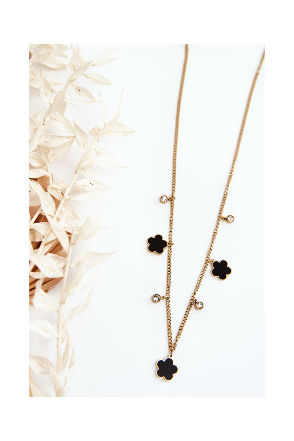 Moteriška grandinėlė šarvuotis su juodomis gėlėmis aukso spalvos
