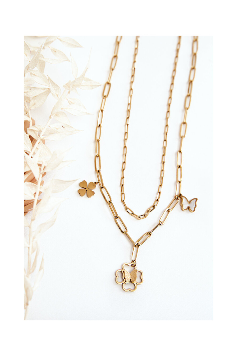 Dviguba grandinė Su Dobilais Ir Drugeliai aukso spalvos