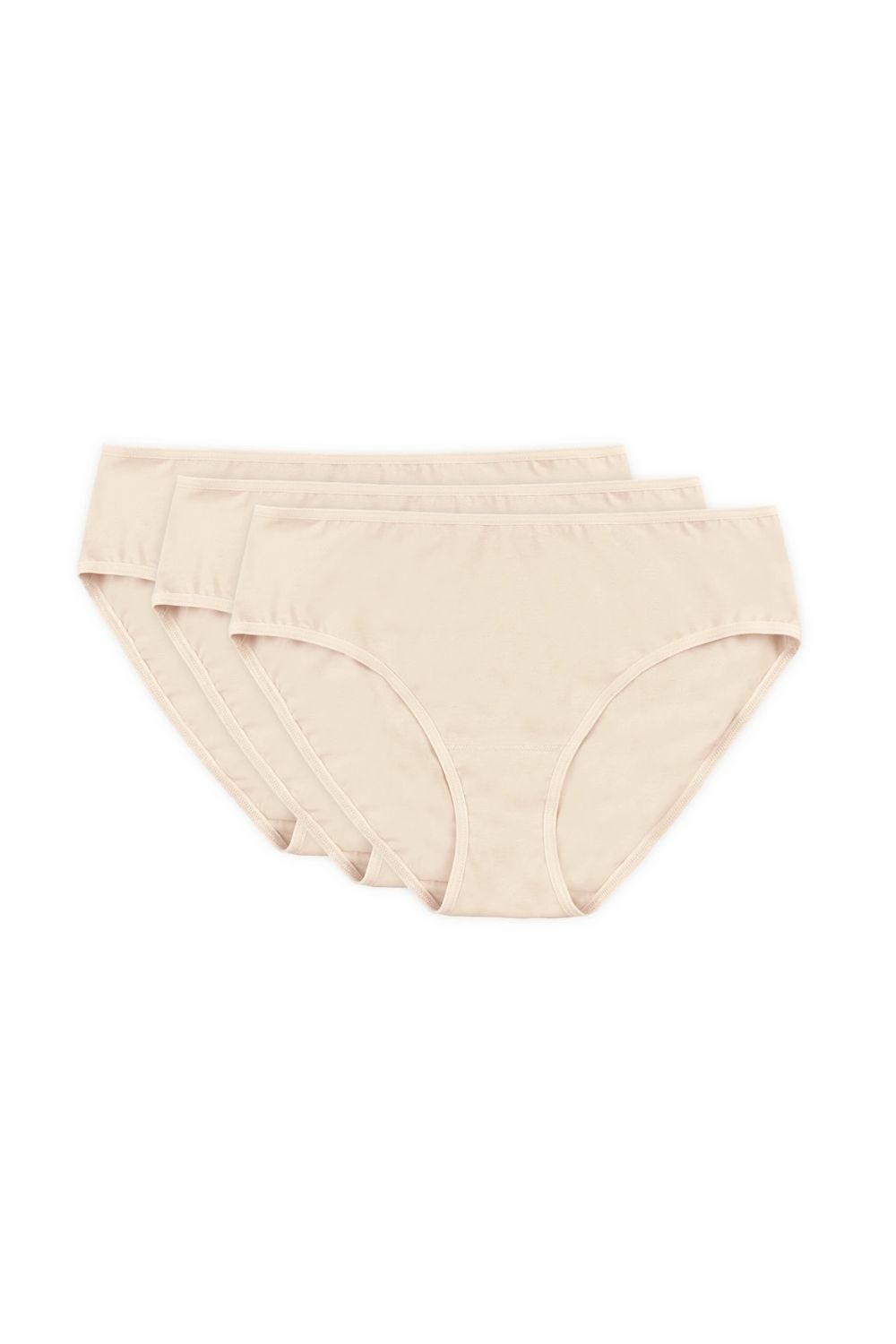 Three-pack of cotton panties in a comfortable, non-restrictive cut, perfect for everyday wear, including during menstruation. The waistband effectively holds the underwear in place. The gusset of the thongs is made of cotton with the OEKO-TEX standard, making them pleasant and safe for intimate areas. Made from 100% cotton from a Polish spinning mill. Kelnaitės designed and sewn in Poland.