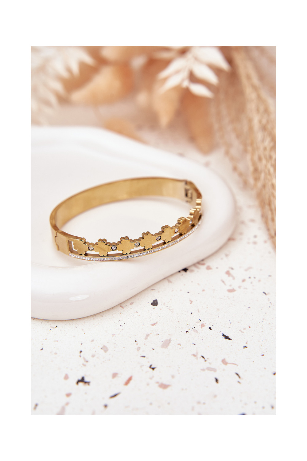 Nerūdijančio plieno auksinės spalvos apyrankė puošta cirkoniais