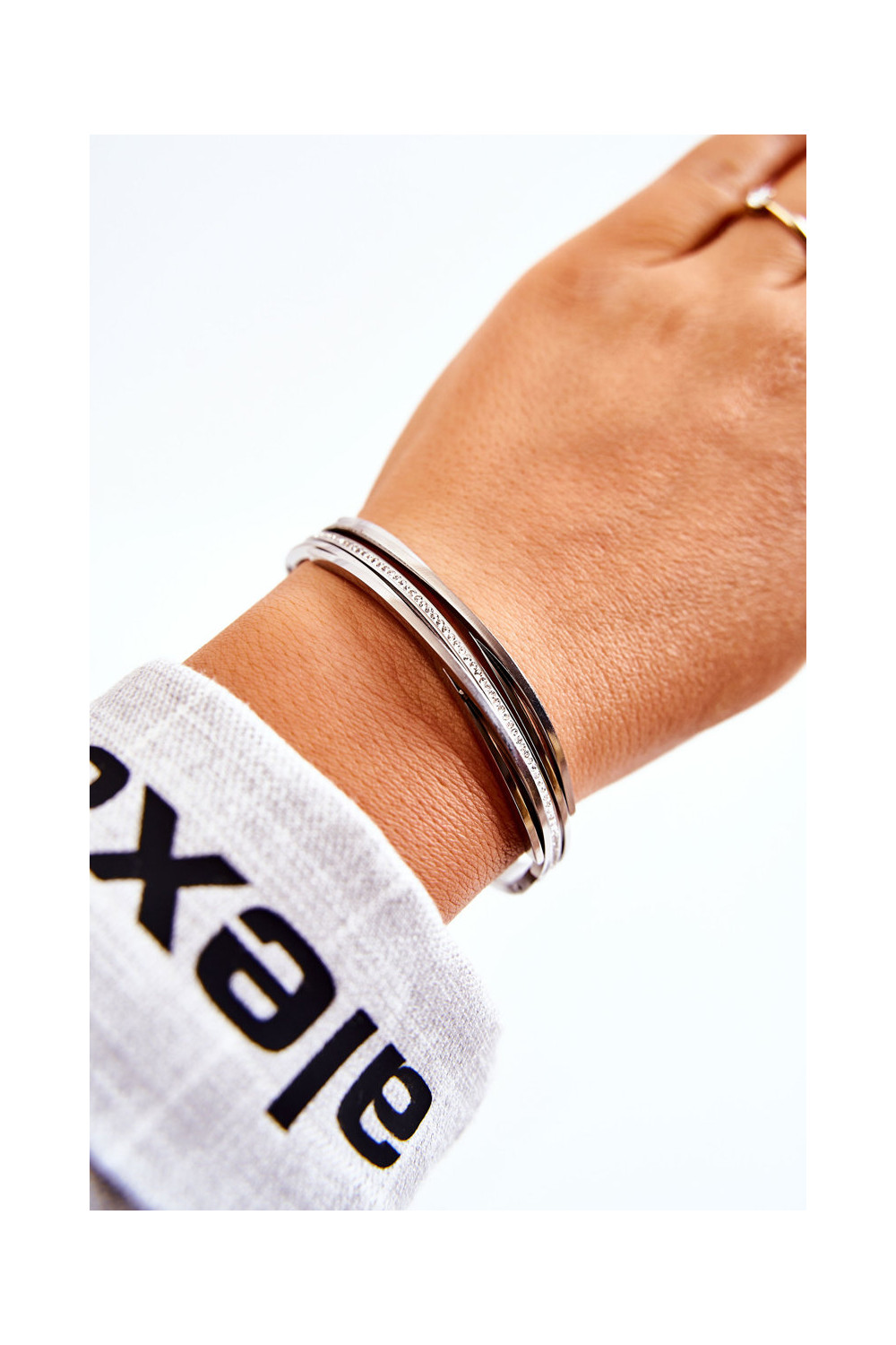Sidabro spalvos plieninė apyrankė su tviskančiomis akutėmis Myrens