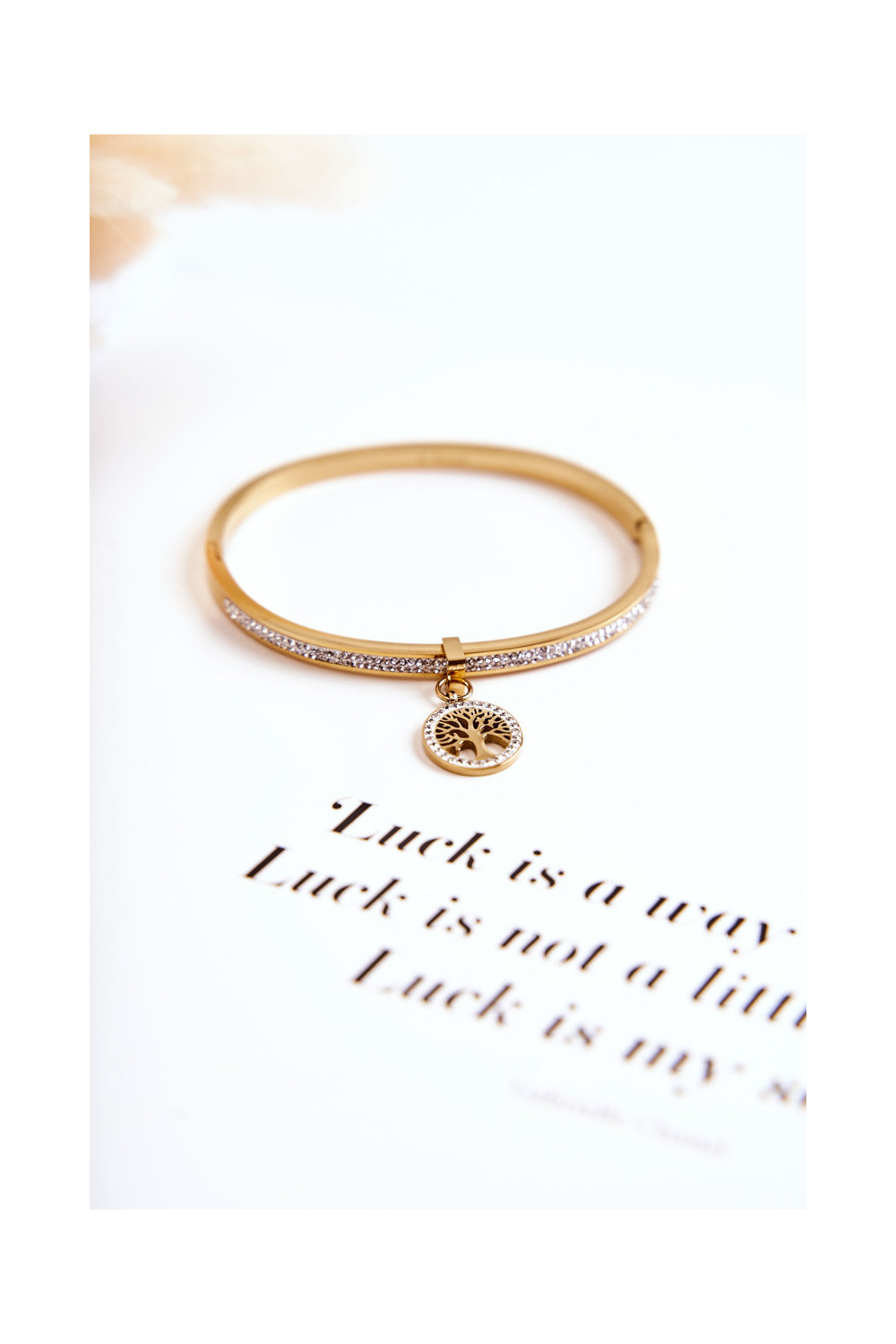 Aukso spalvos plieninė apyrankė su cirkonio akutėmis „Gyvybės medis" Alive