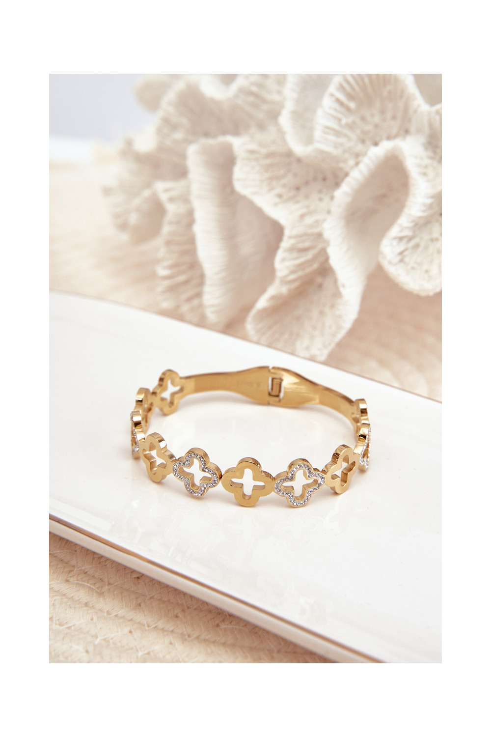 Moteriška apyrankė dekoruota kubiniu cirkoniu iš nerūdijančio plieno aukso spalvos