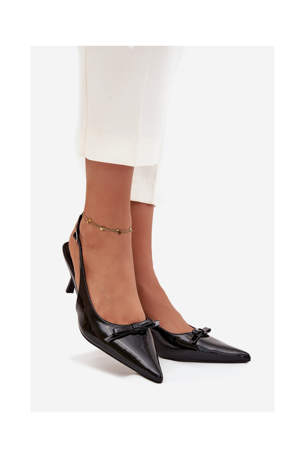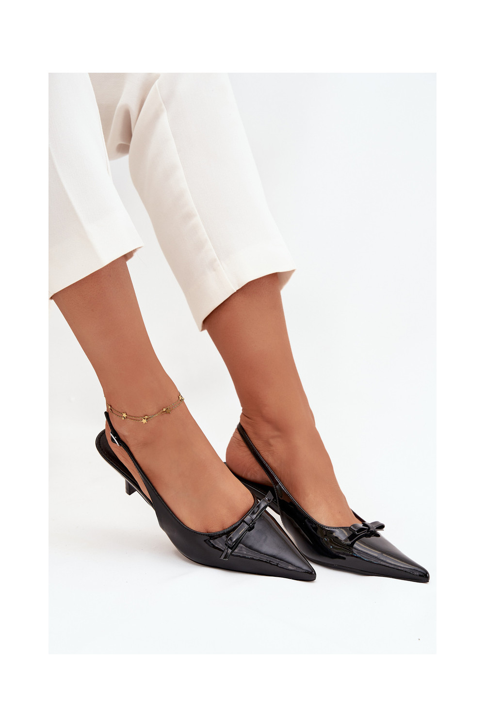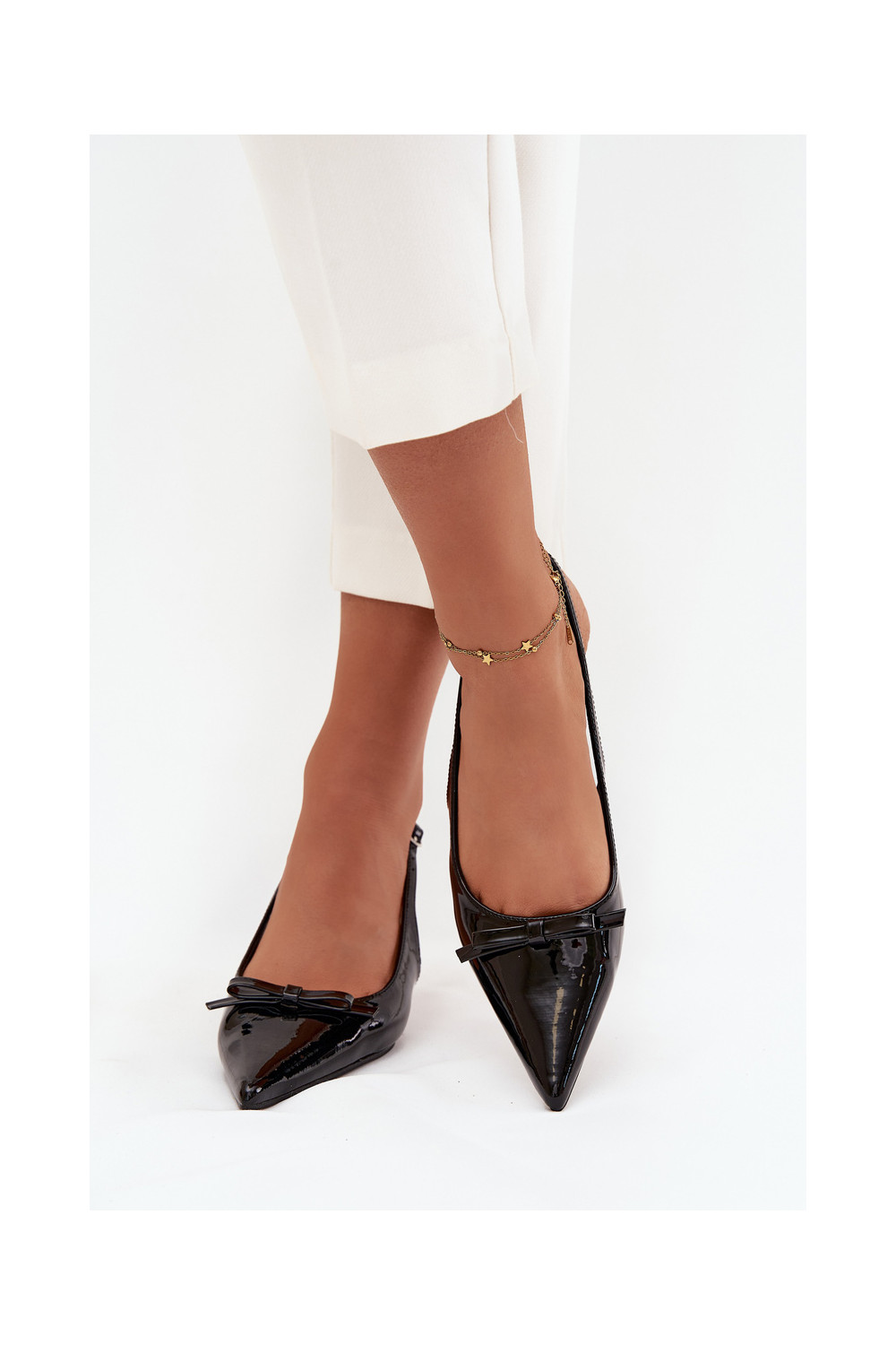 Lakiniai bateliai su plonais kulniukais ir kaspinais juodos spalvos Olvena