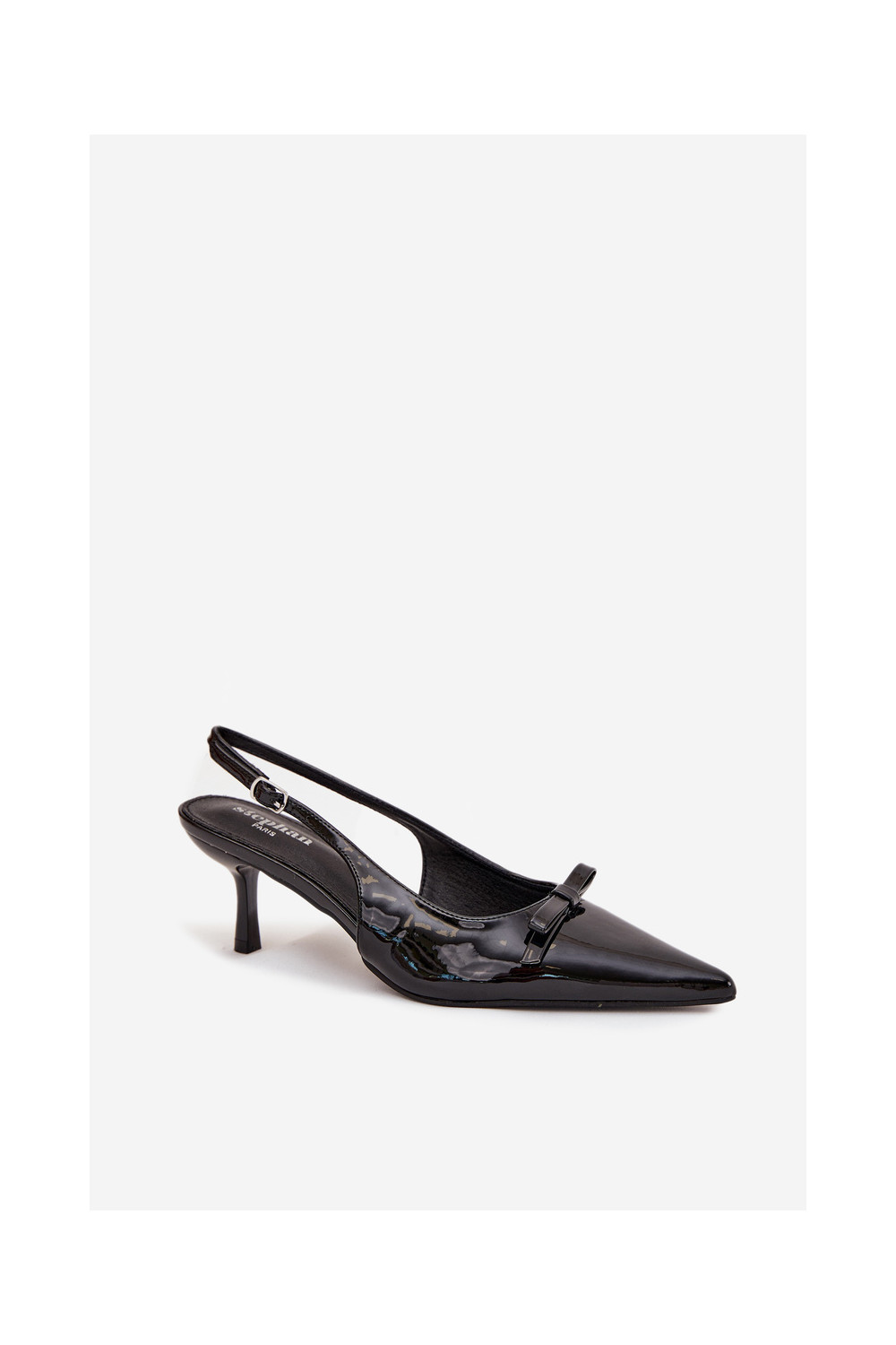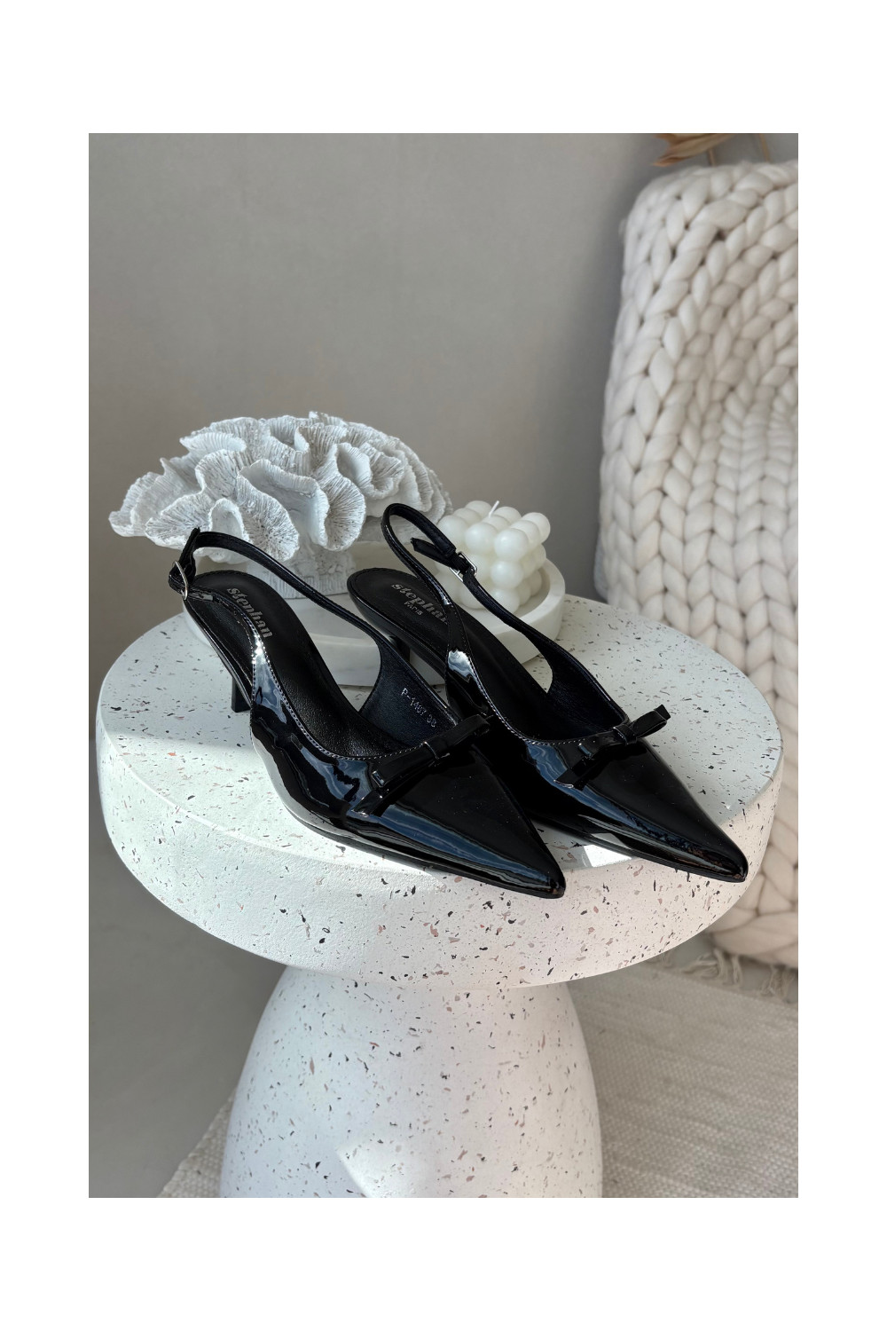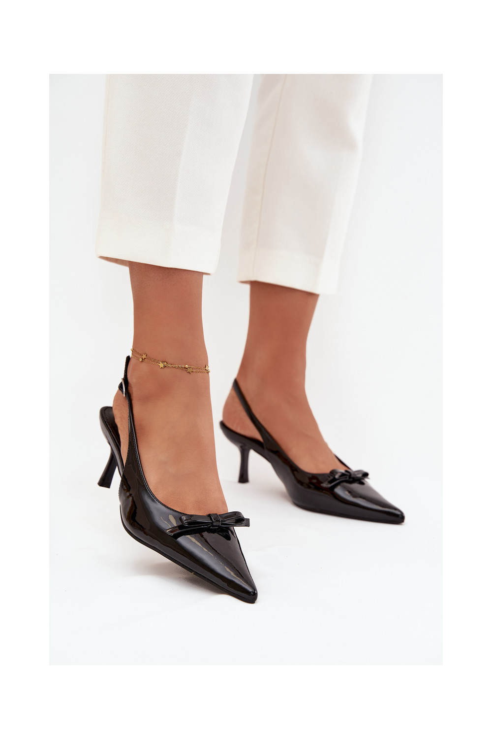 Lakiniai bateliai su plonais kulniukais ir kaspinais juodos spalvos Olvena