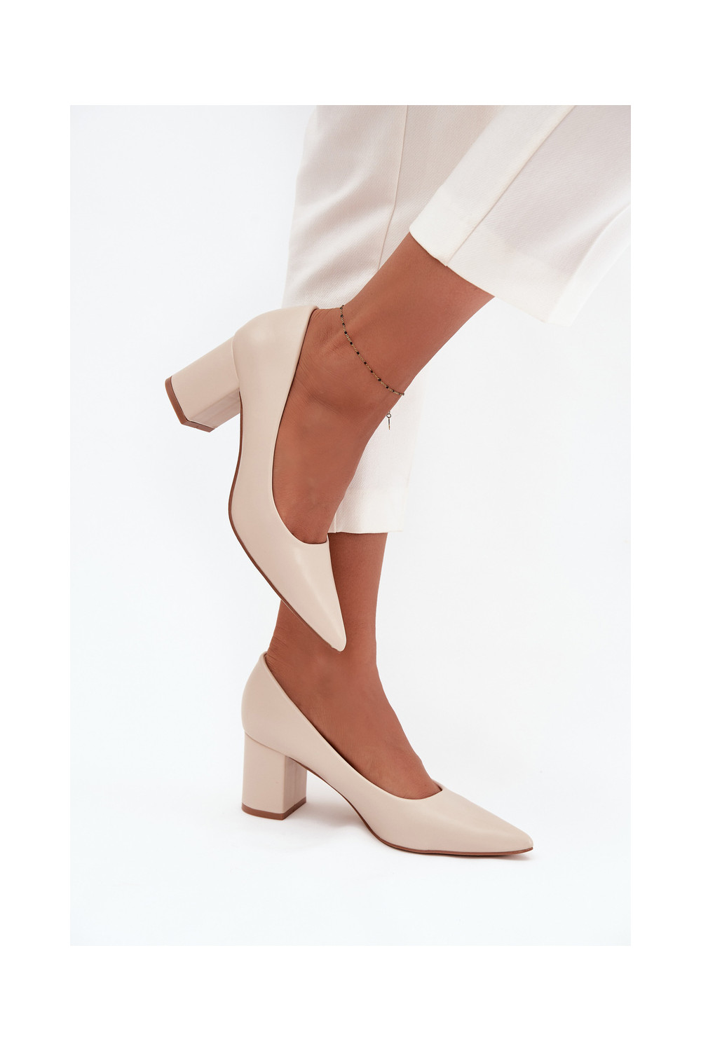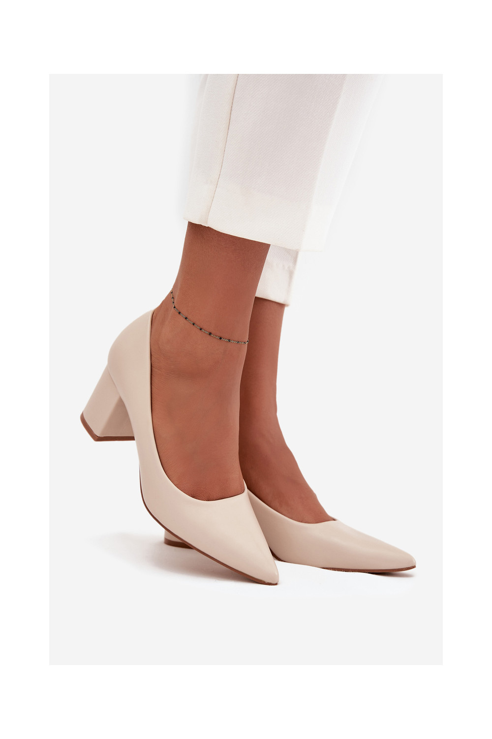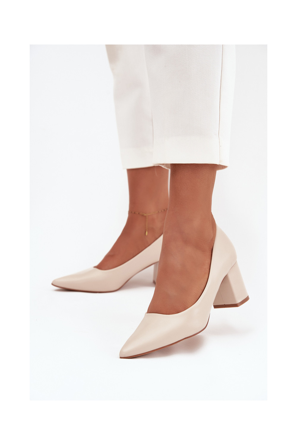 Moteriški smailianosiai bateliai „Ryvessa" ant stulpelio kulno, dramblio kaulo spalvos