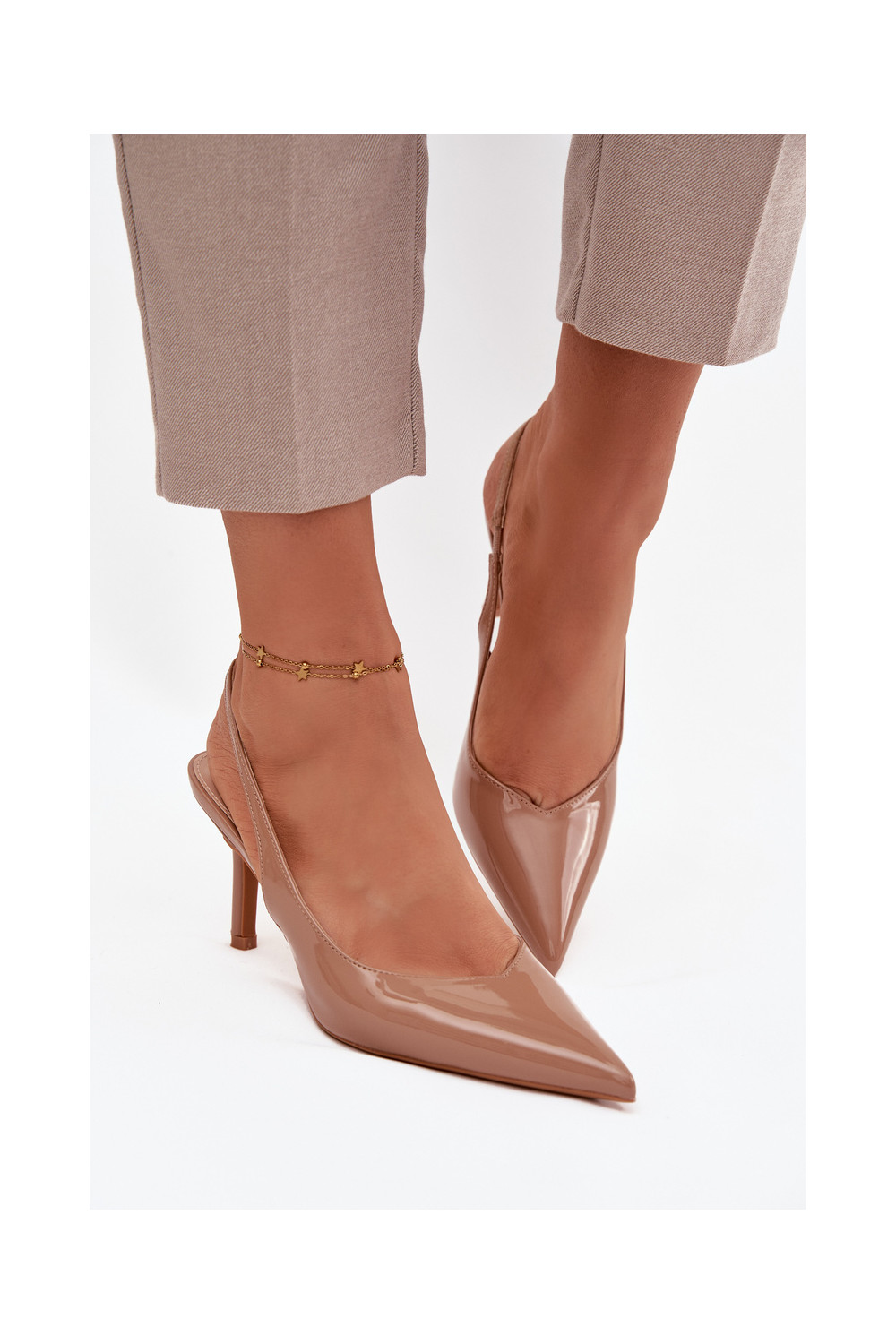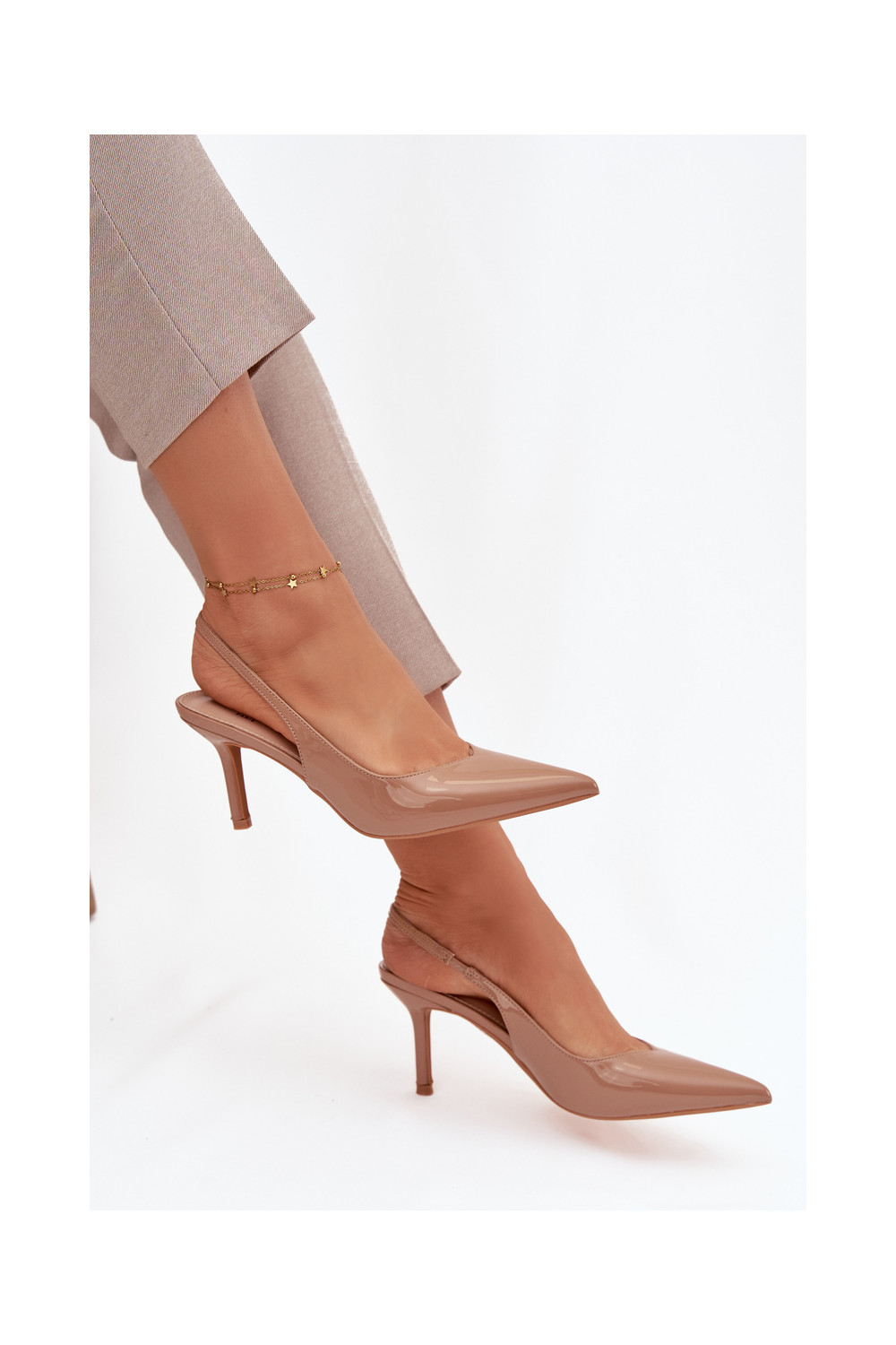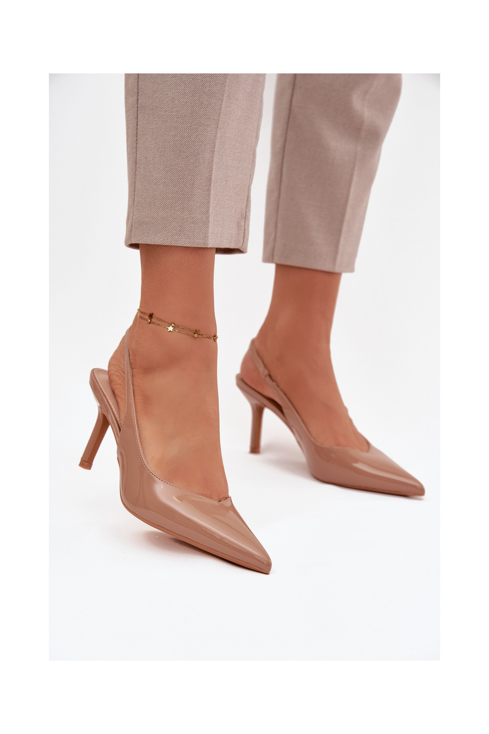 su lako efektu Bateliai su plonais kulniukais smėlio spalvos Phelia