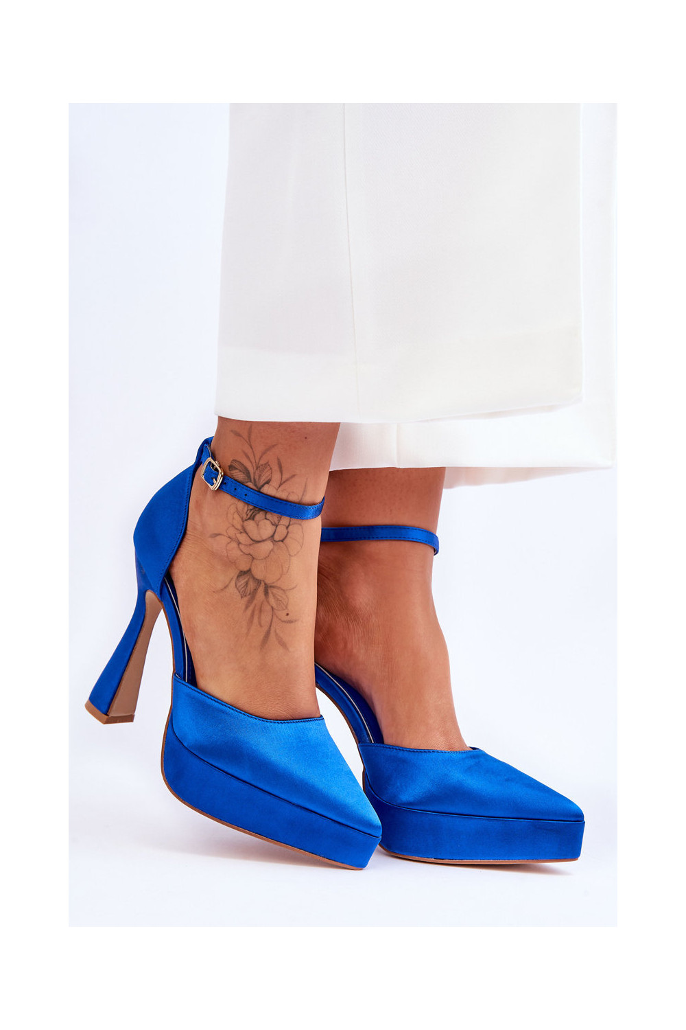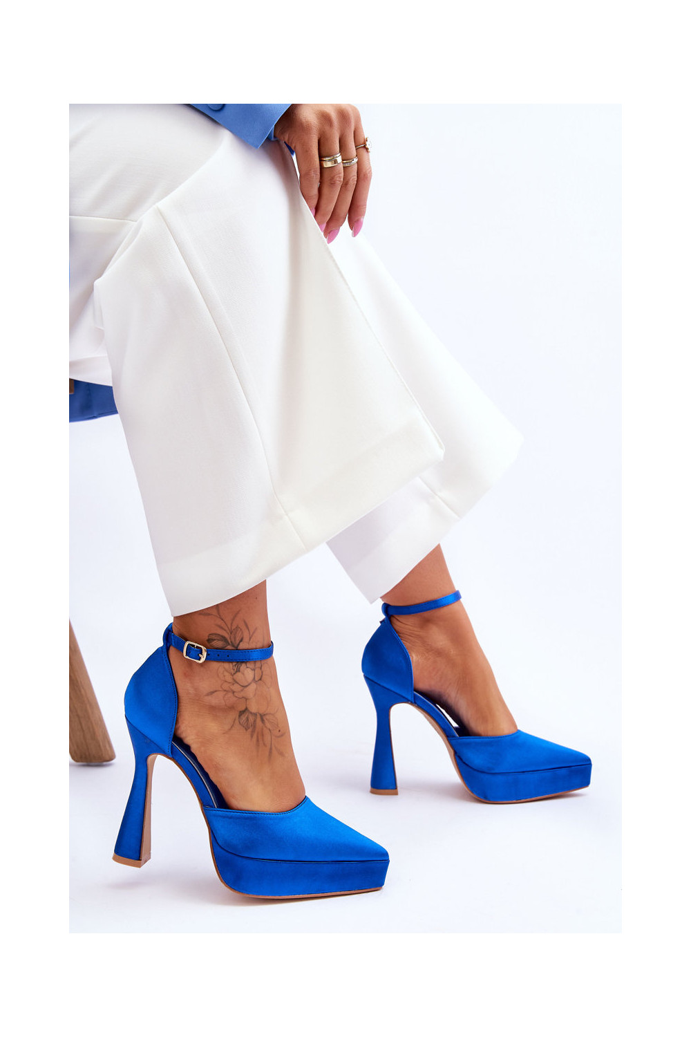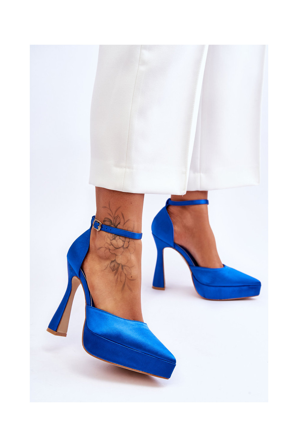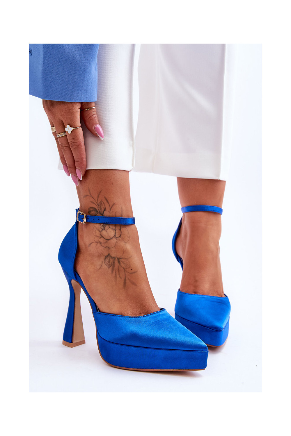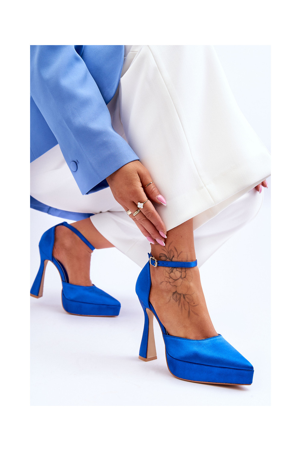 Bateliai ant platesnio kulno mėlynos spalvos