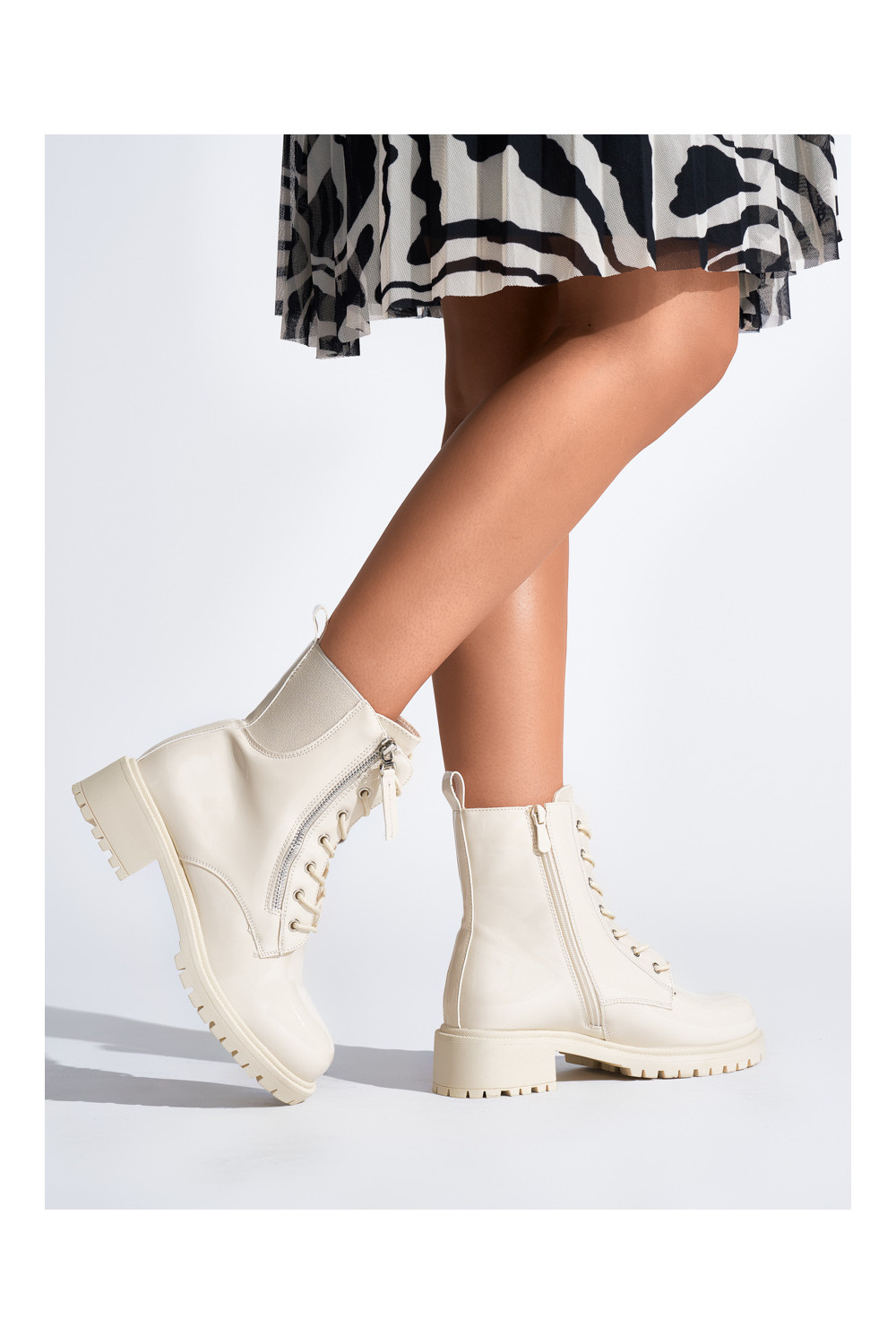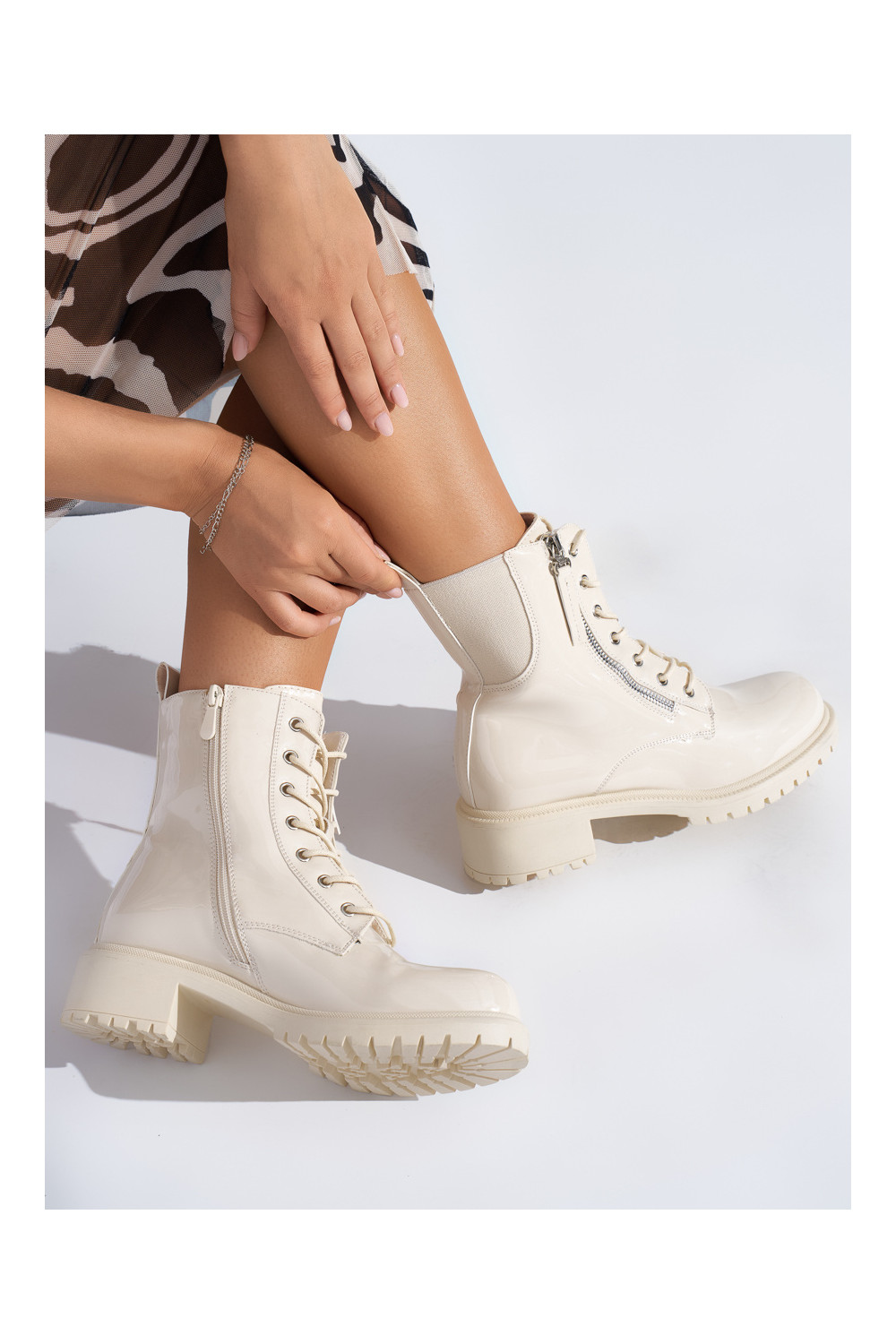 smėlio spalvos lakuotas moteriški batai su platforma