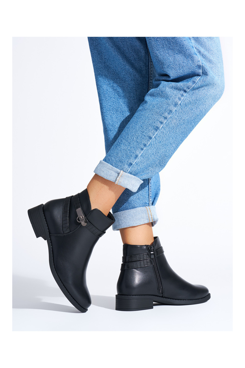 juodos spalvos moteriški batai ant žemo kulno