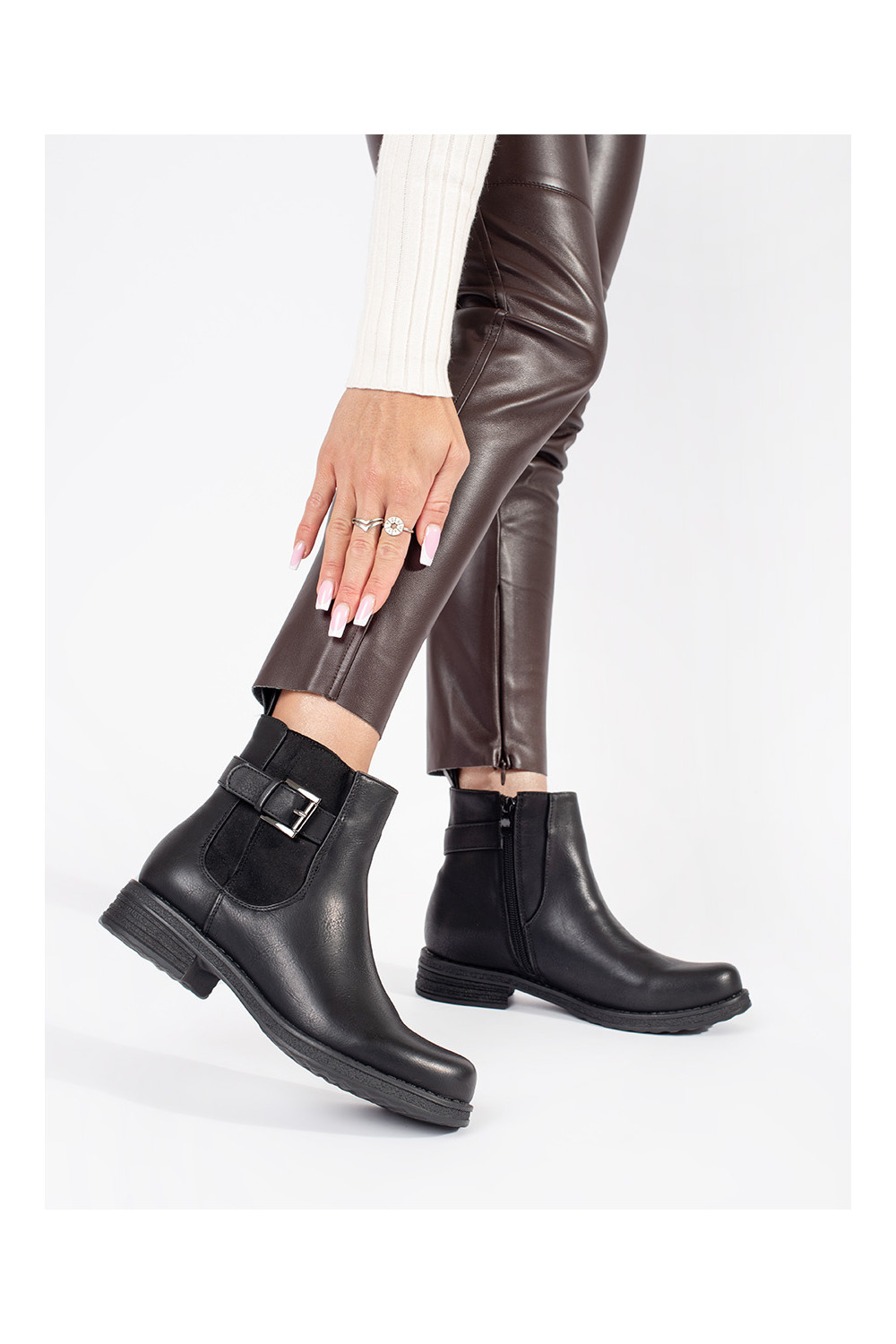 Juodos spalvos moteriški batai su sagtimis ant žemo kulno