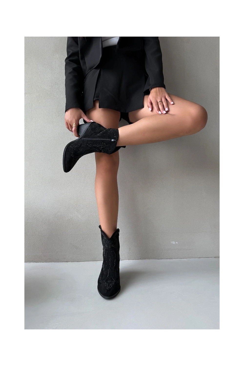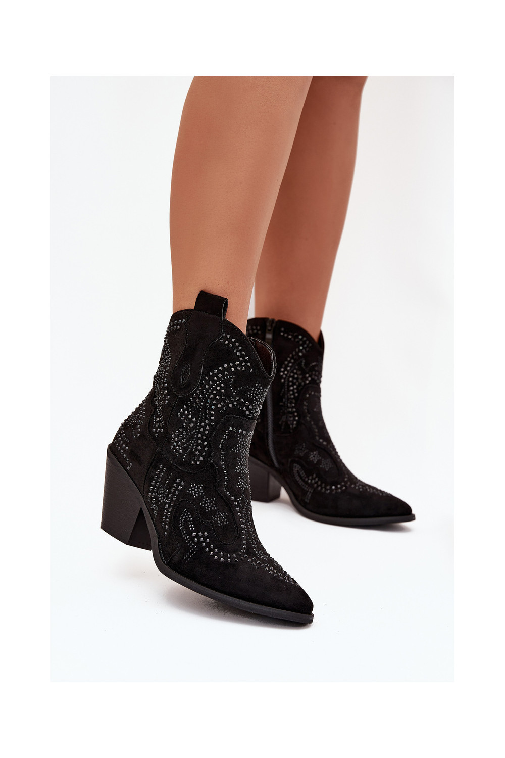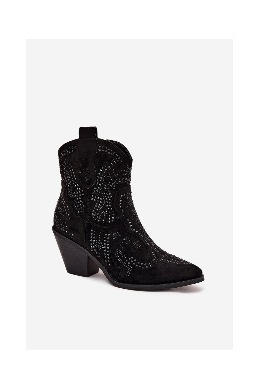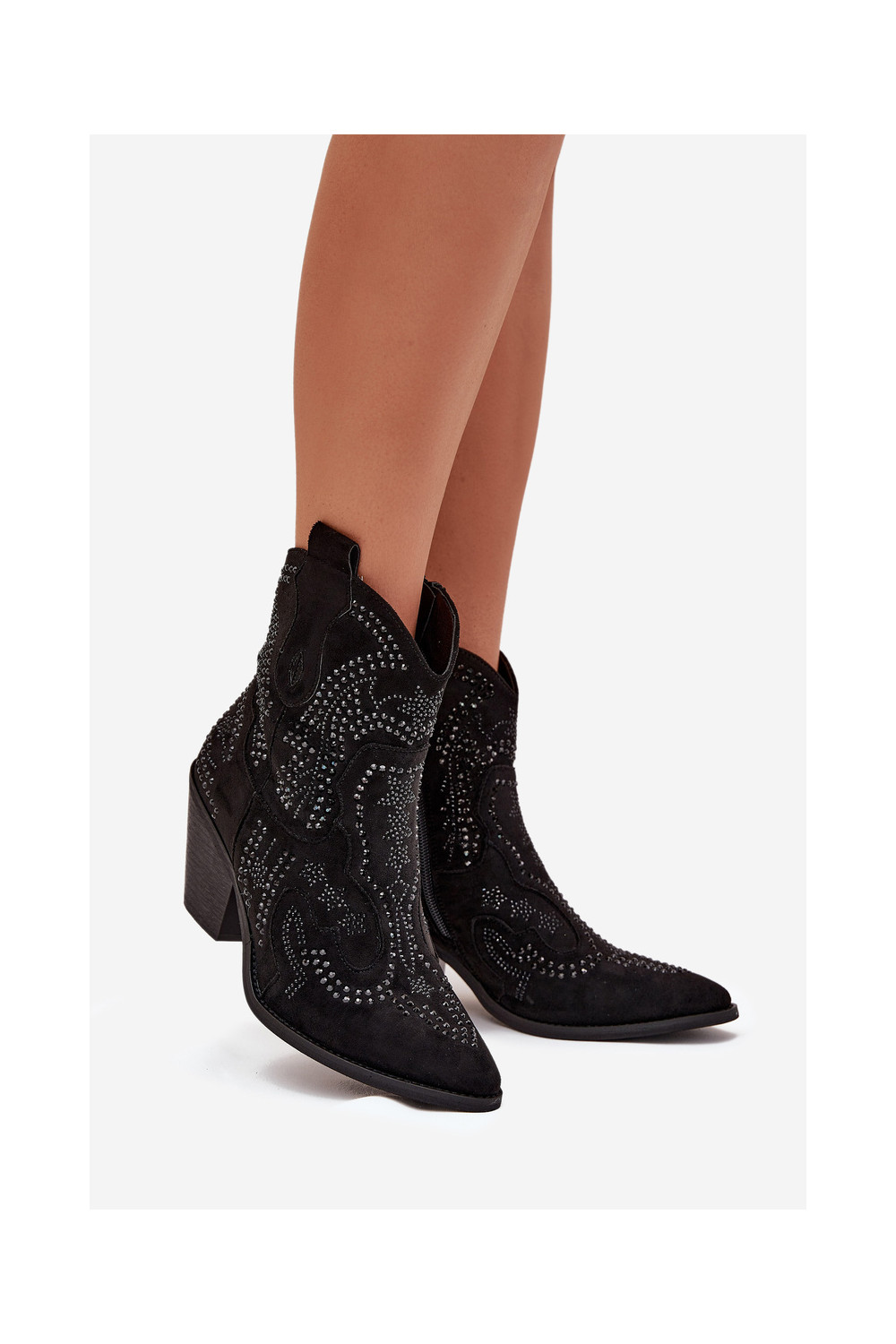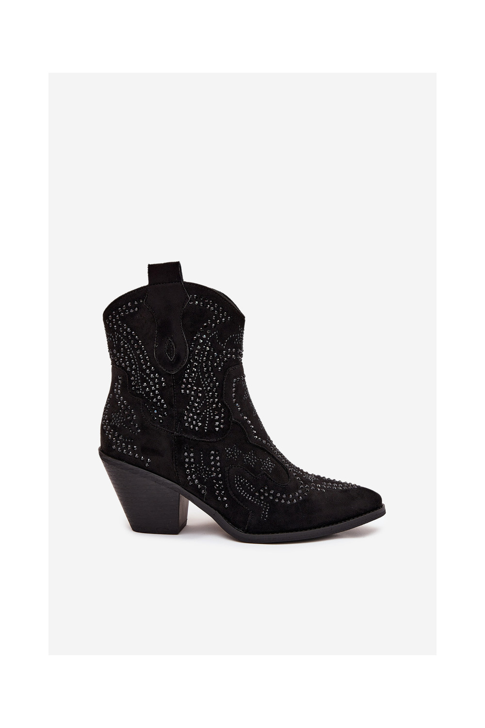 Pašiltinti moteriški kaubojiško stiliaus aulinukai su dekoracija, juodos spalvos Lelira