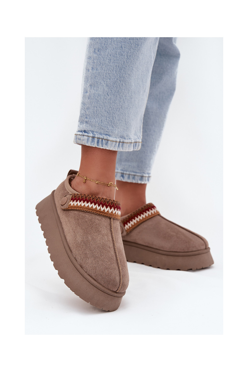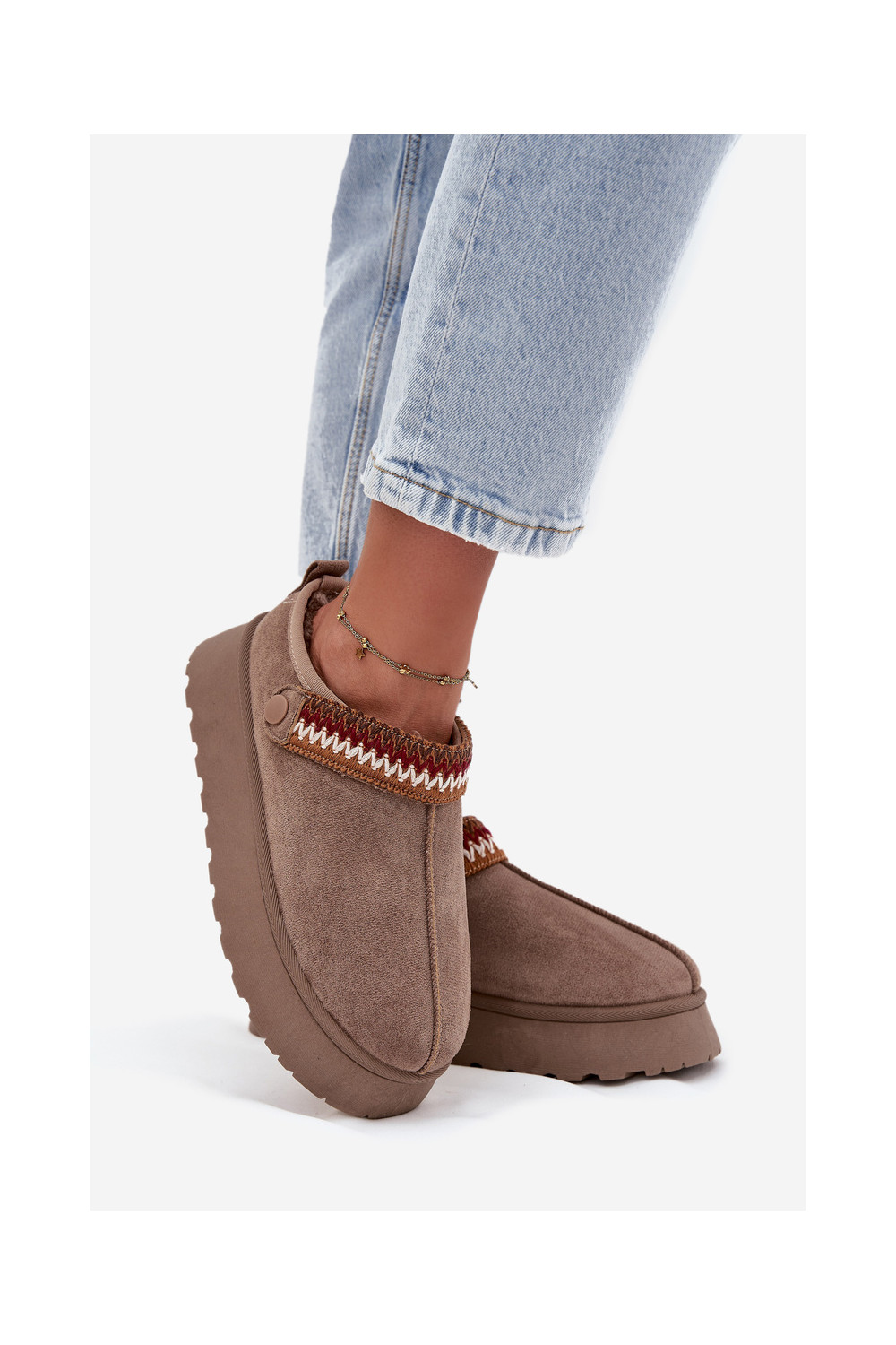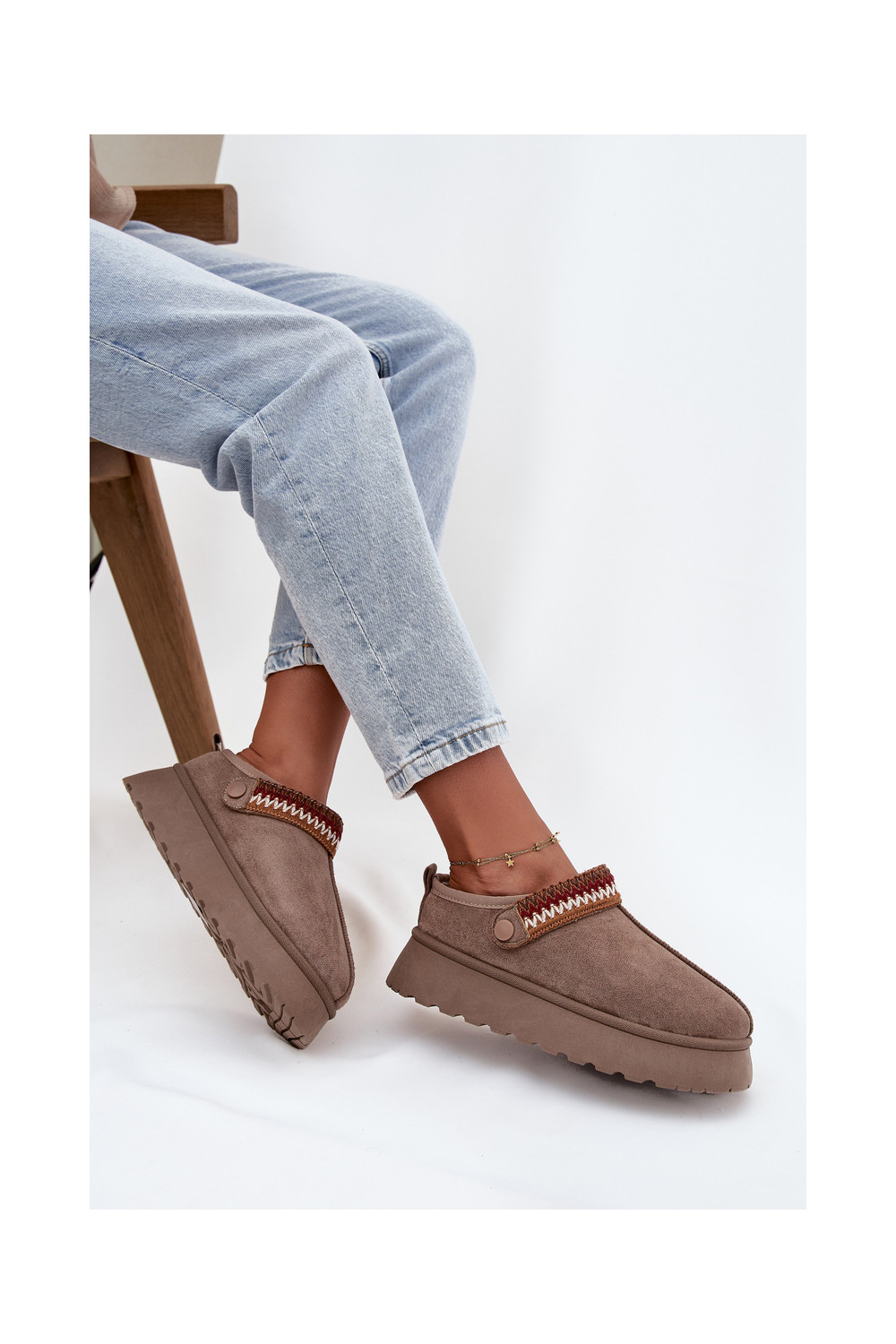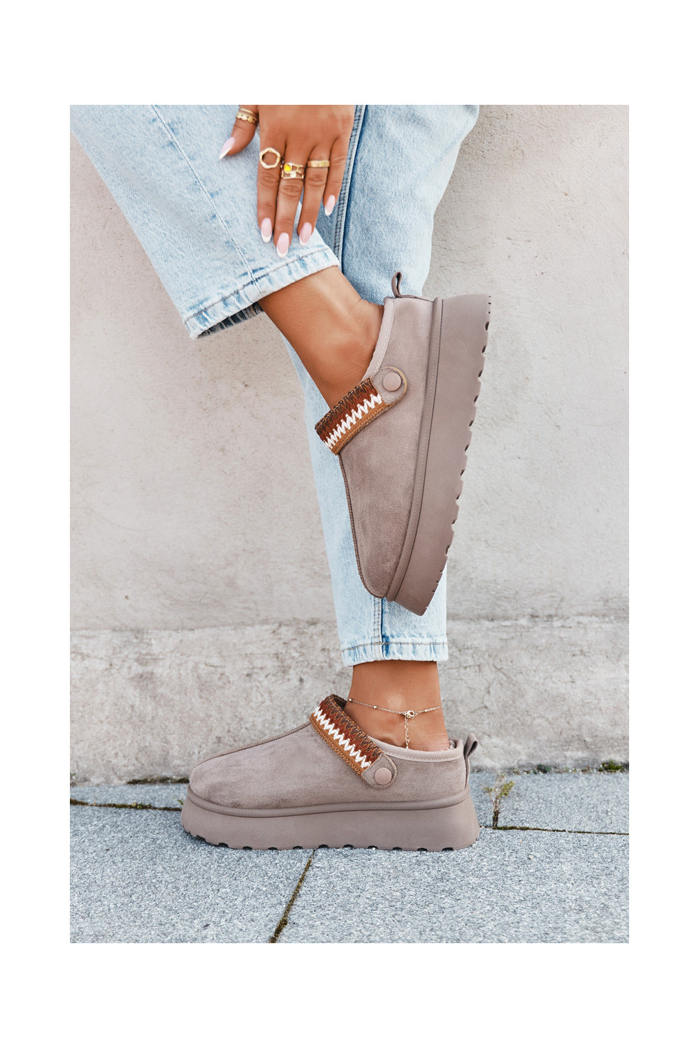 Sniego batai moteriški žemi su judančiais dirželiais ir siuvinėjimu, su platforma smėlio spalvos Lyrisse