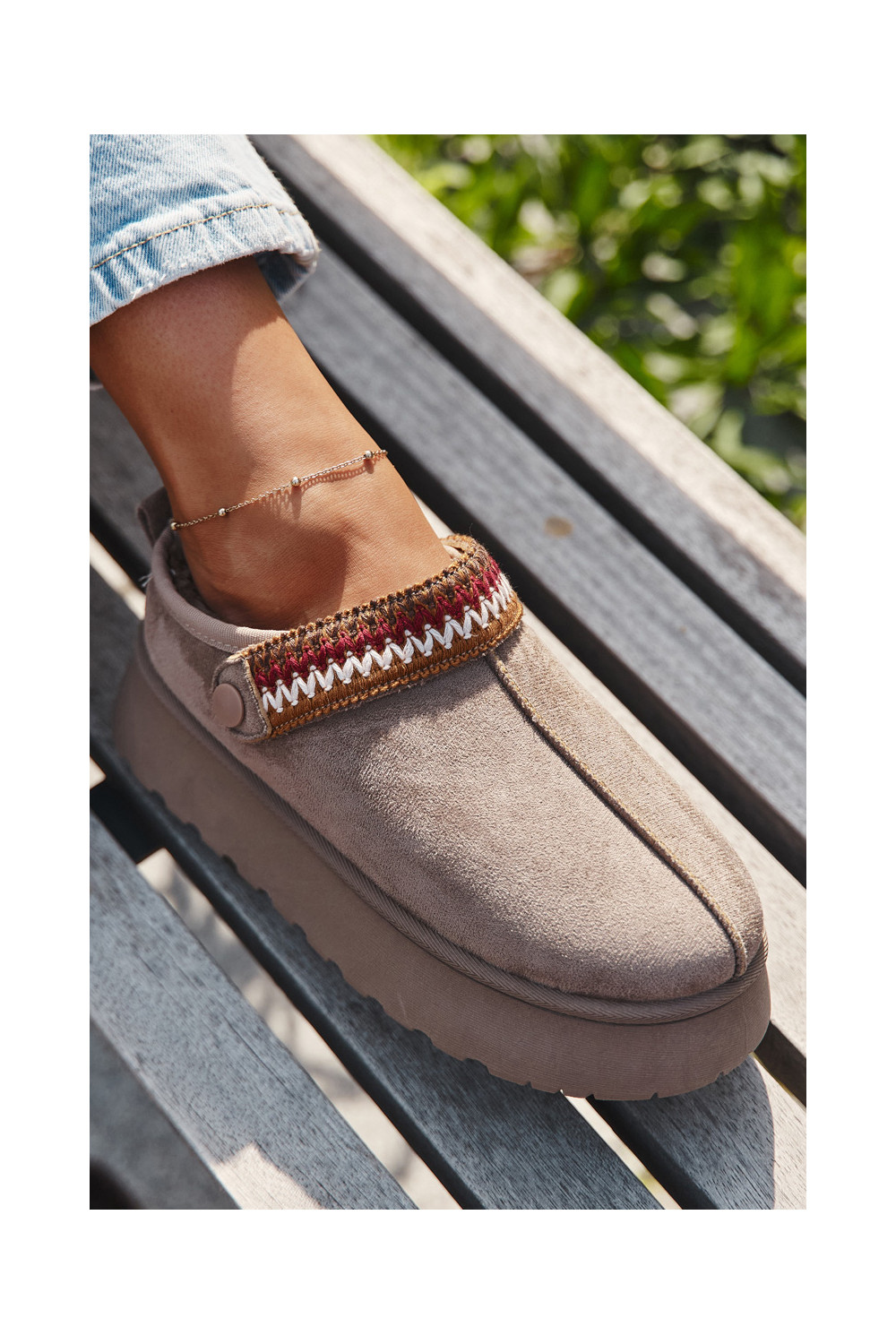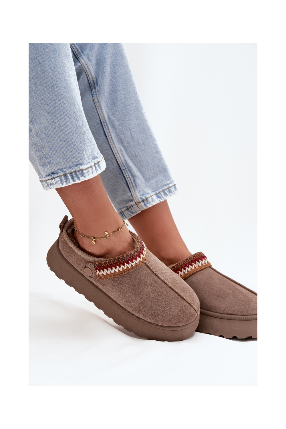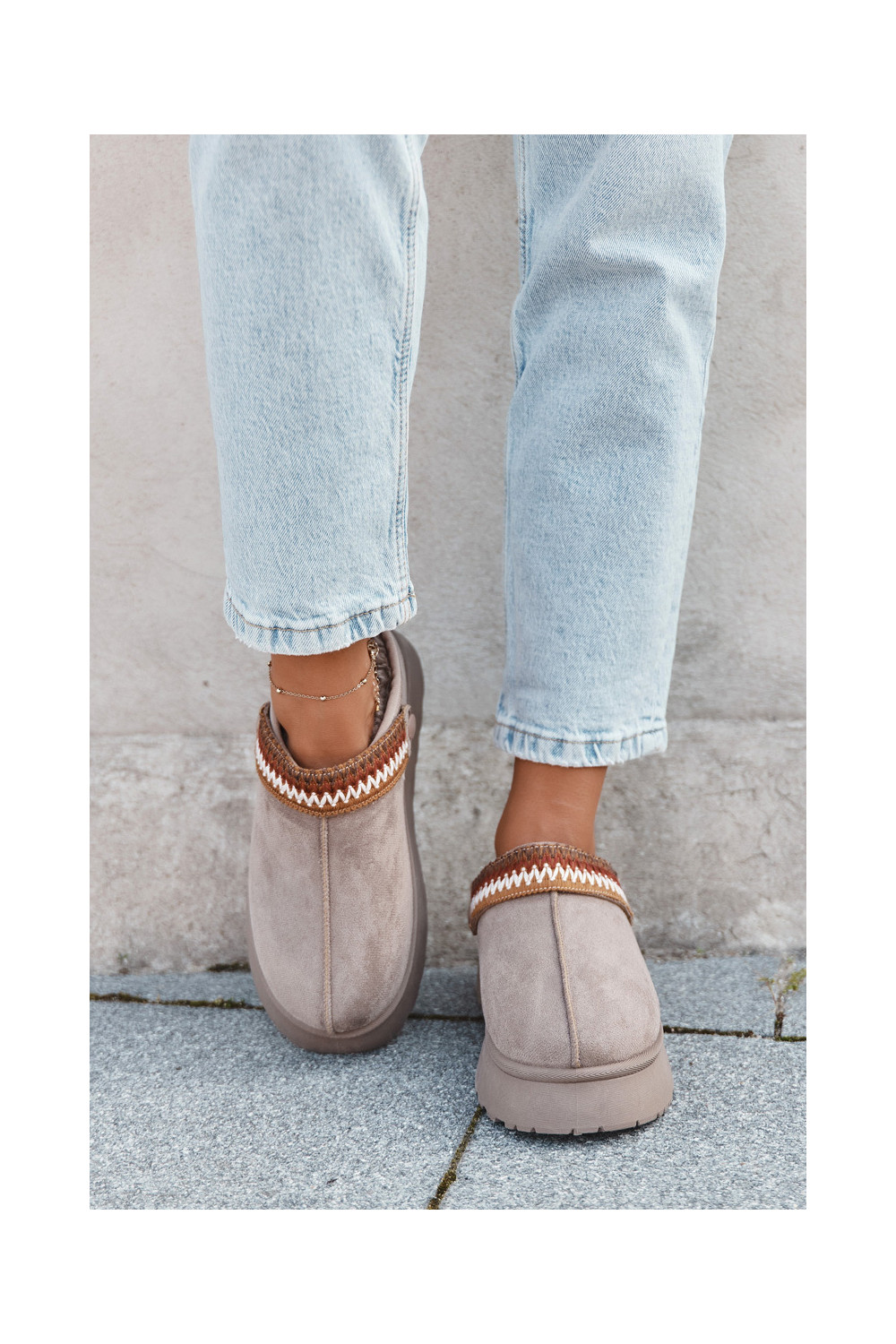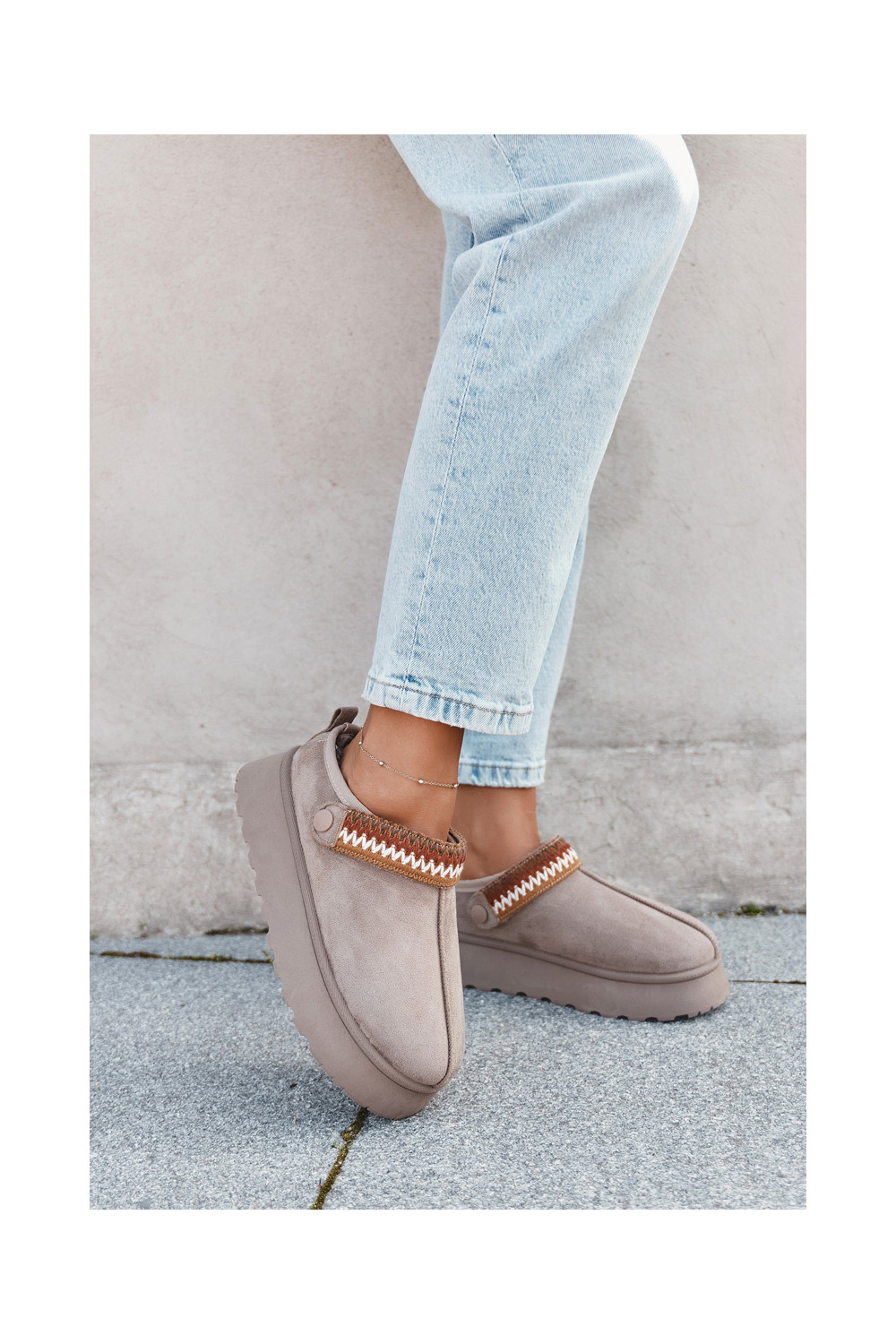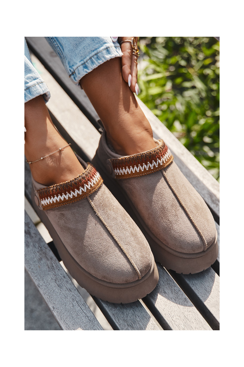 Sniego batai moteriški žemi su judančiais dirželiais ir siuvinėjimu, su platforma smėlio spalvos Lyrisse