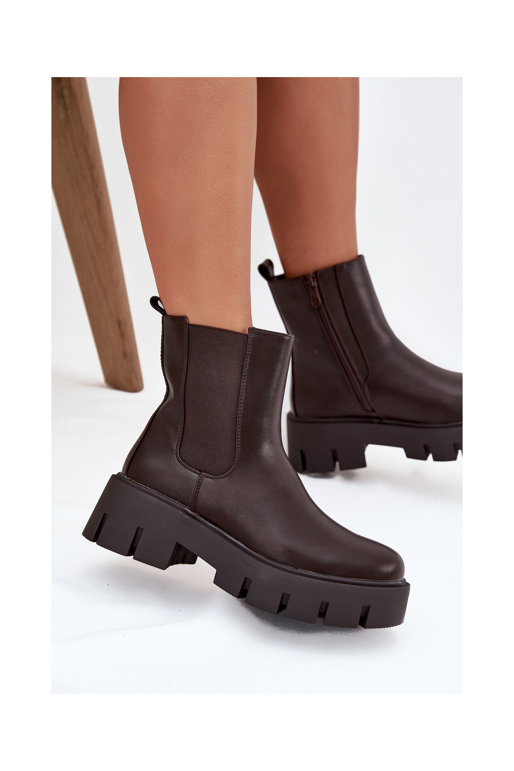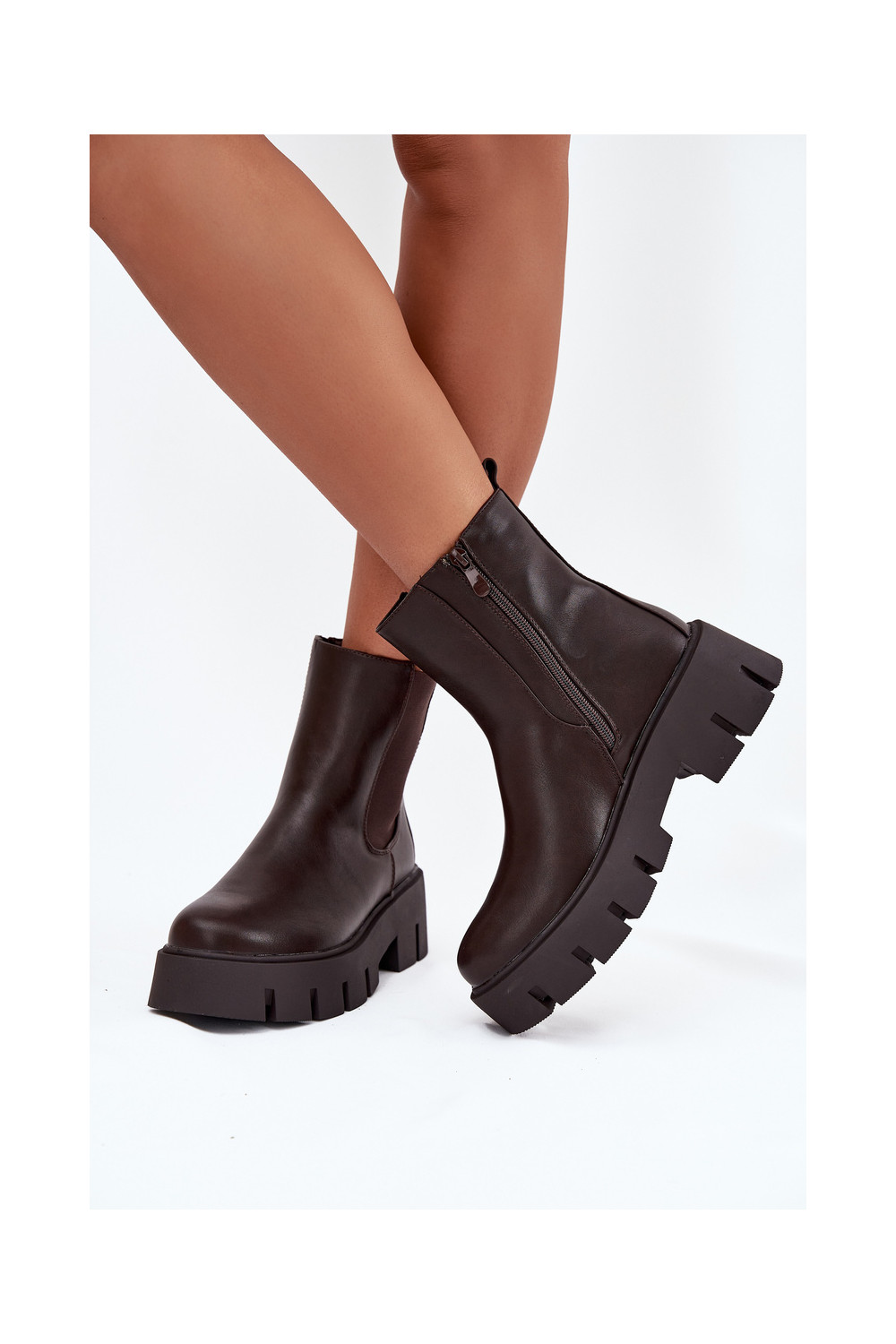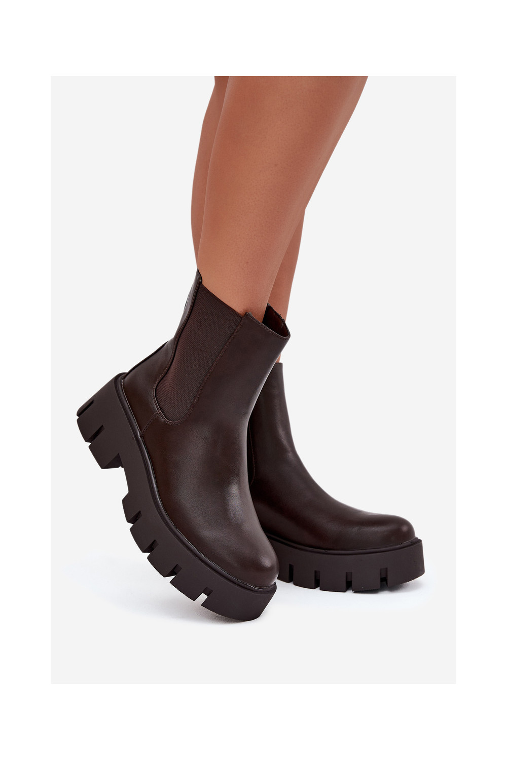 Stilingi pašiltinti moteriški aulinukai iš dirbtinės odos tamsiai rudos spalvos "Fivienne"