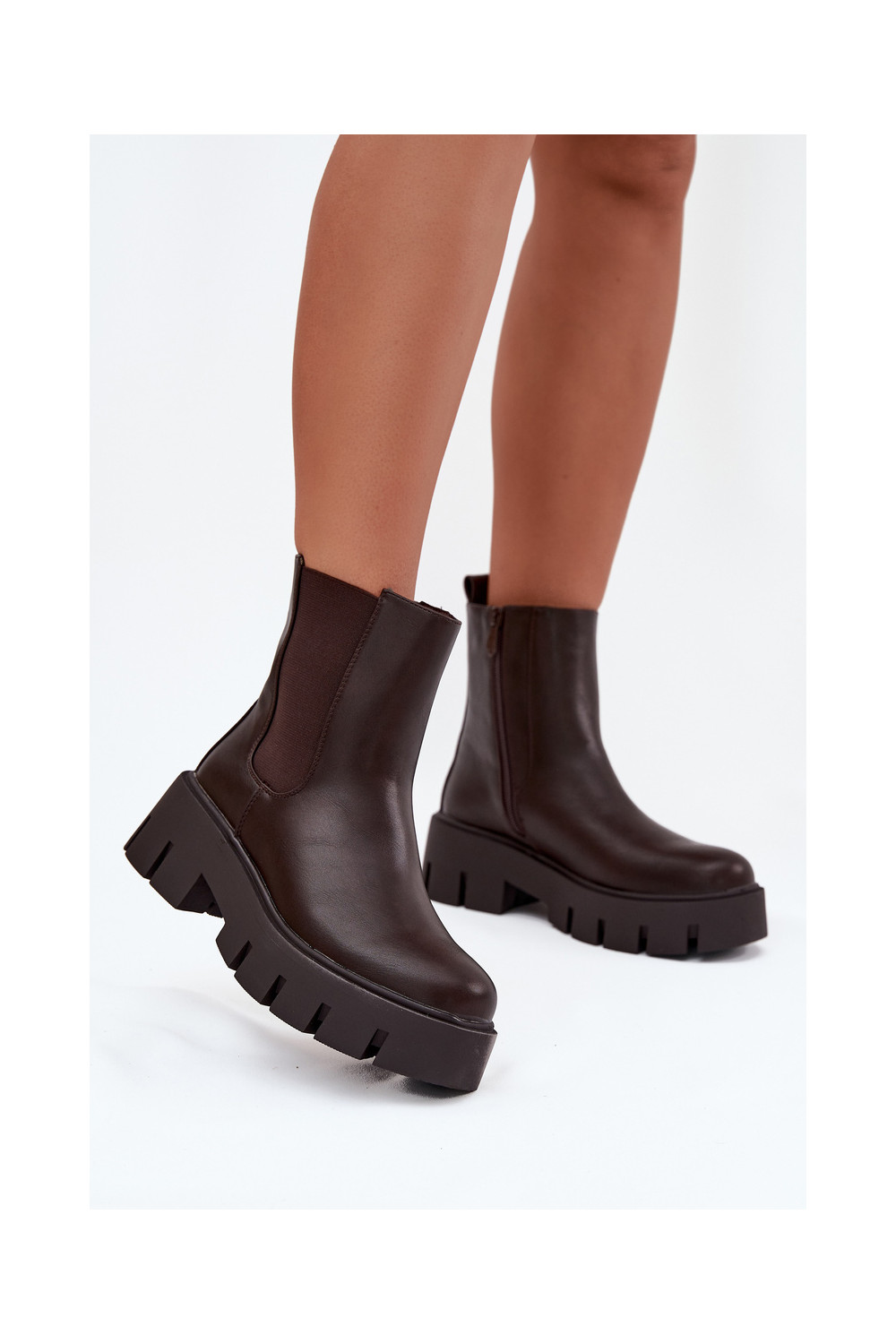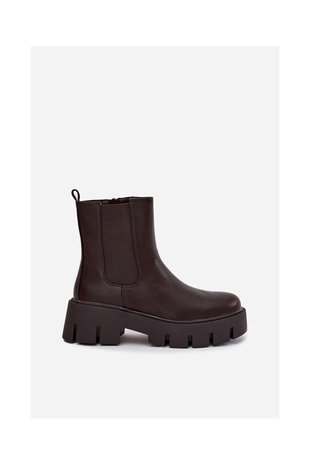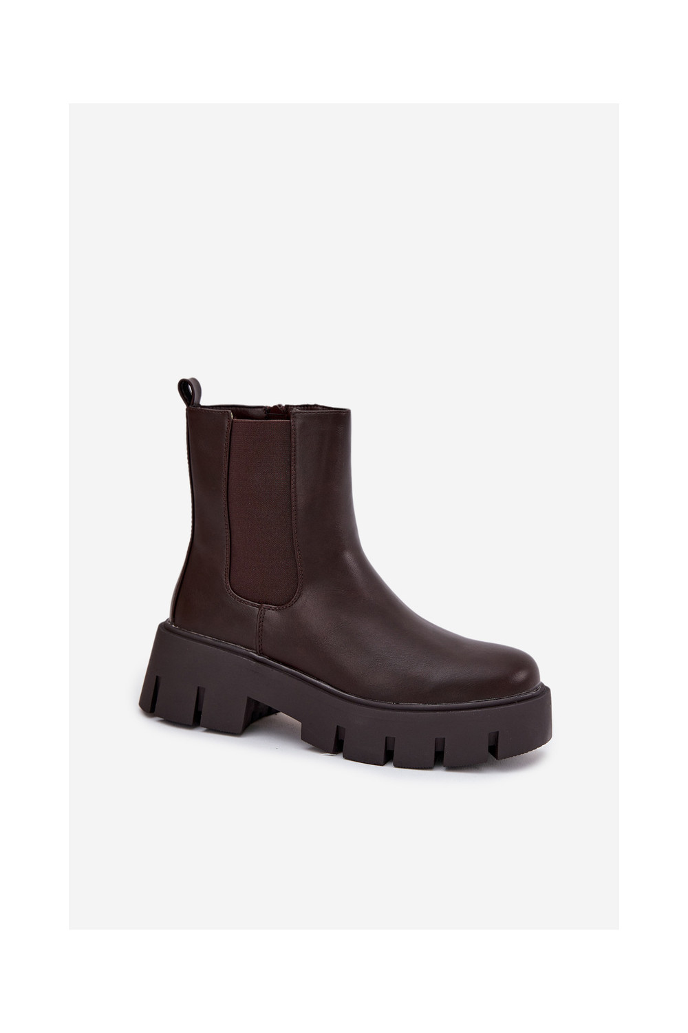 Stilingi pašiltinti moteriški aulinukai iš dirbtinės odos tamsiai rudos spalvos "Fivienne"