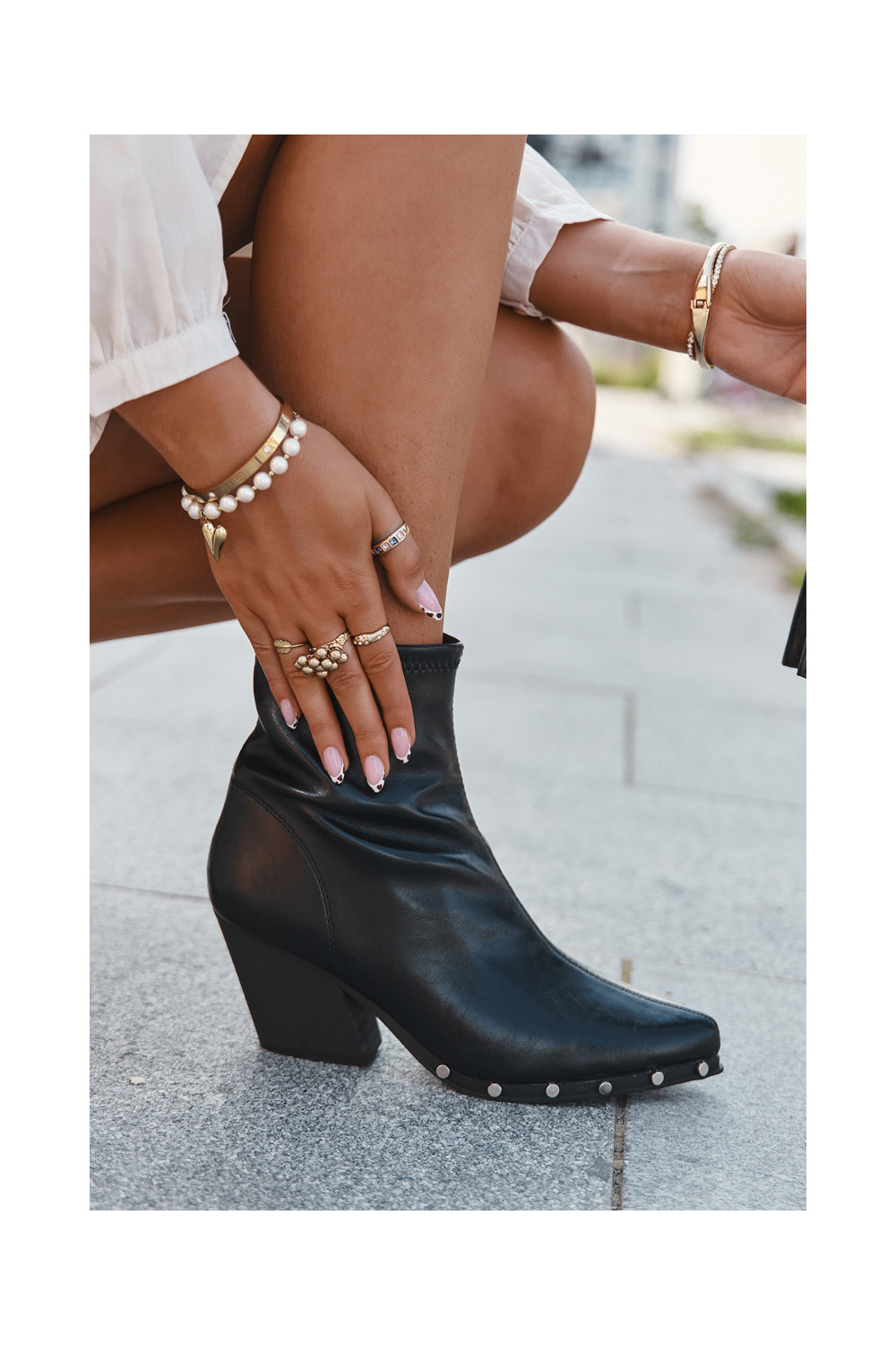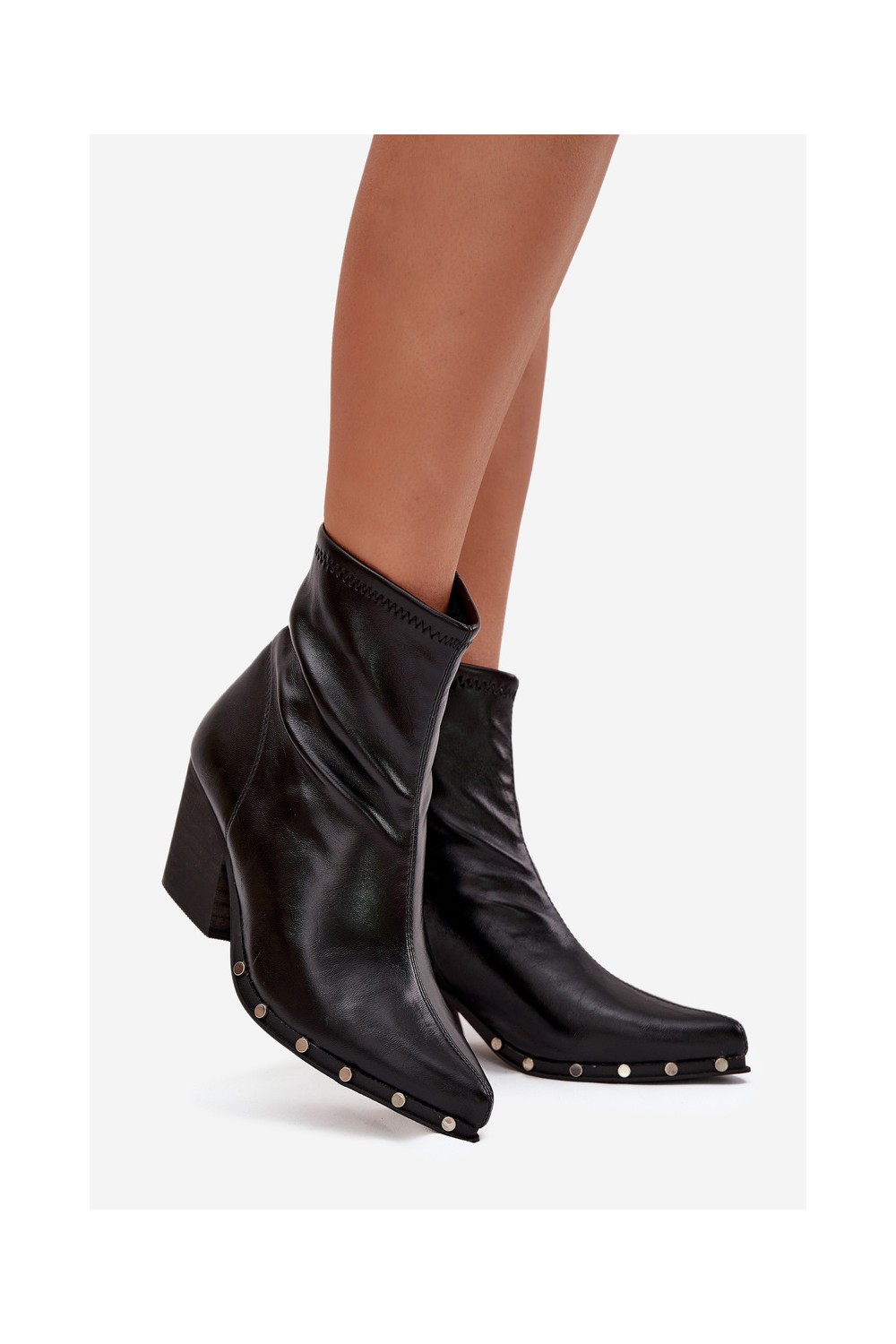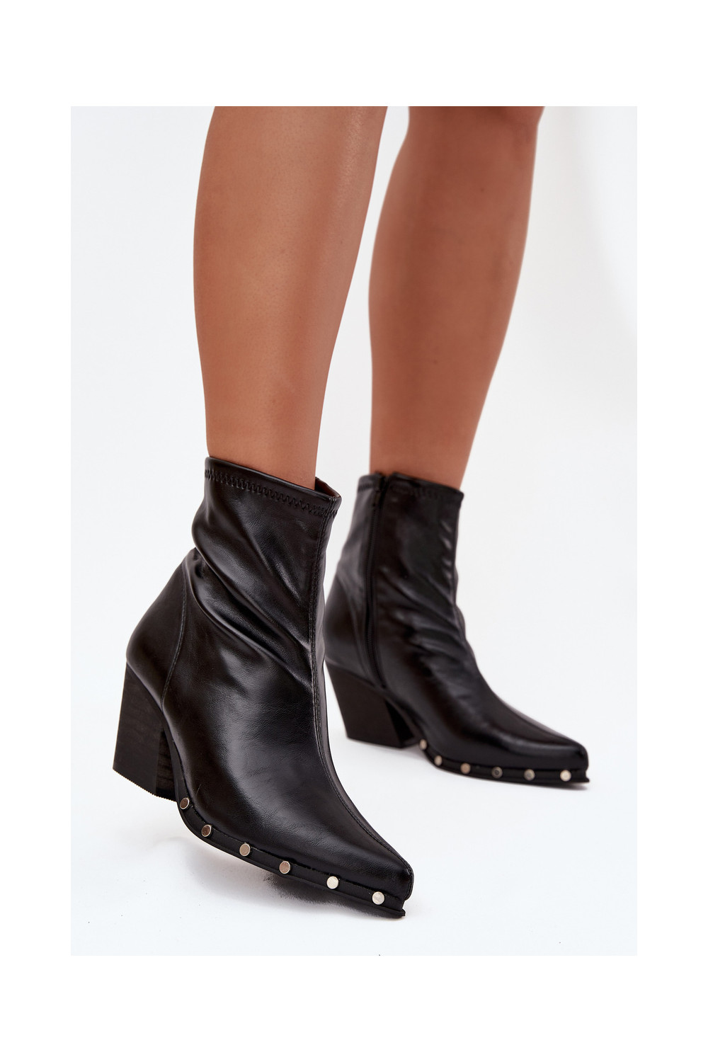 Juodos spalvos kaubojų stiliaus moteriški aulinukai iš dirbtinės odos su kulniukais Abrielle