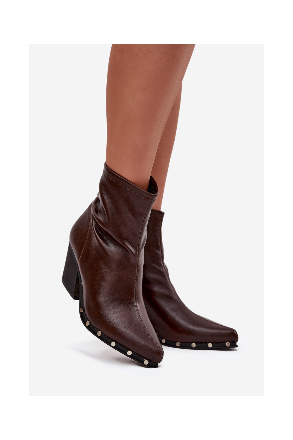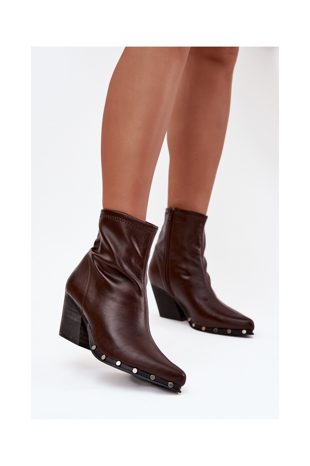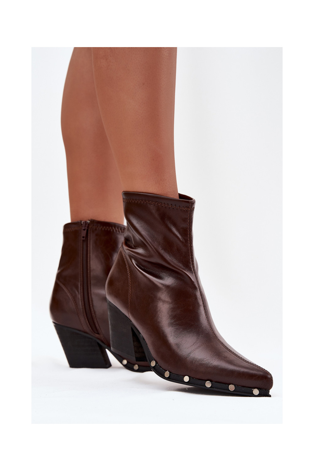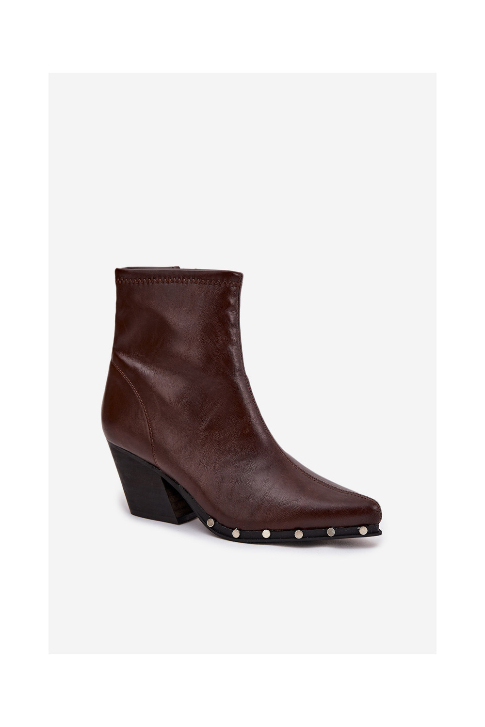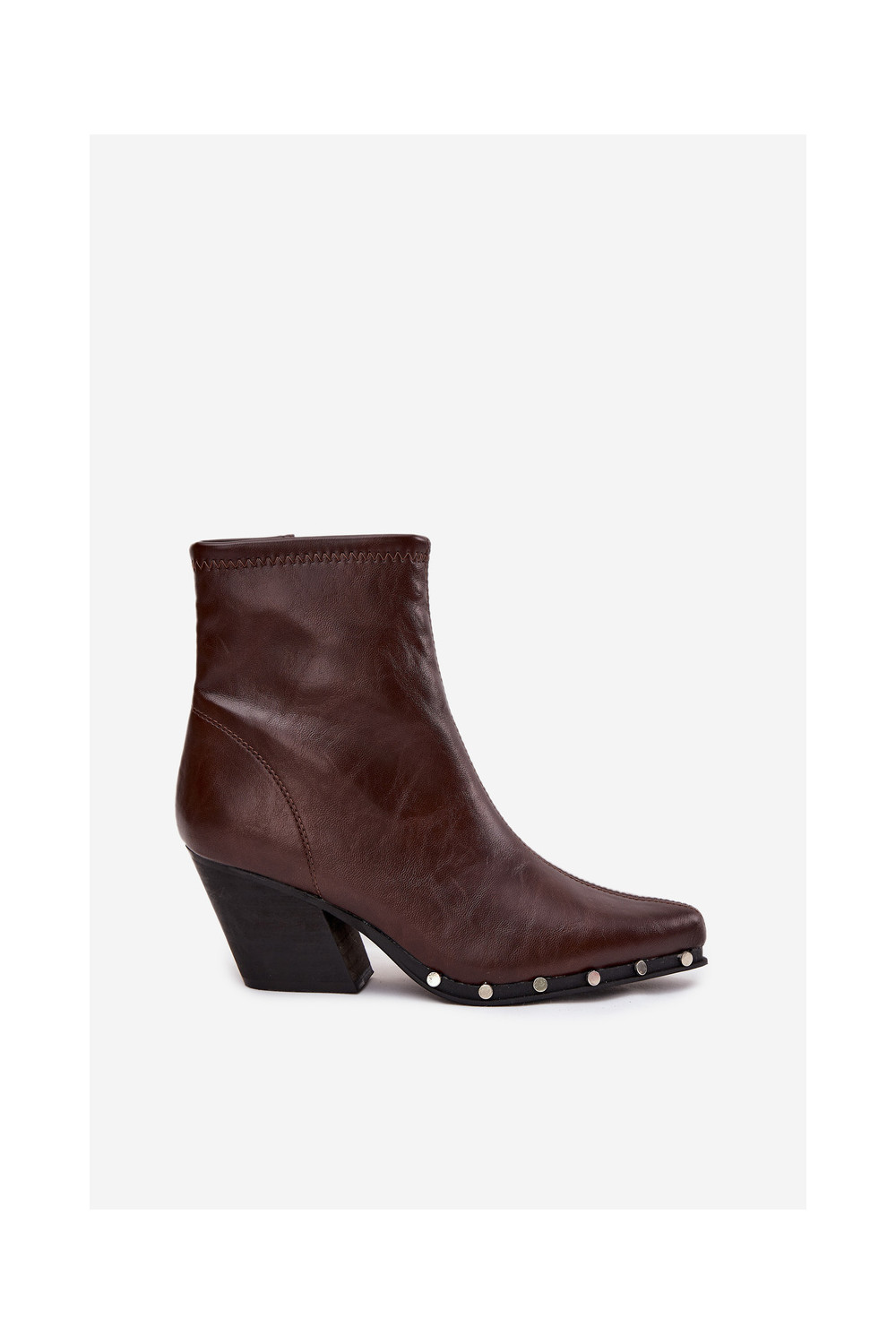 Rudos spalvos kaubojų stiliaus moteriški aulinukai iš dirbtinės odos su kulniukais Abrielle