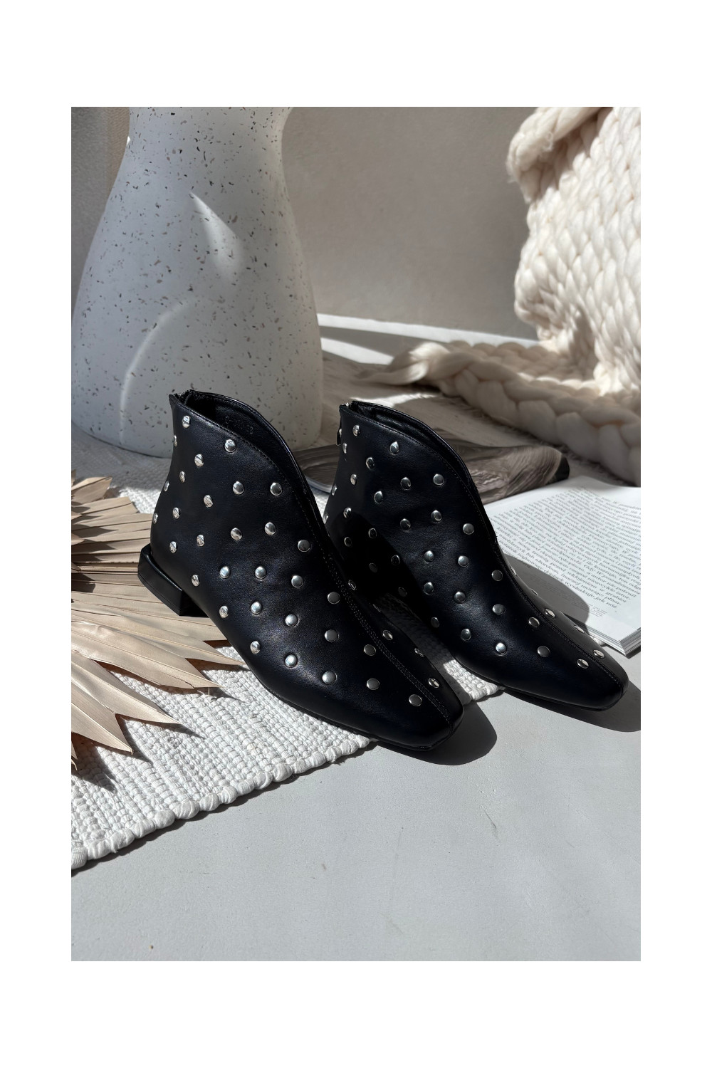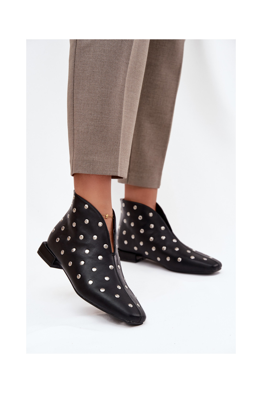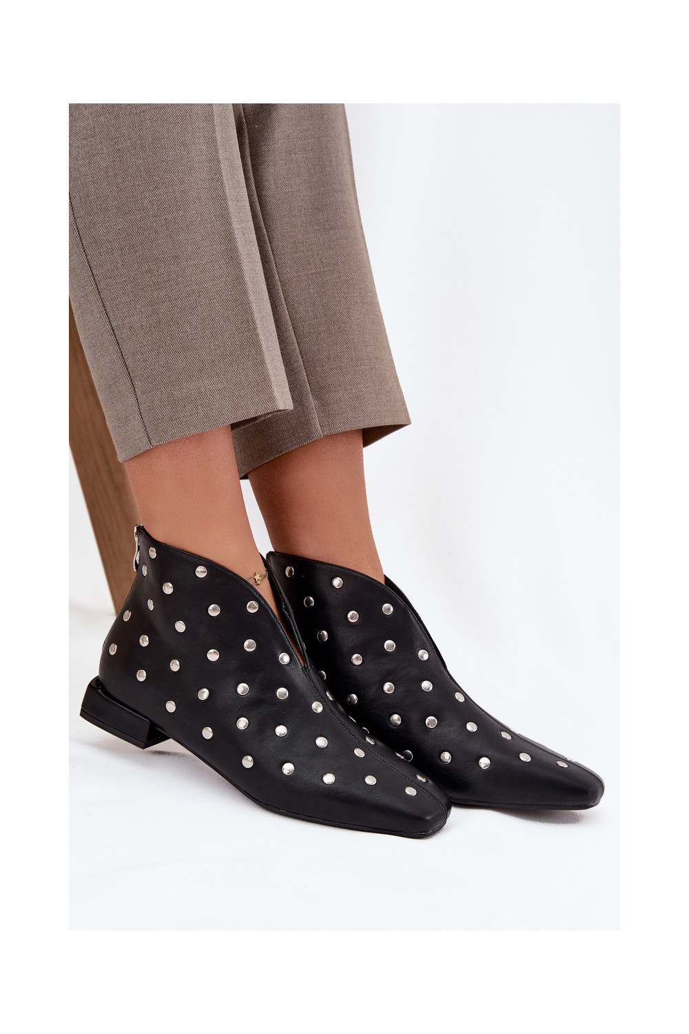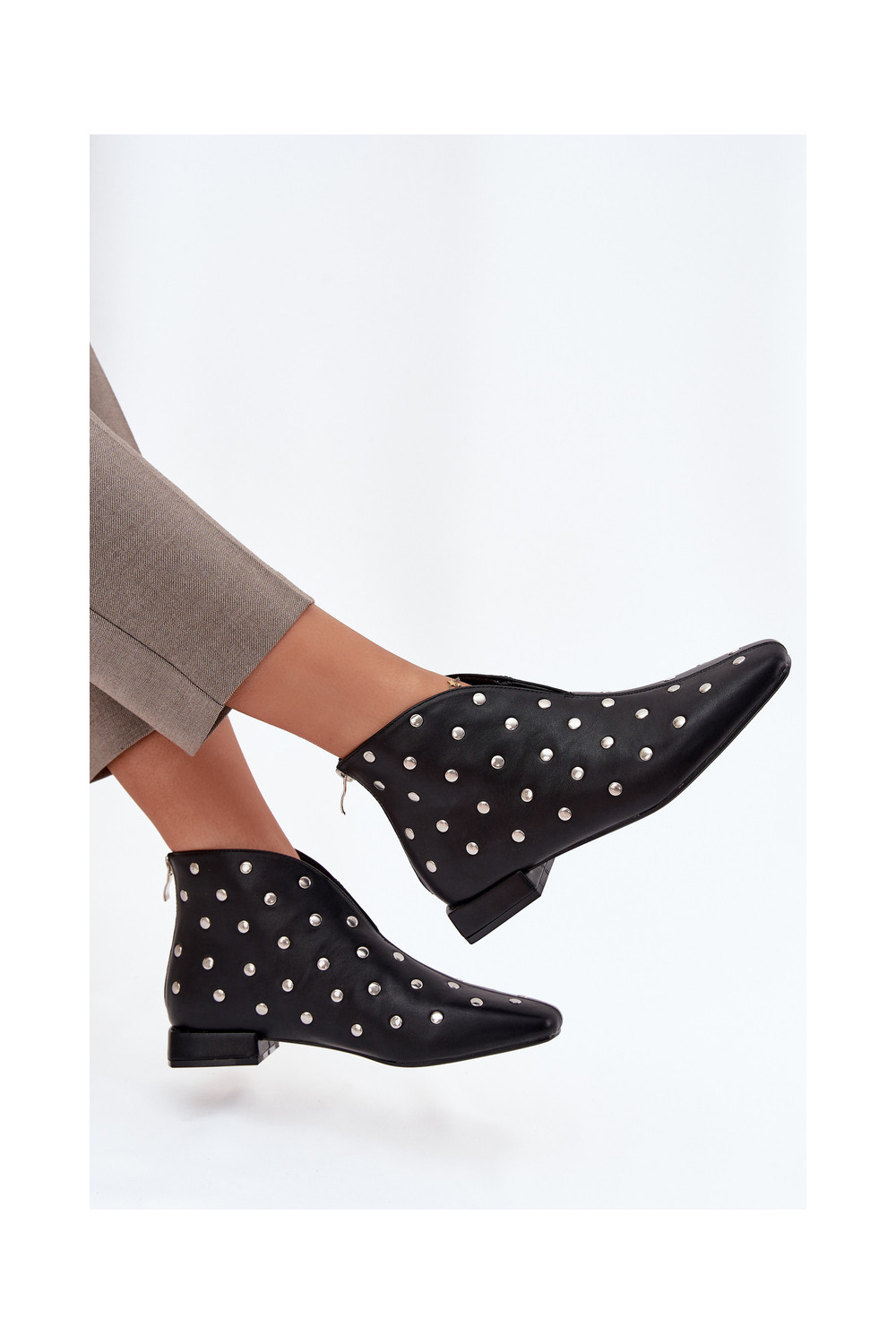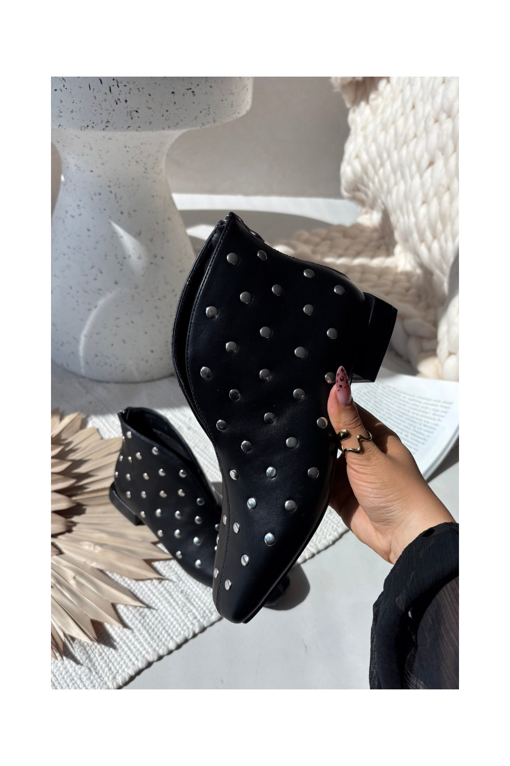 Juodos spalvos moteriški aulinukai ant plono kulniuko su sidabrinėmis detalėmis Rosalind