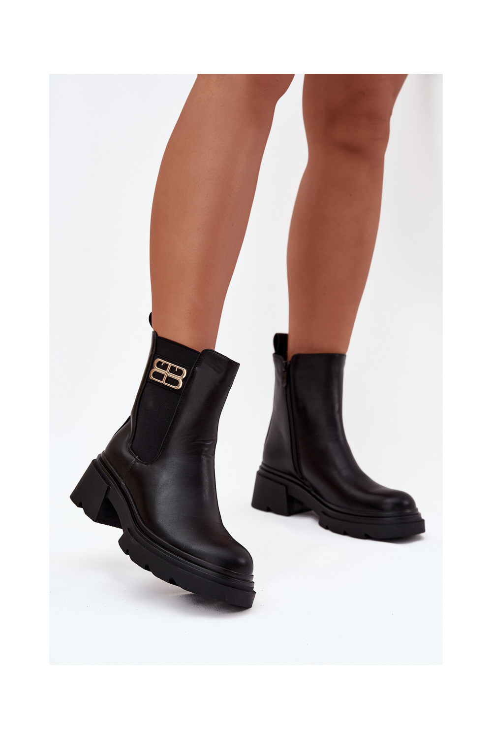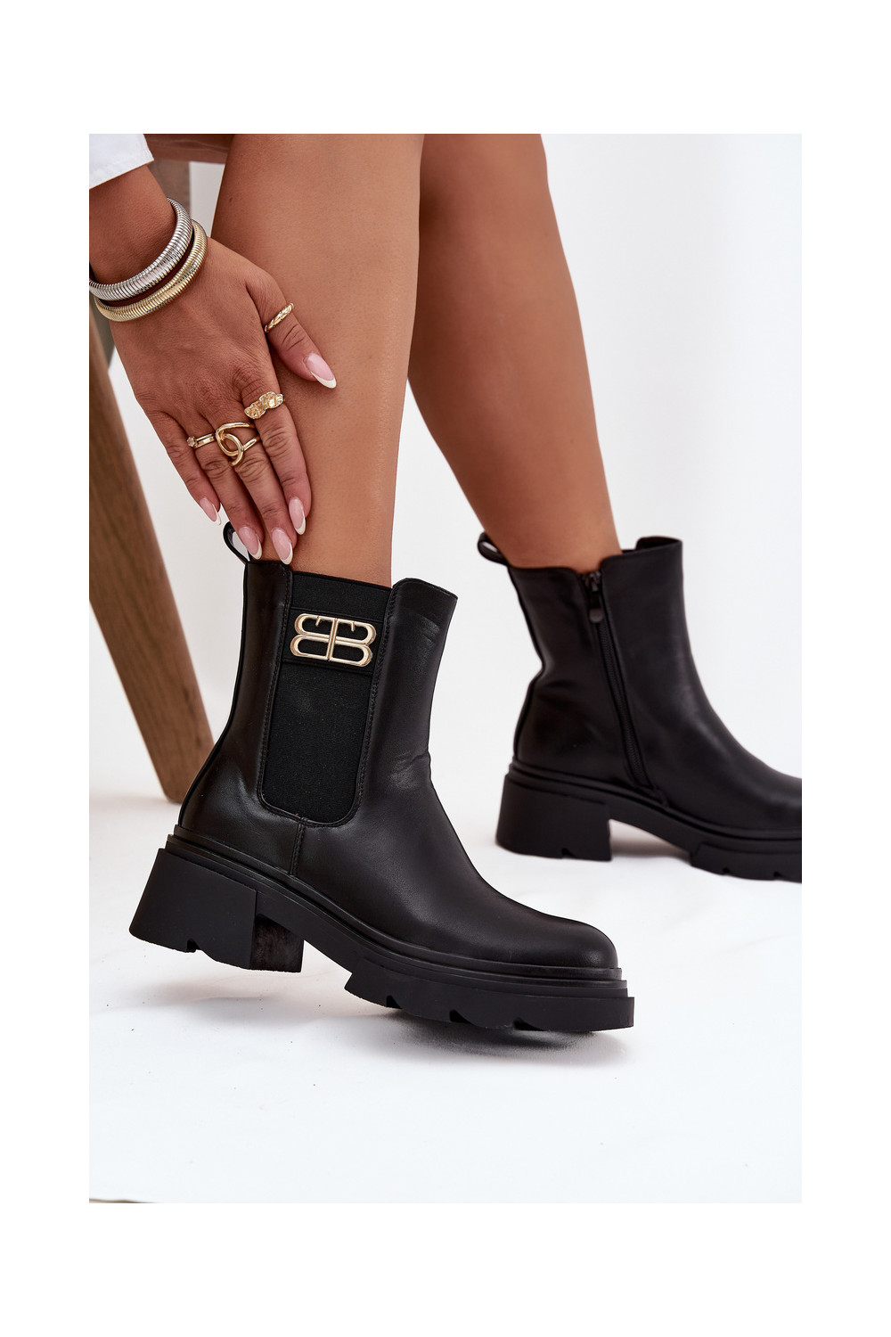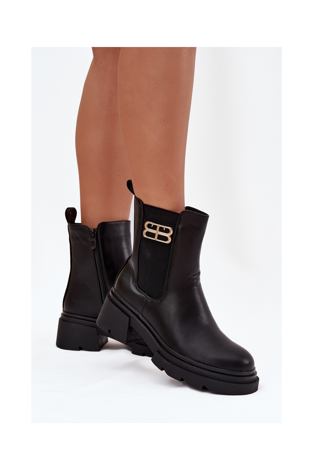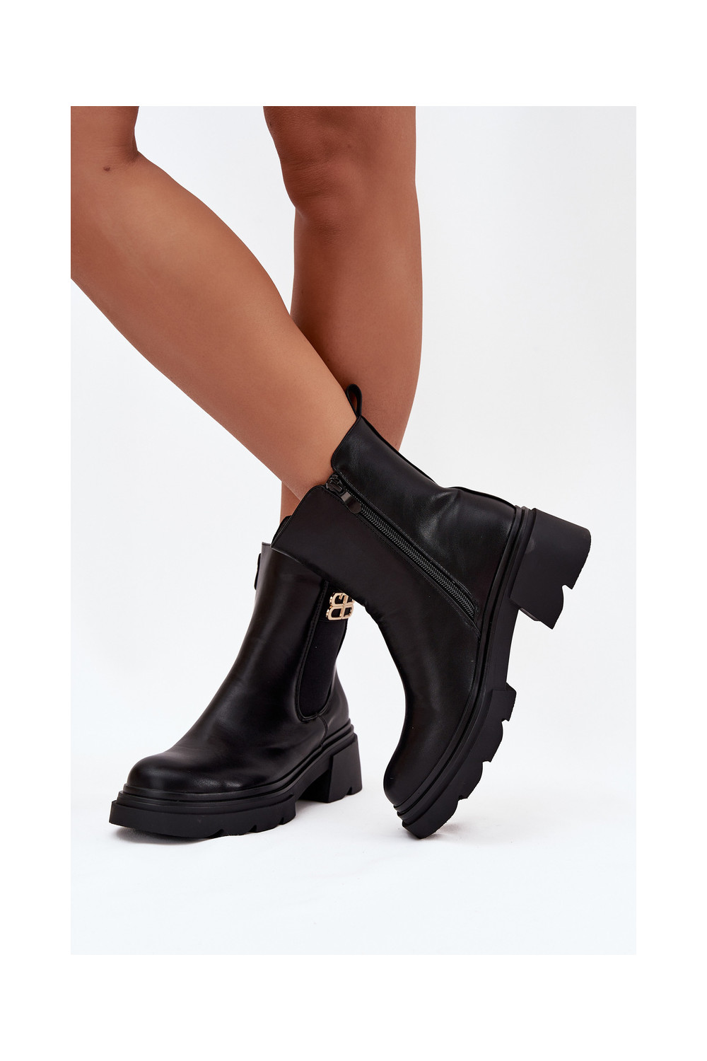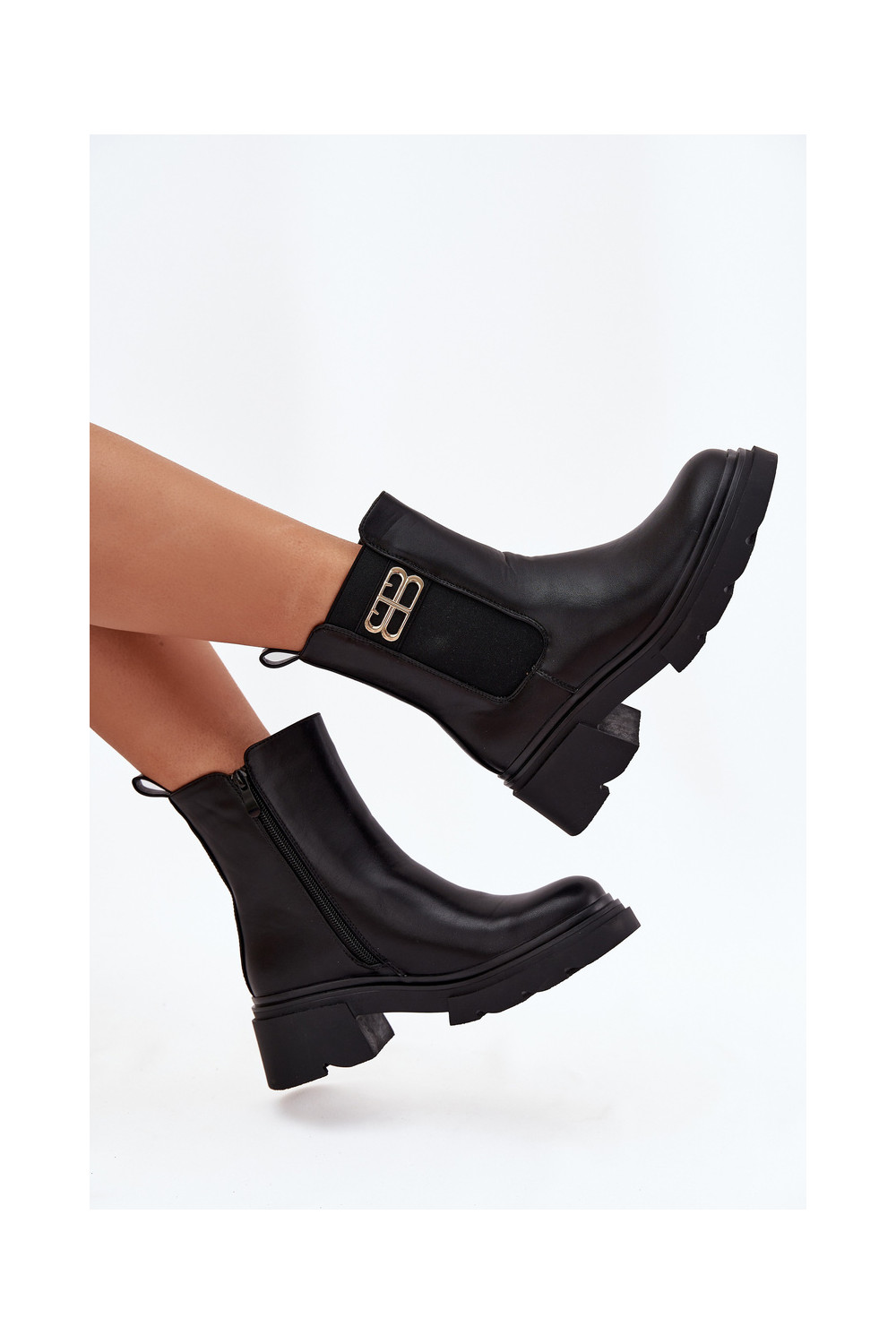 Juodos spalvos šilti moteriški aulinukai su auksinėmis detalėmis Serene