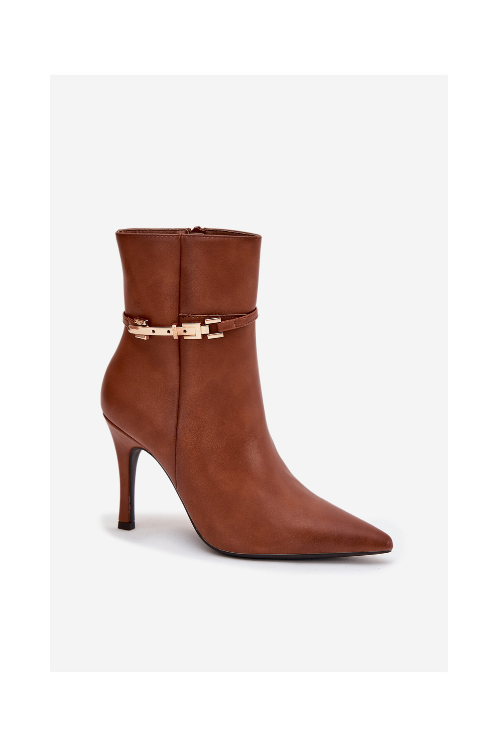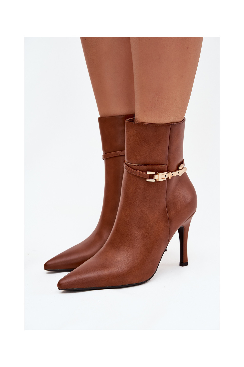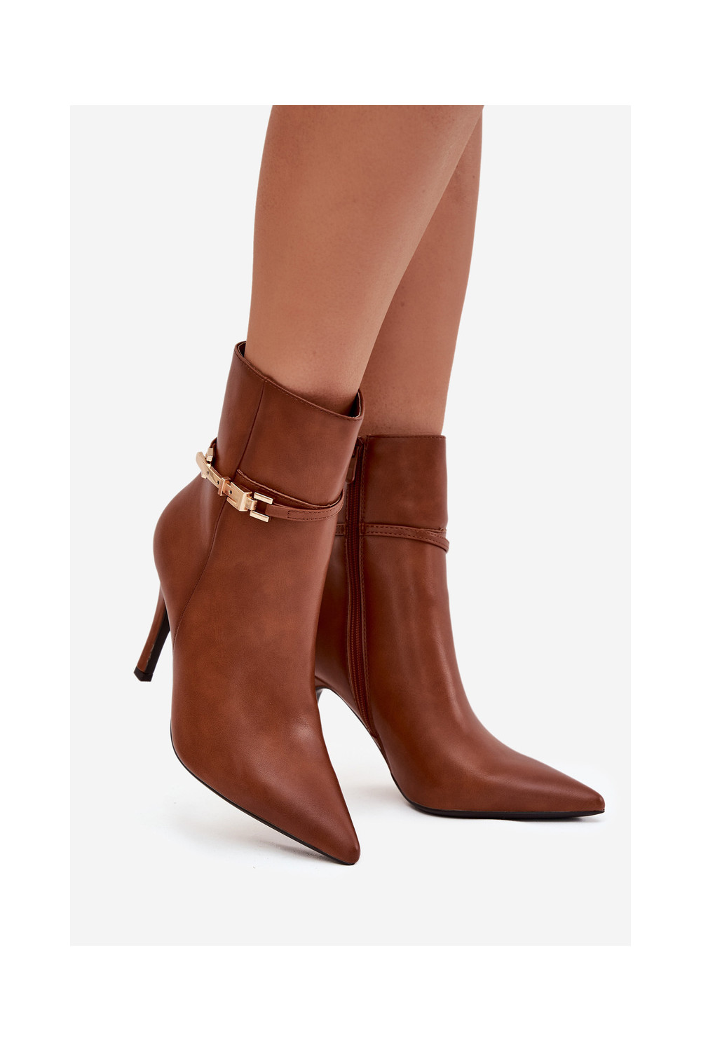 Rudos spalvos pašiltinti moteriški aulinukai su plonais kulniukais, dirželiais ir aukso spalvos elementais „Bellisse"