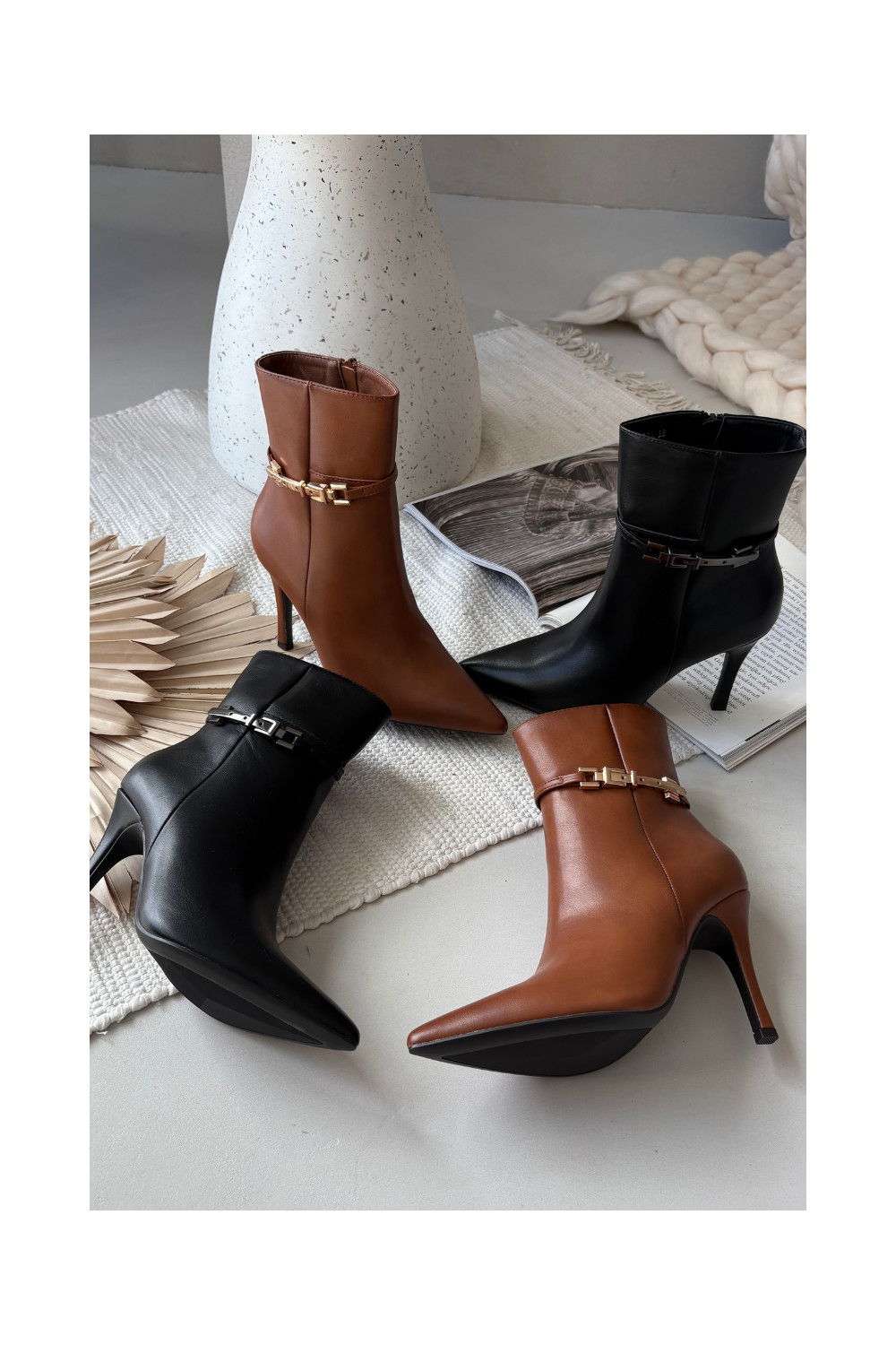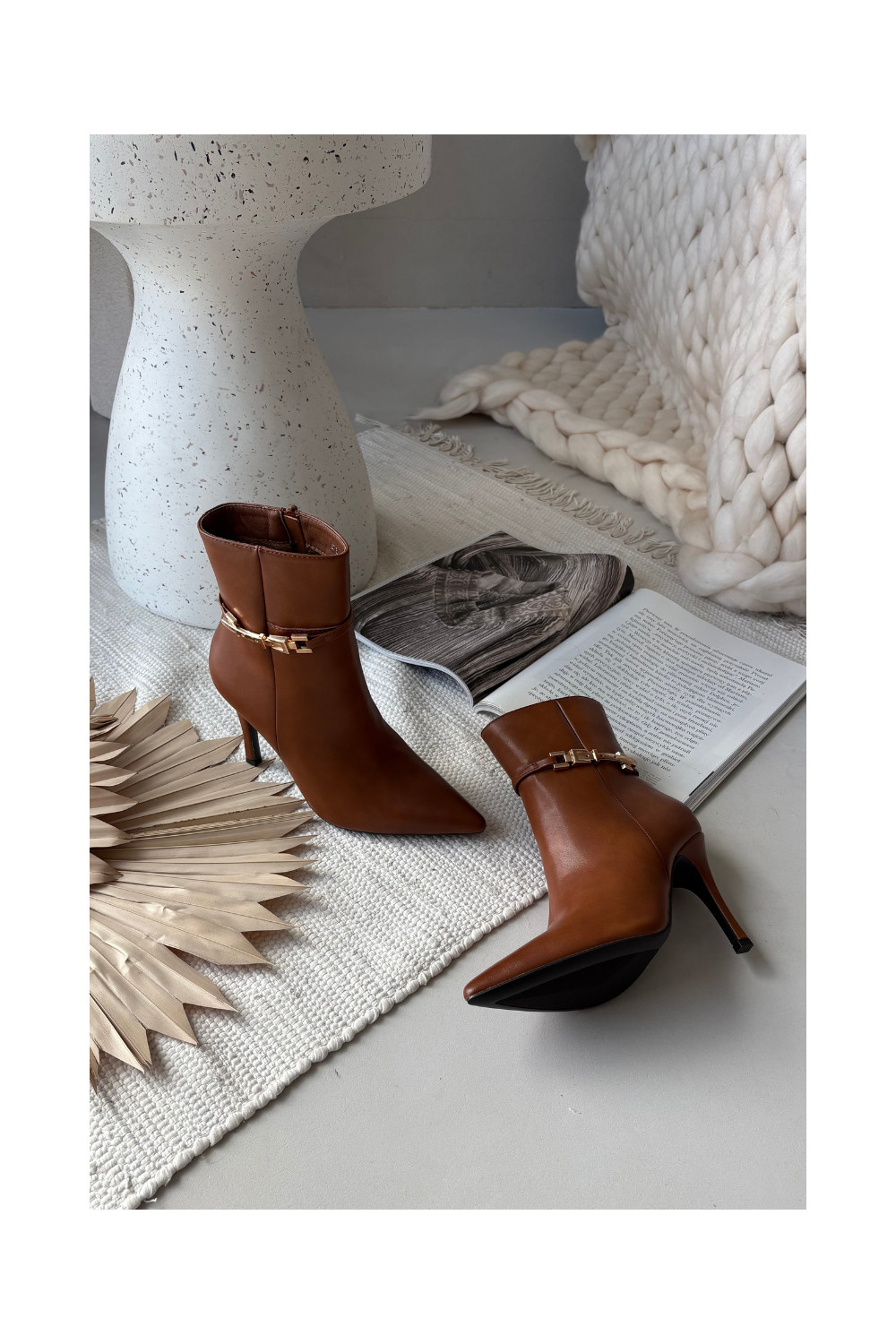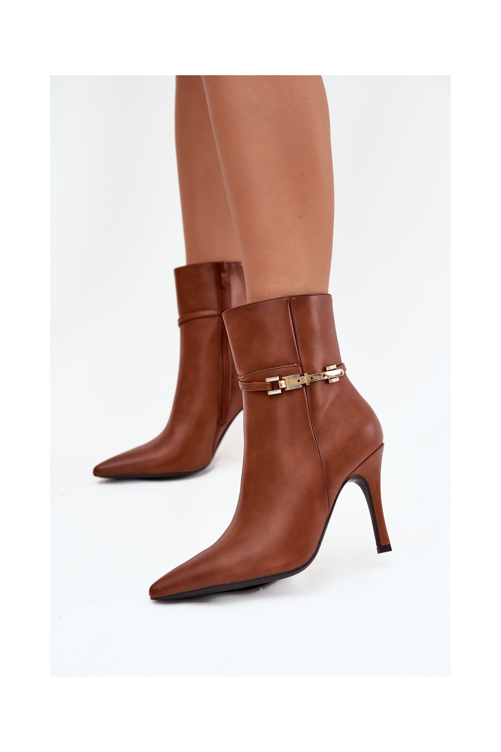 Rudos spalvos pašiltinti moteriški aulinukai su plonais kulniukais, dirželiais ir aukso spalvos elementais „Bellisse"