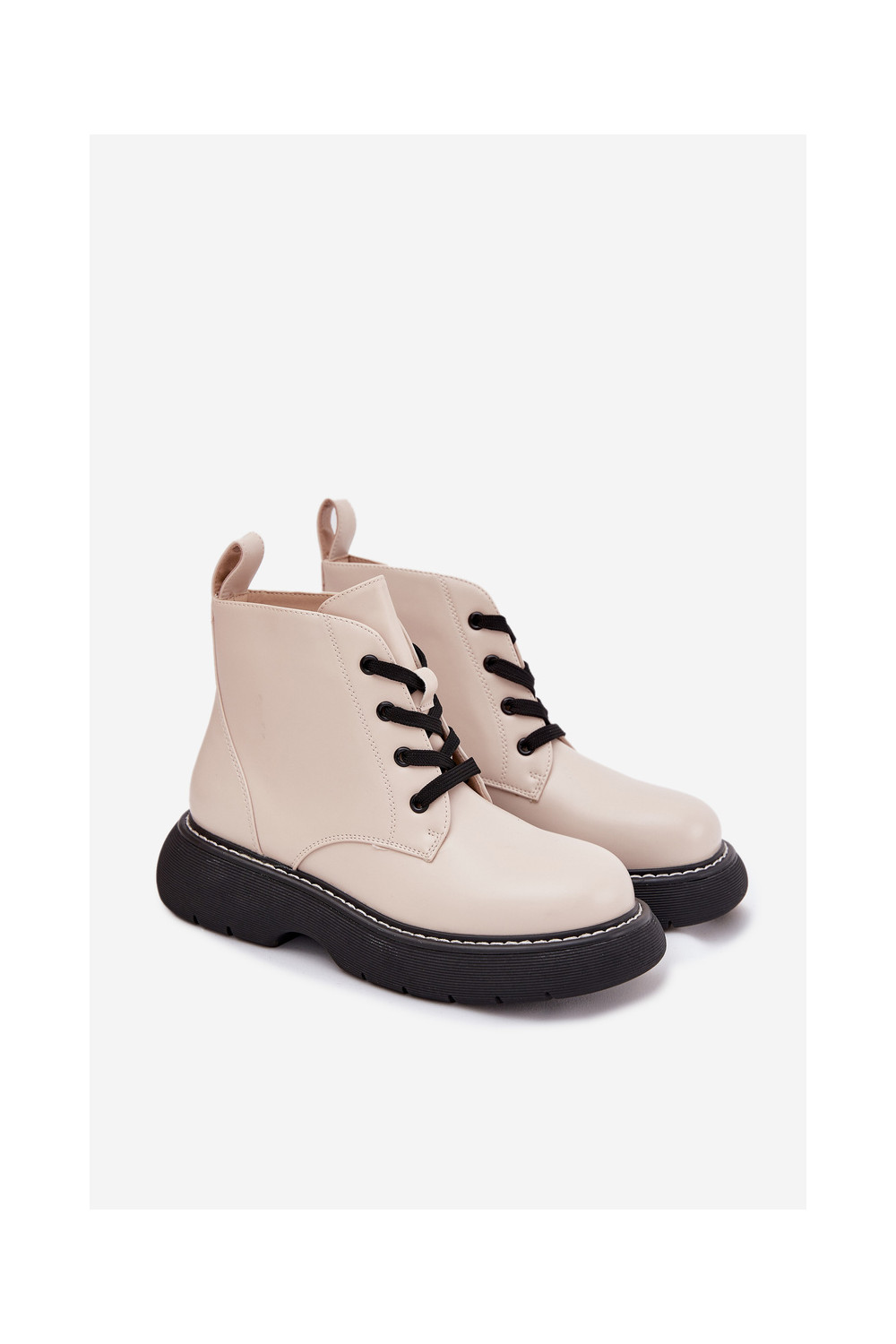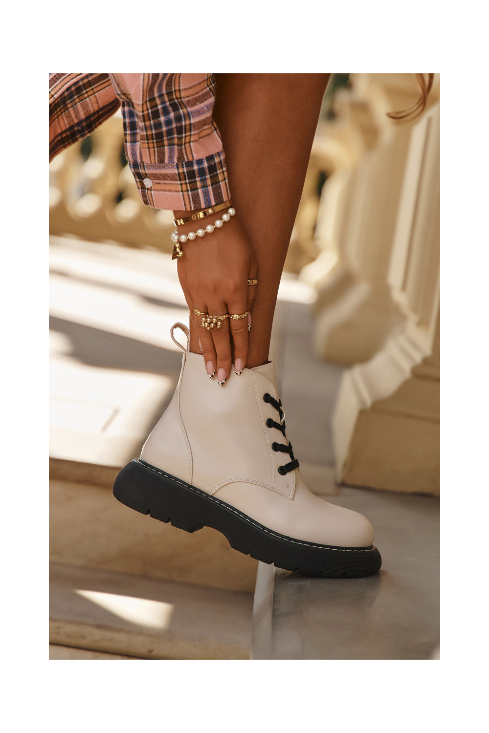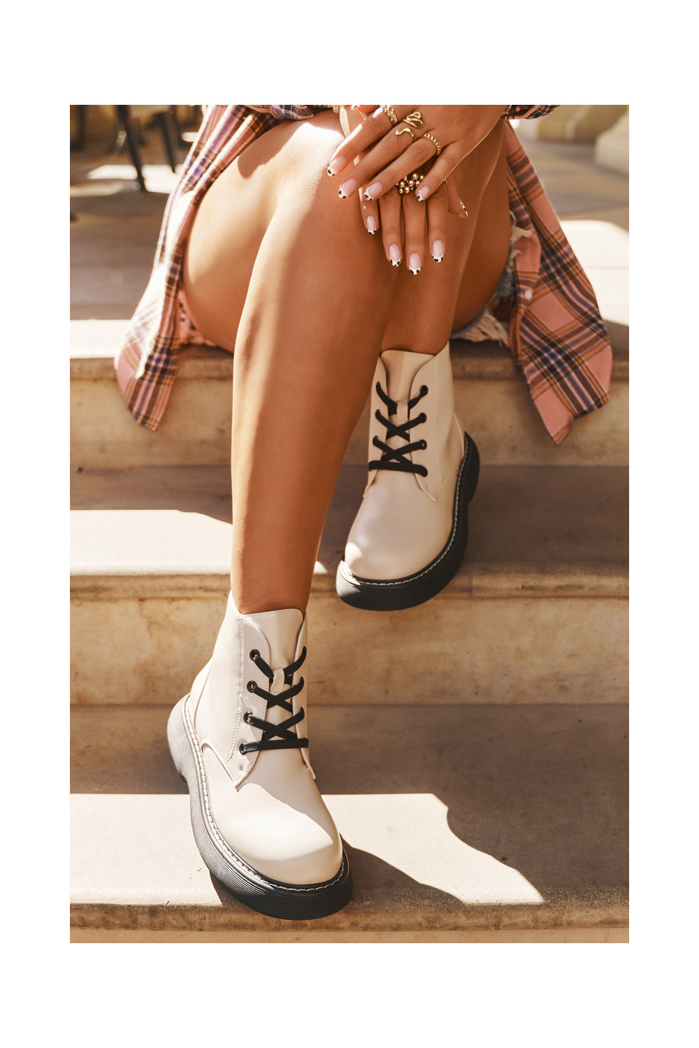 Pašiltinti moteriški aulinukai su platforma ir raišteliais, dramblio kaulo spalvos, Harmine