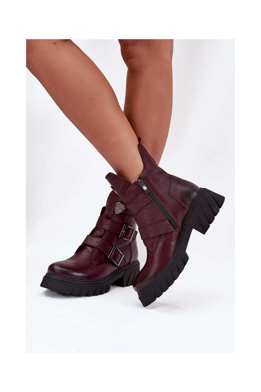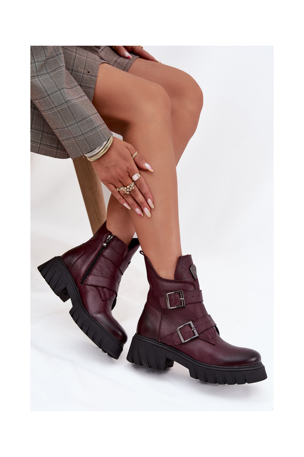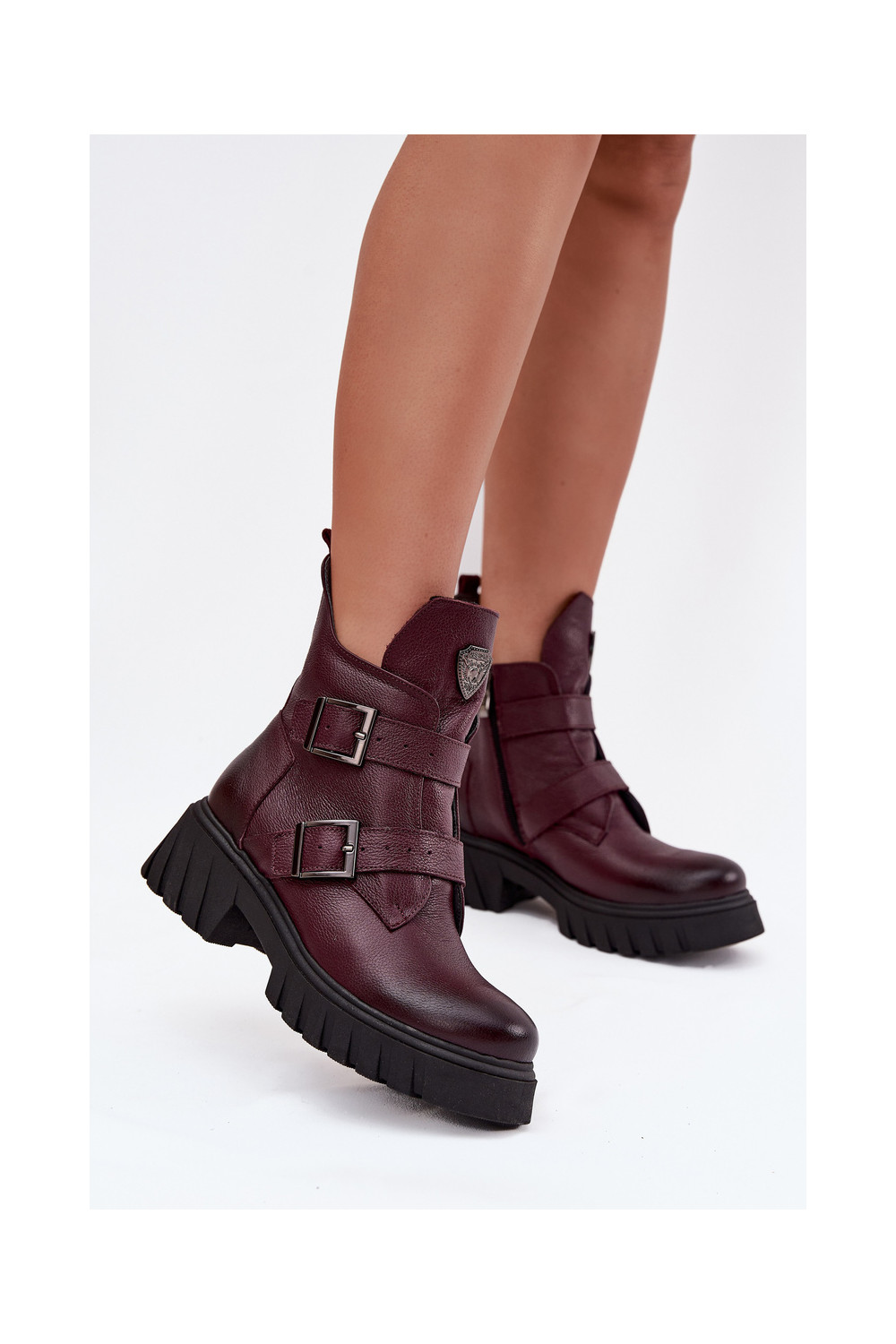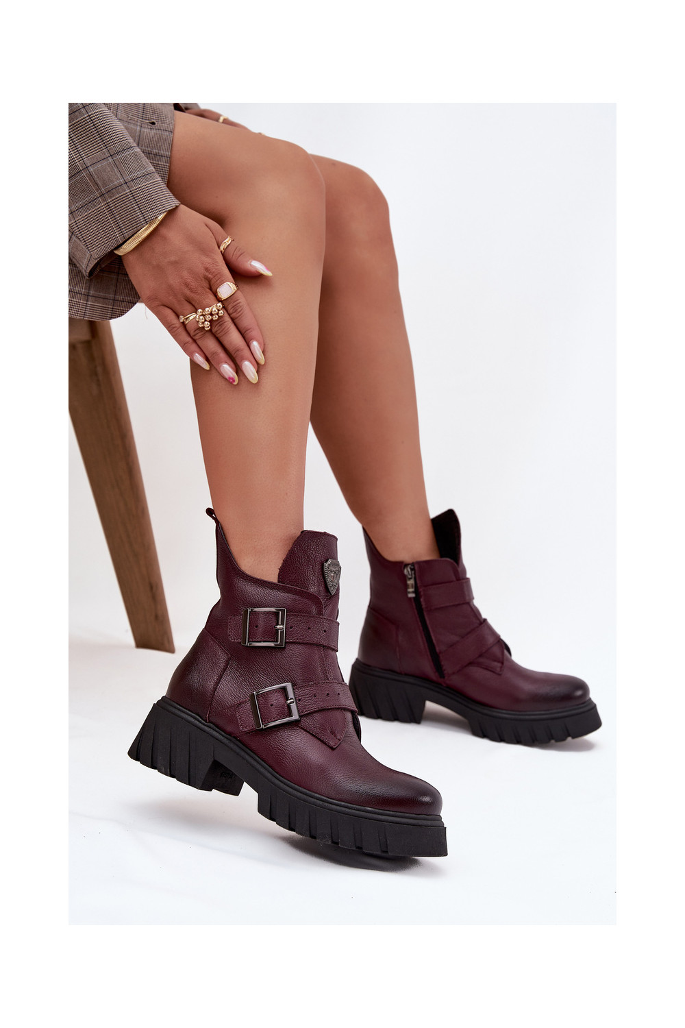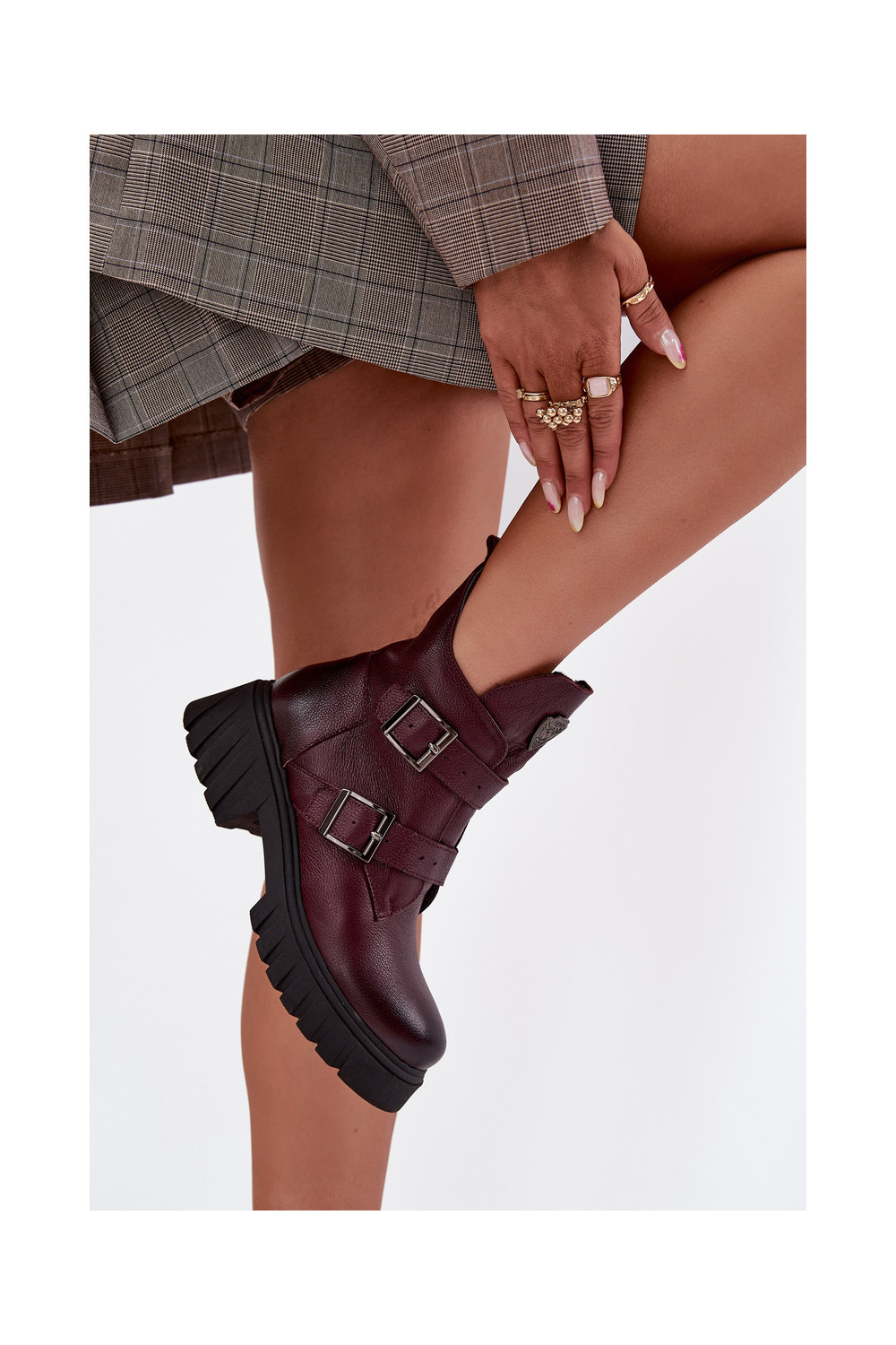 Odiniai šilti moteriški aulinukai su sagtimis ir dekoratyvinėmis detalėmis Zazoo 60482 bordo spalvos