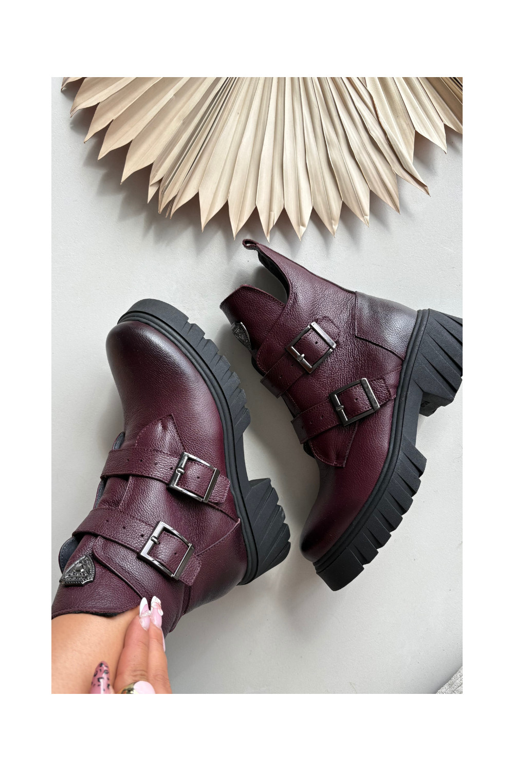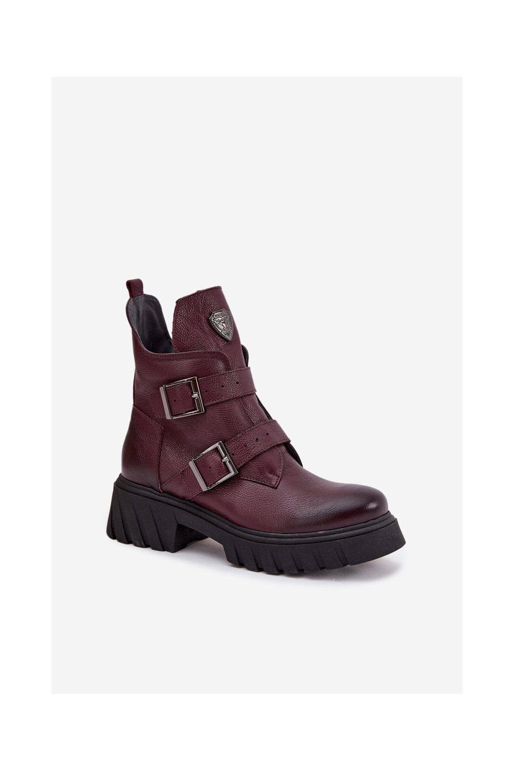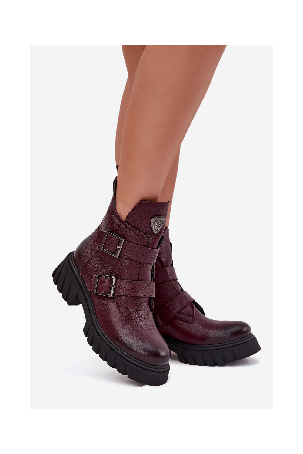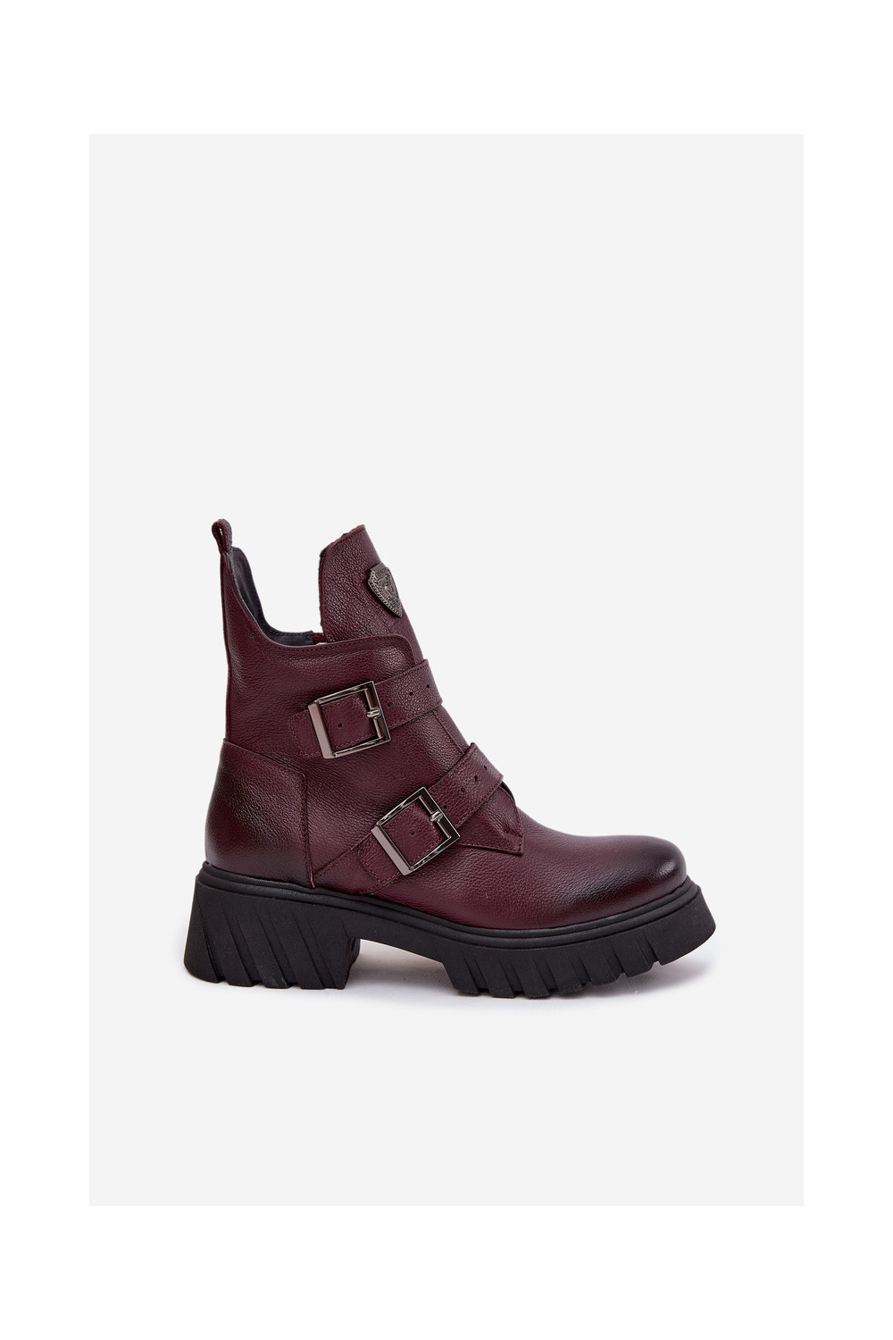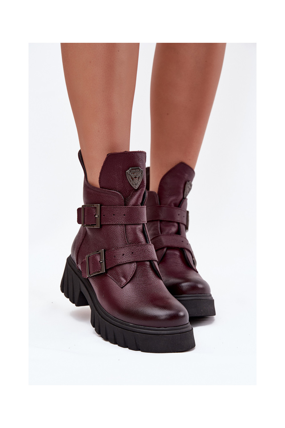 Odiniai šilti moteriški aulinukai su sagtimis ir dekoratyvinėmis detalėmis Zazoo 60482 bordo spalvos