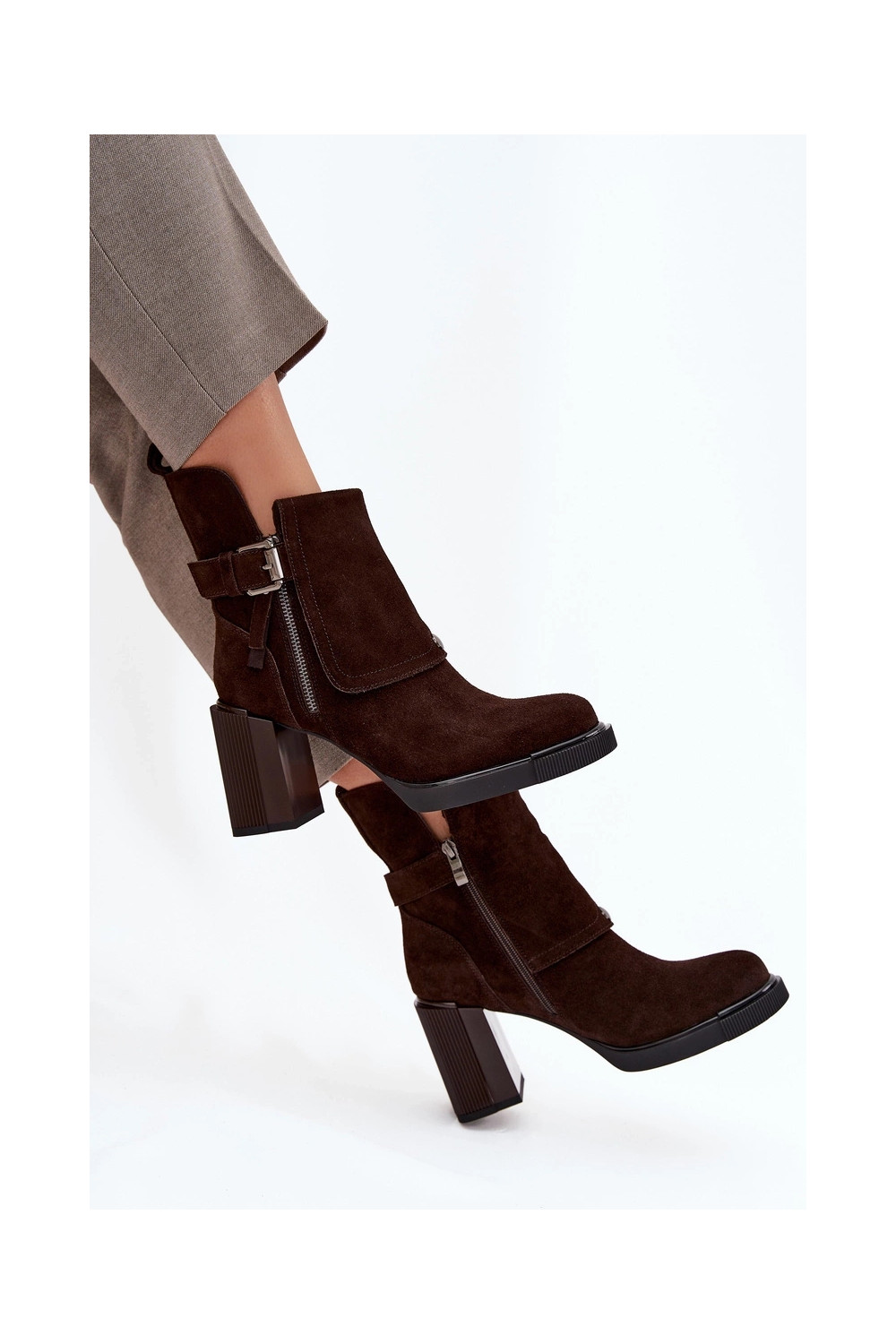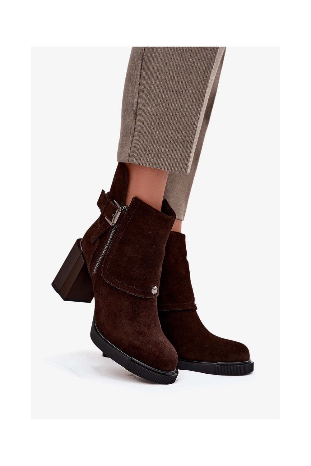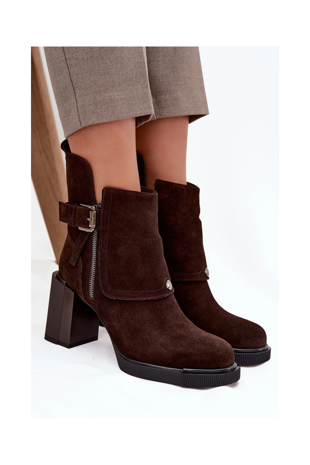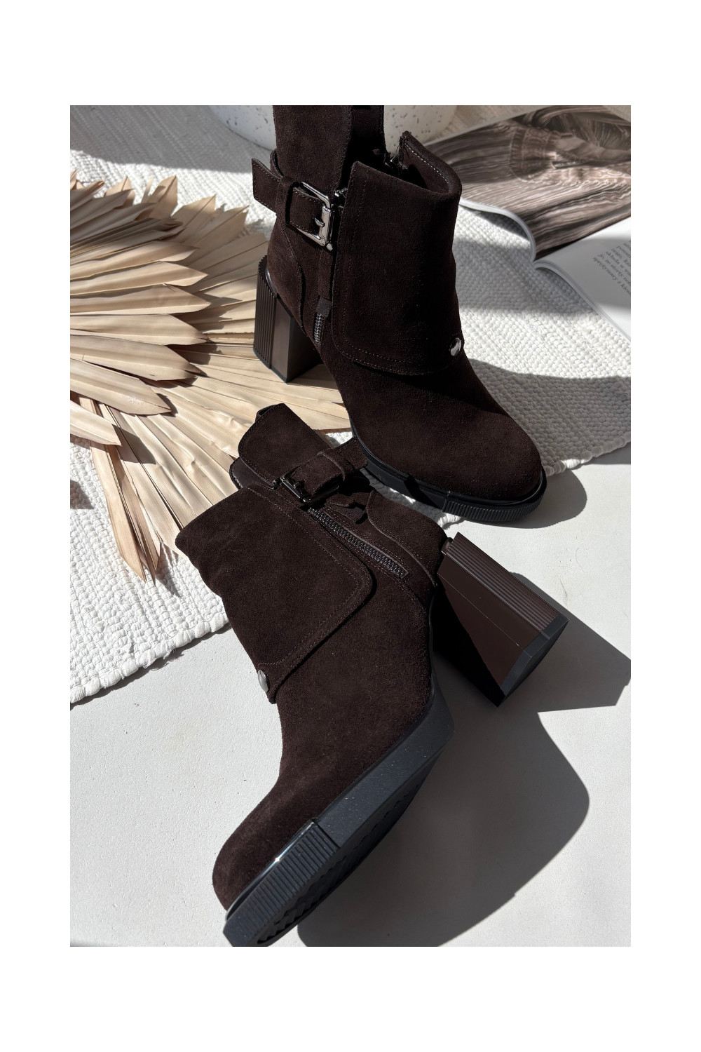 Aulinukai iš natūralios zomšos su kulniukais ir sagtimis, Vinceza 91152, šokoladinės spalvos