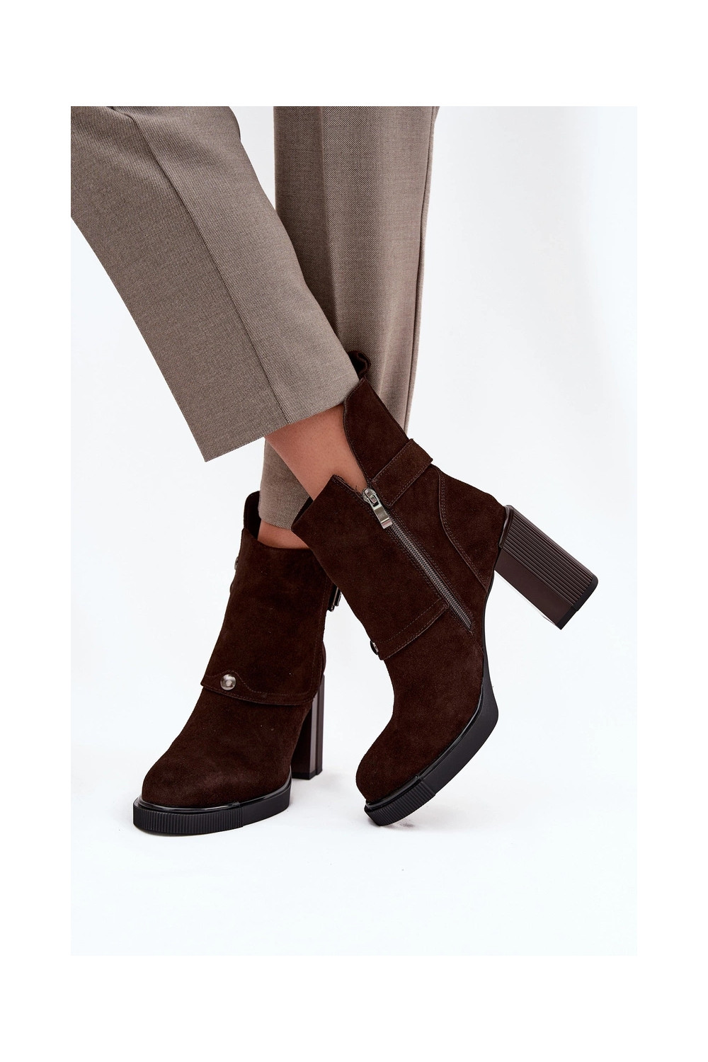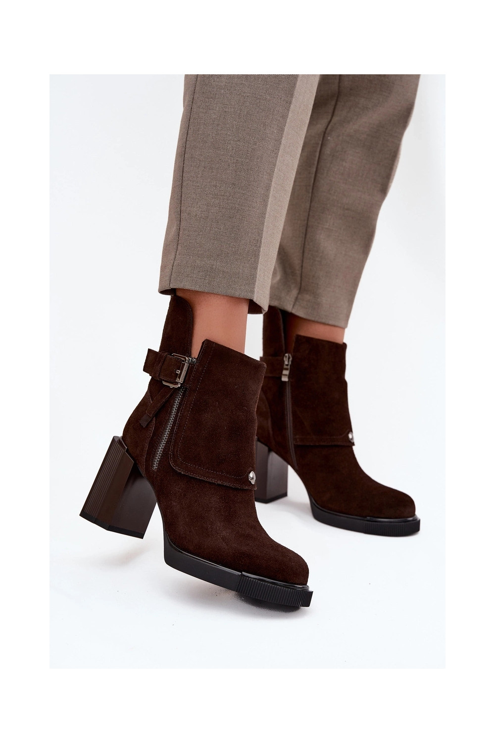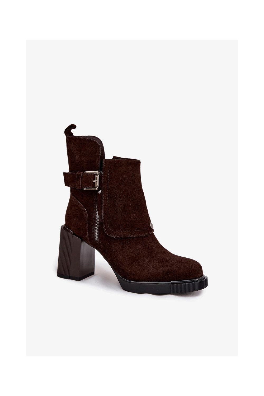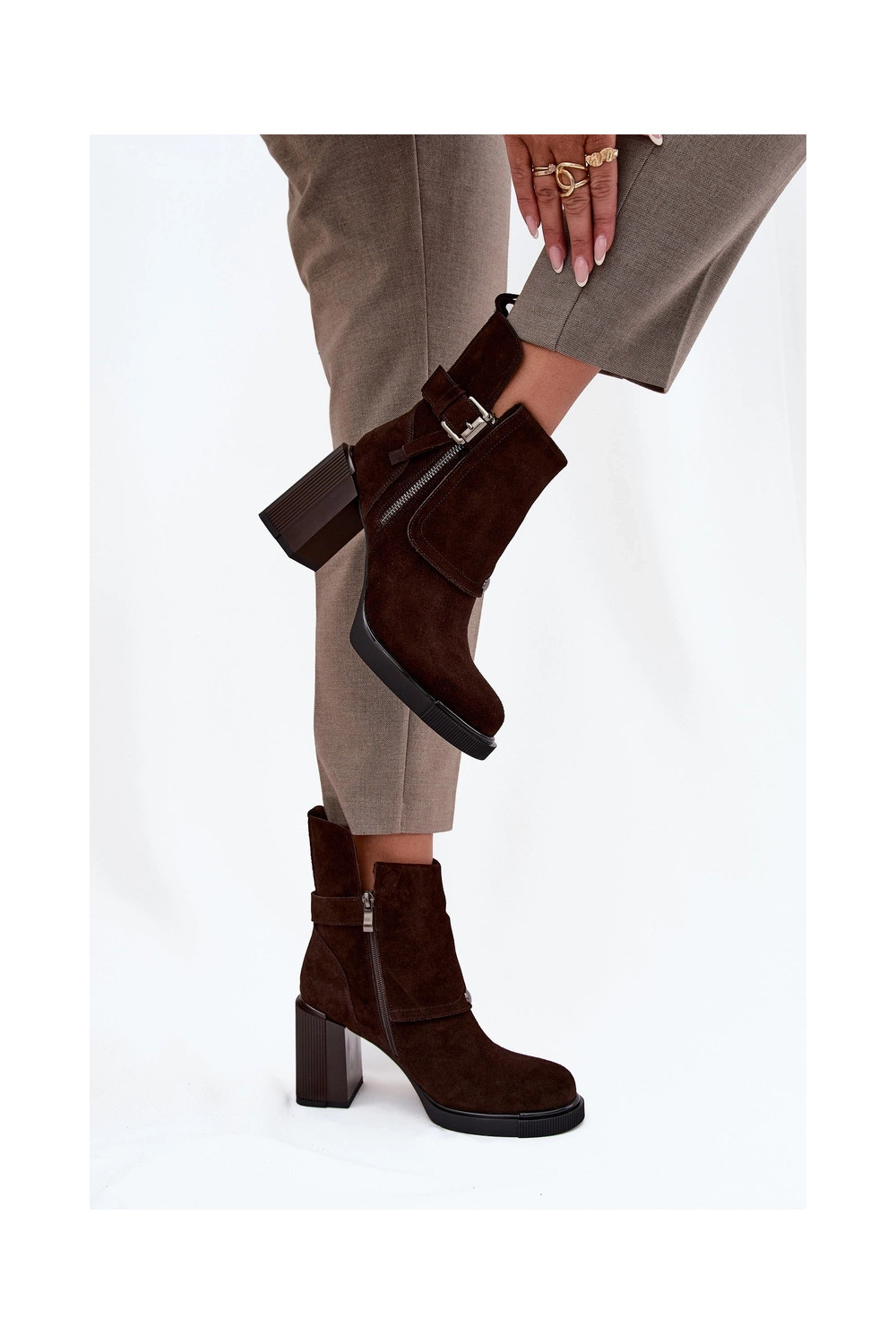 Aulinukai iš natūralios zomšos su kulniukais ir sagtimis, Vinceza 91152, šokoladinės spalvos