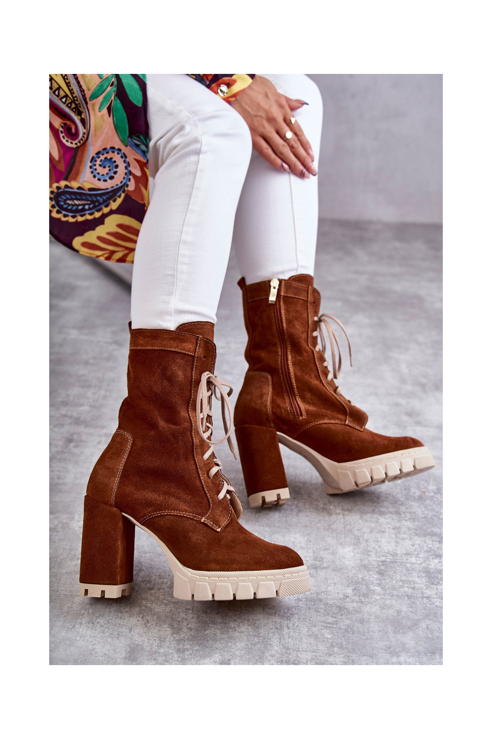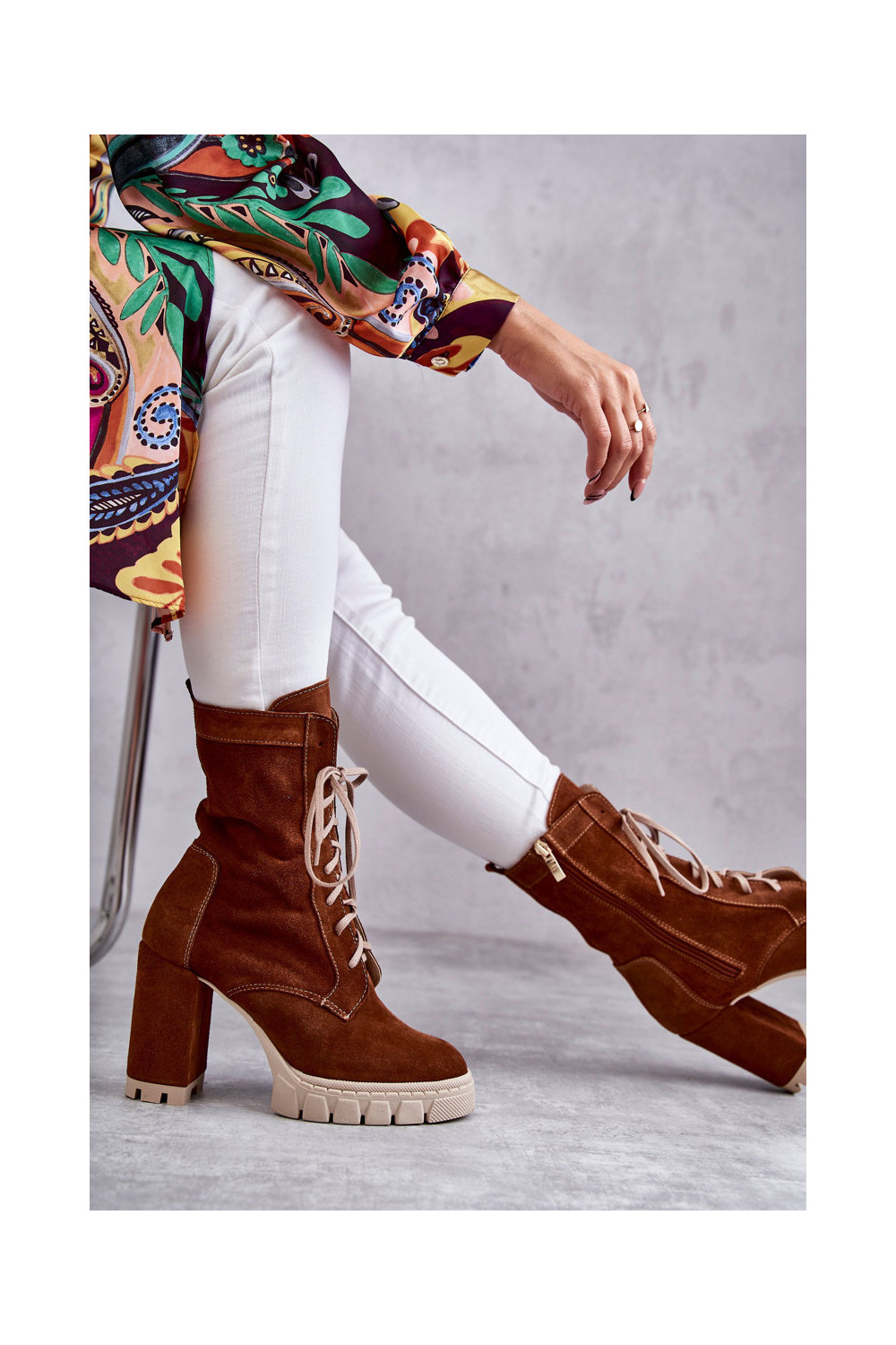 Moteriški rudos spalvos zomšiniai batai su platforma „Edna"