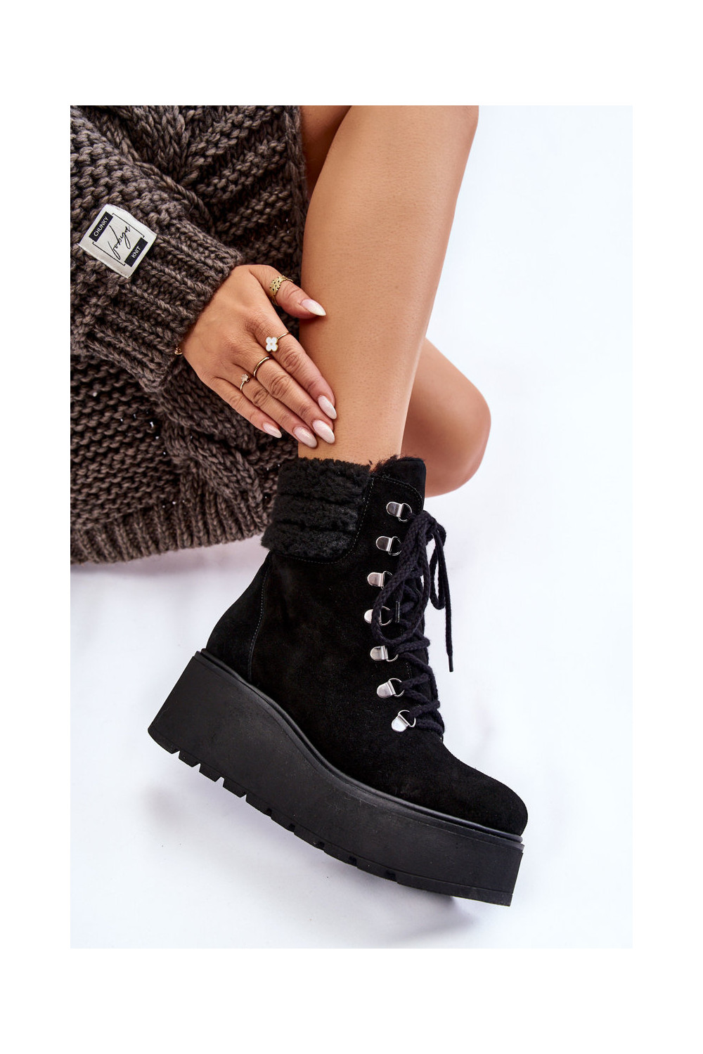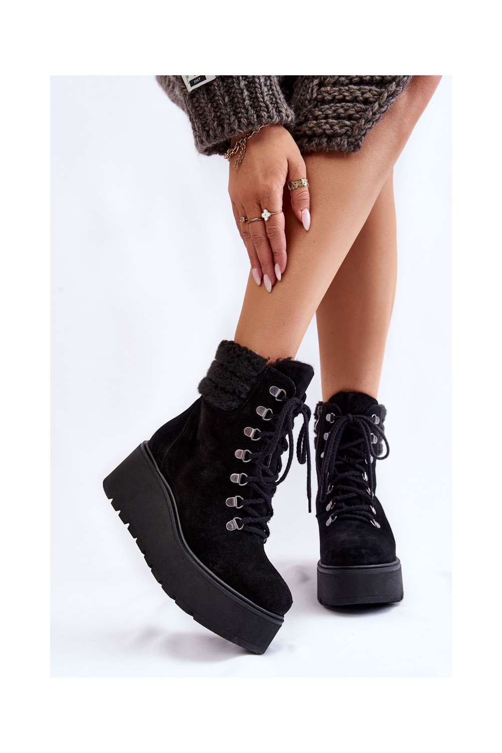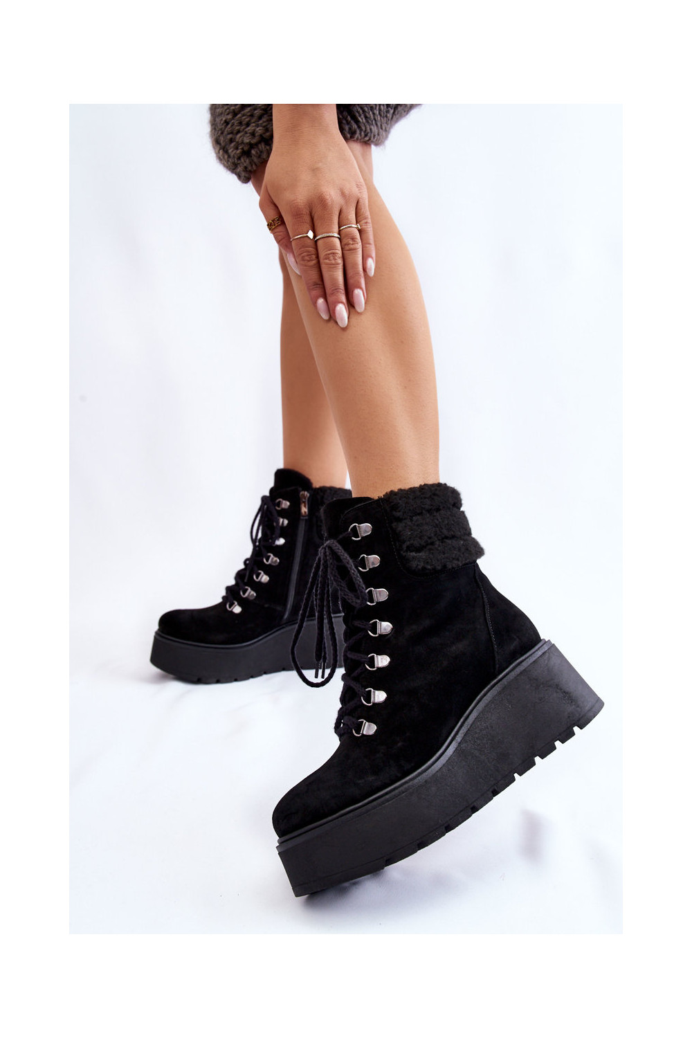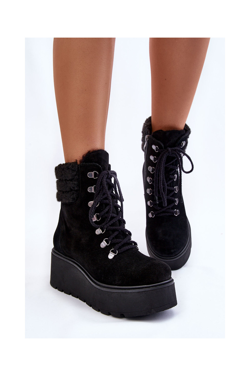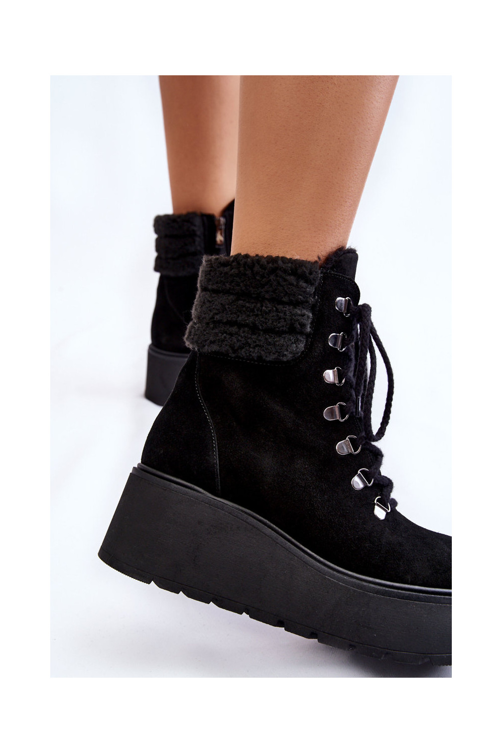 Juodos spalvos moteriški zomšiniai batai ant platformos „Lemar Meniko"