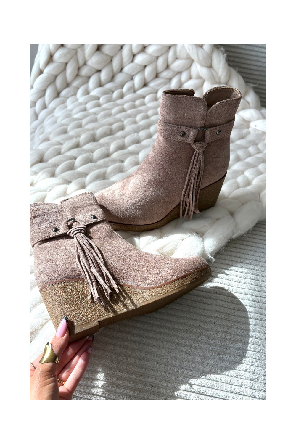 Šilti moteriški platforminiai aulinukai „Olivarae" su kutais, smėlio spalvos