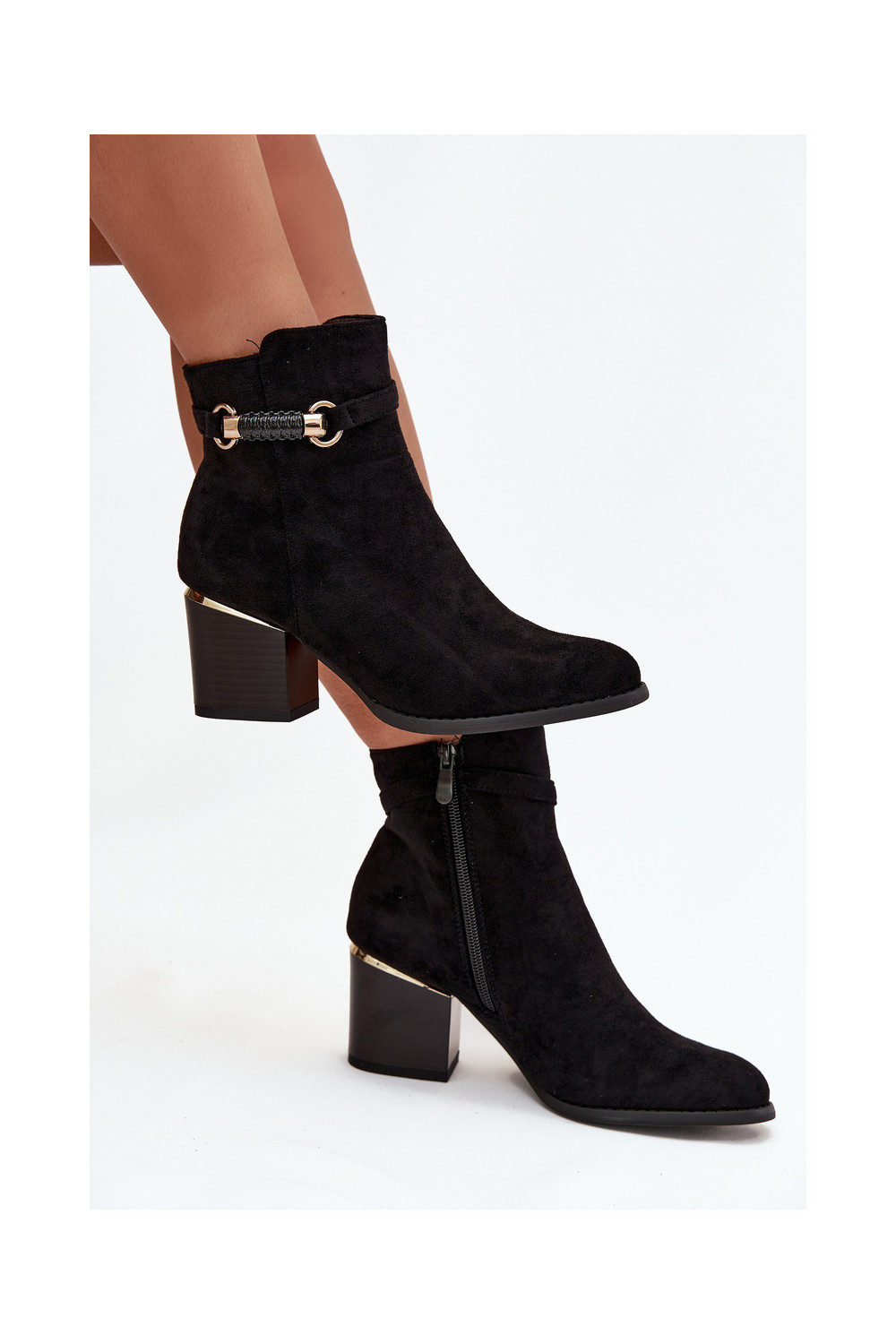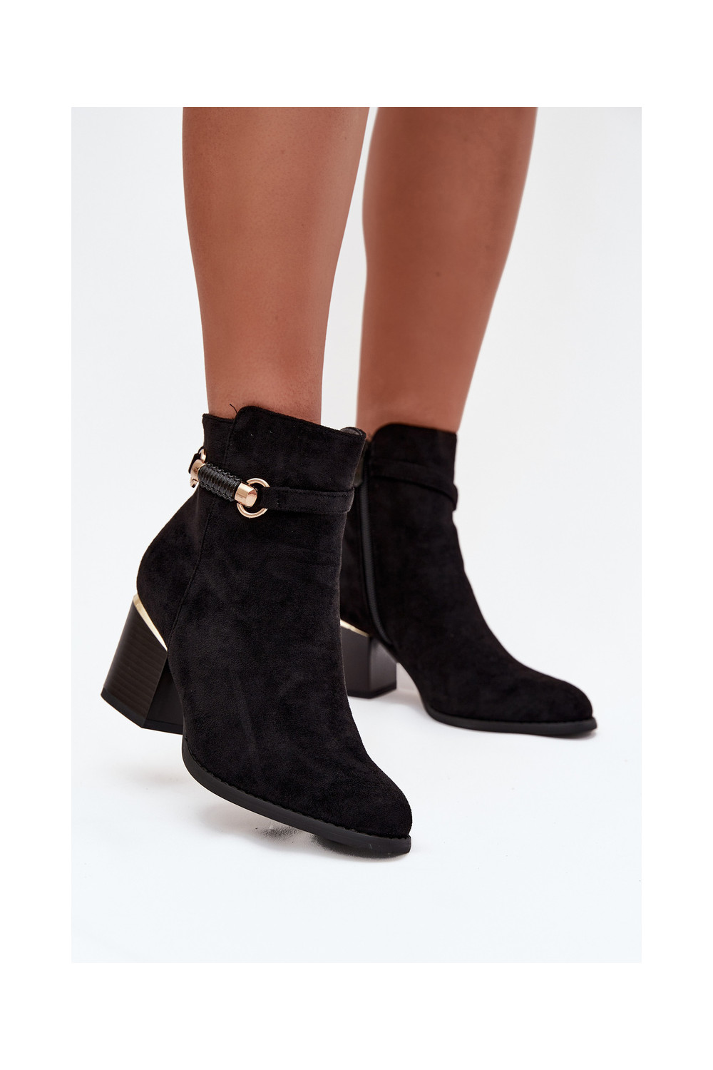 Pašiltinti moteriški juodos spalvos aulinukai su kulniukais ir dekoruotais kulnais Galissa