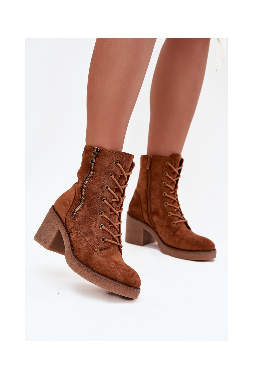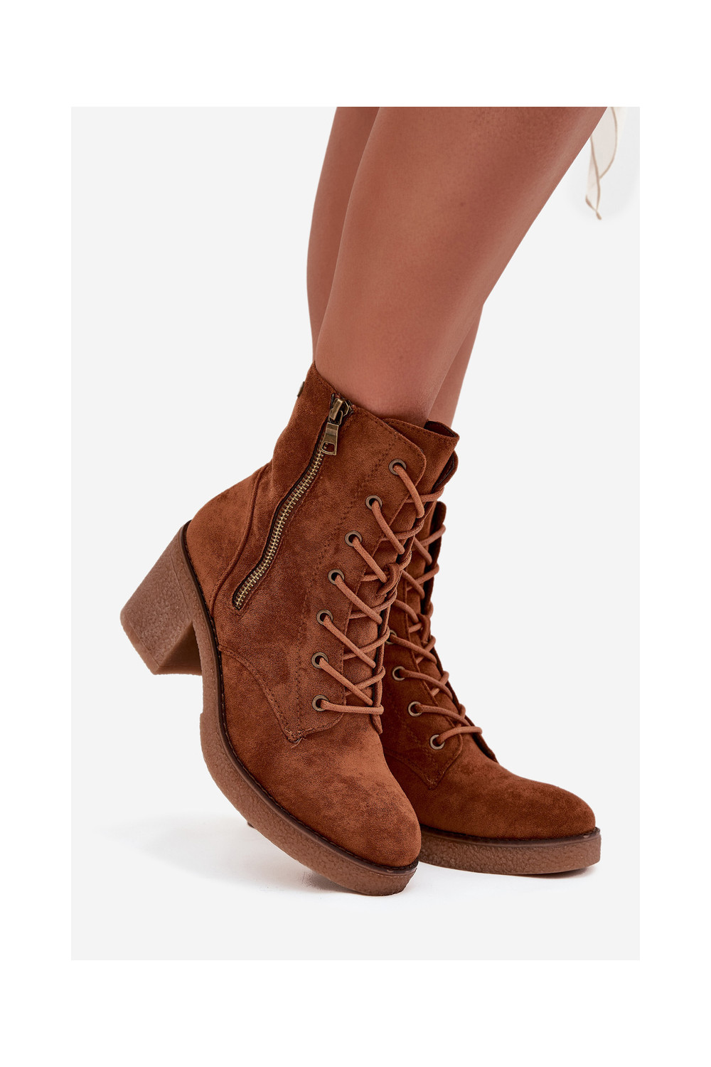 Pašiltinti moteriški rudos spalvos aulinukai su raišteliu ir užtrauktukais Paressa