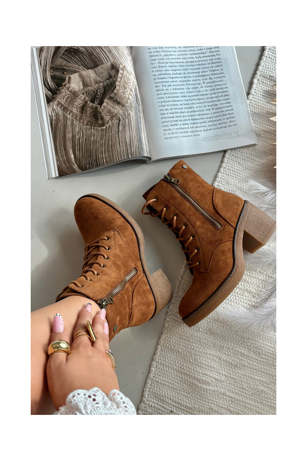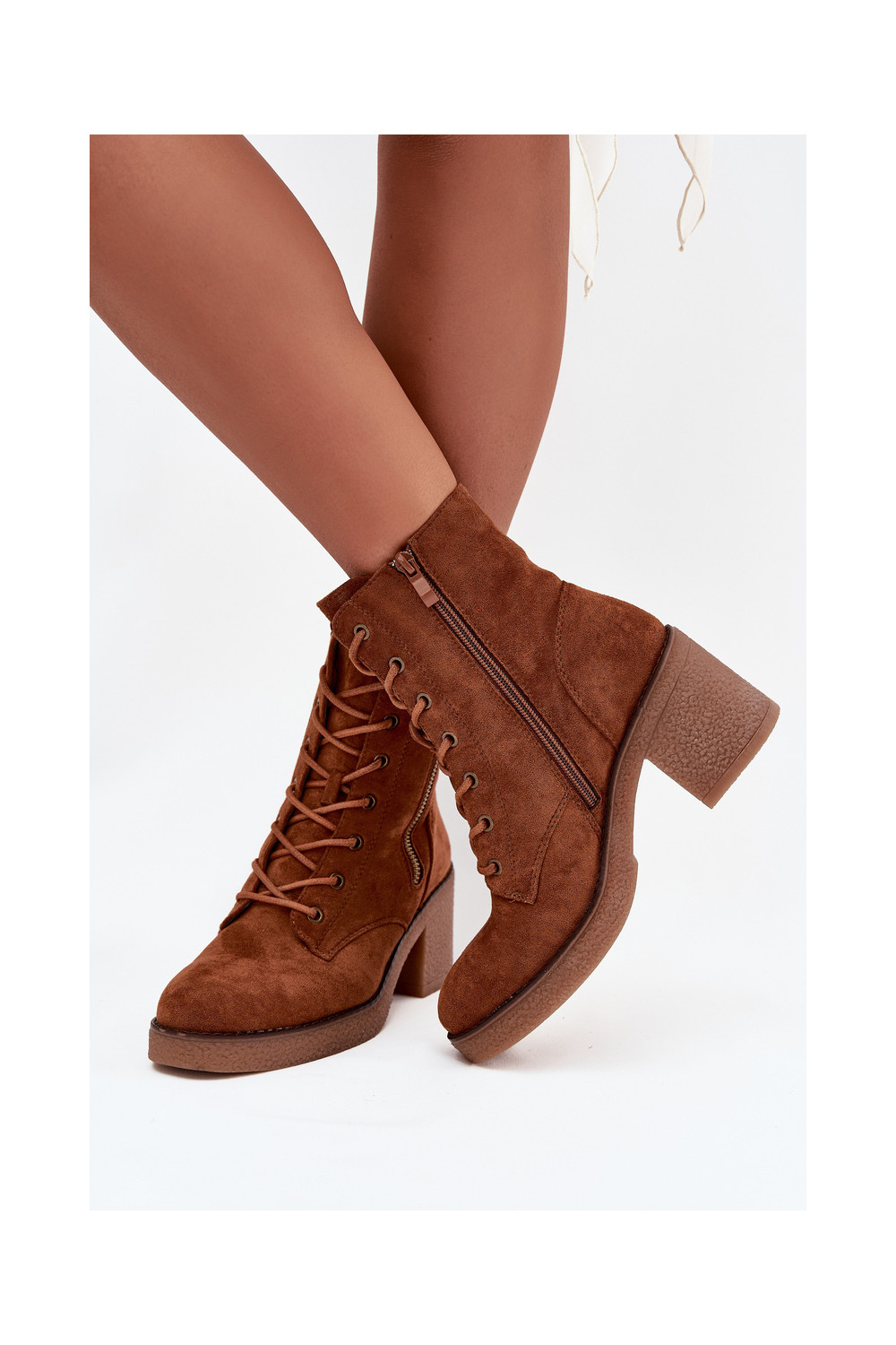 Pašiltinti moteriški rudos spalvos aulinukai su raišteliu ir užtrauktukais Paressa