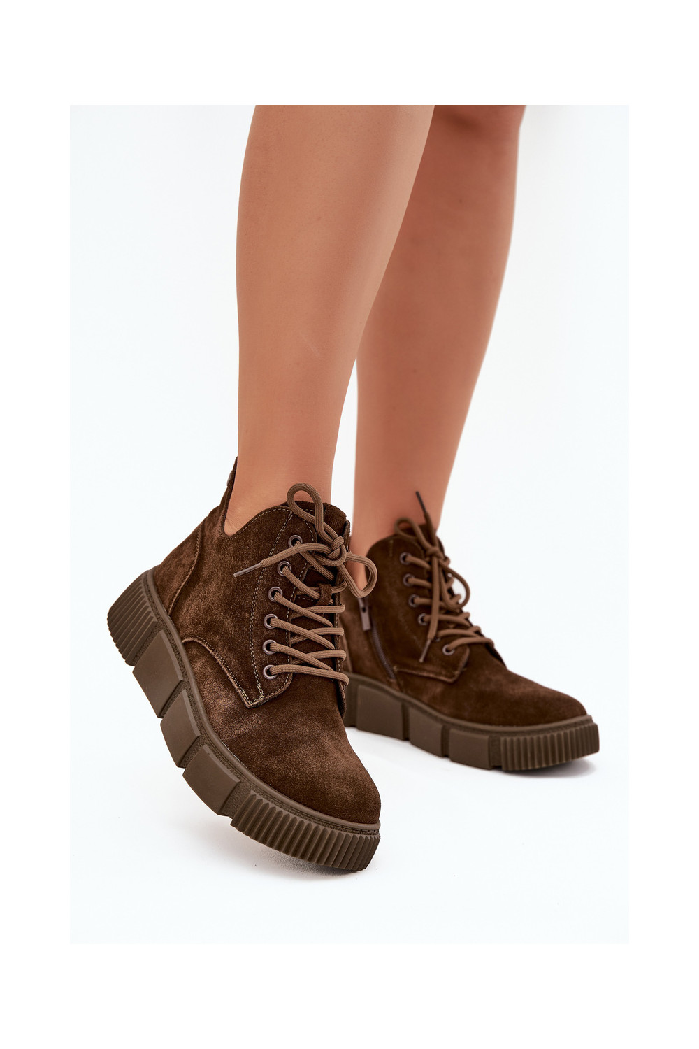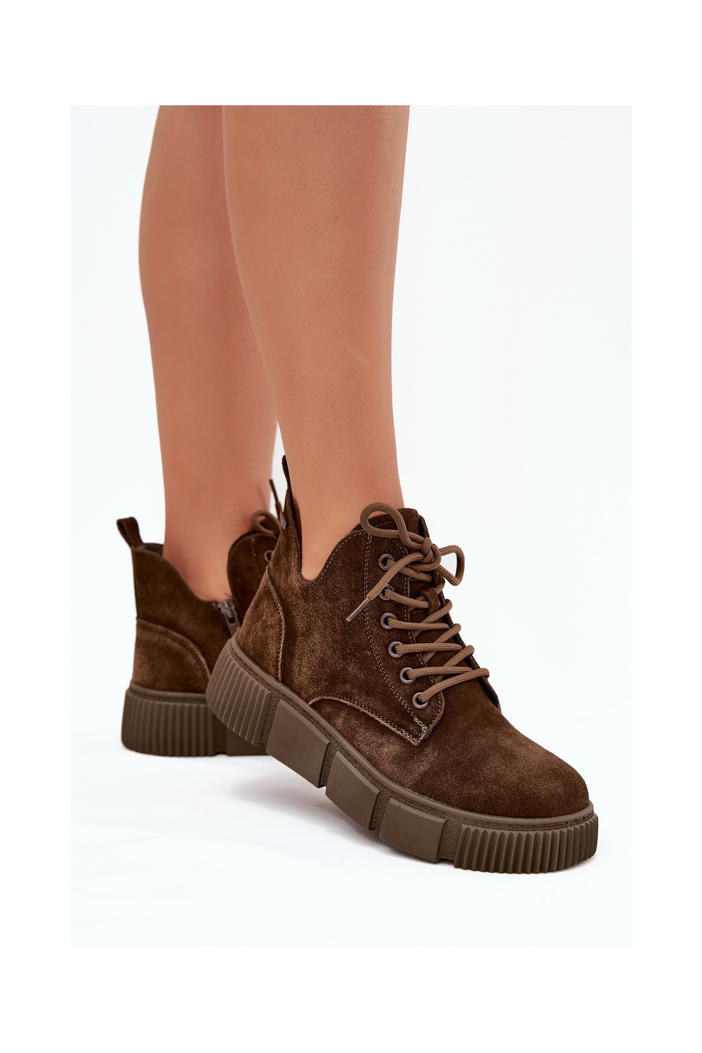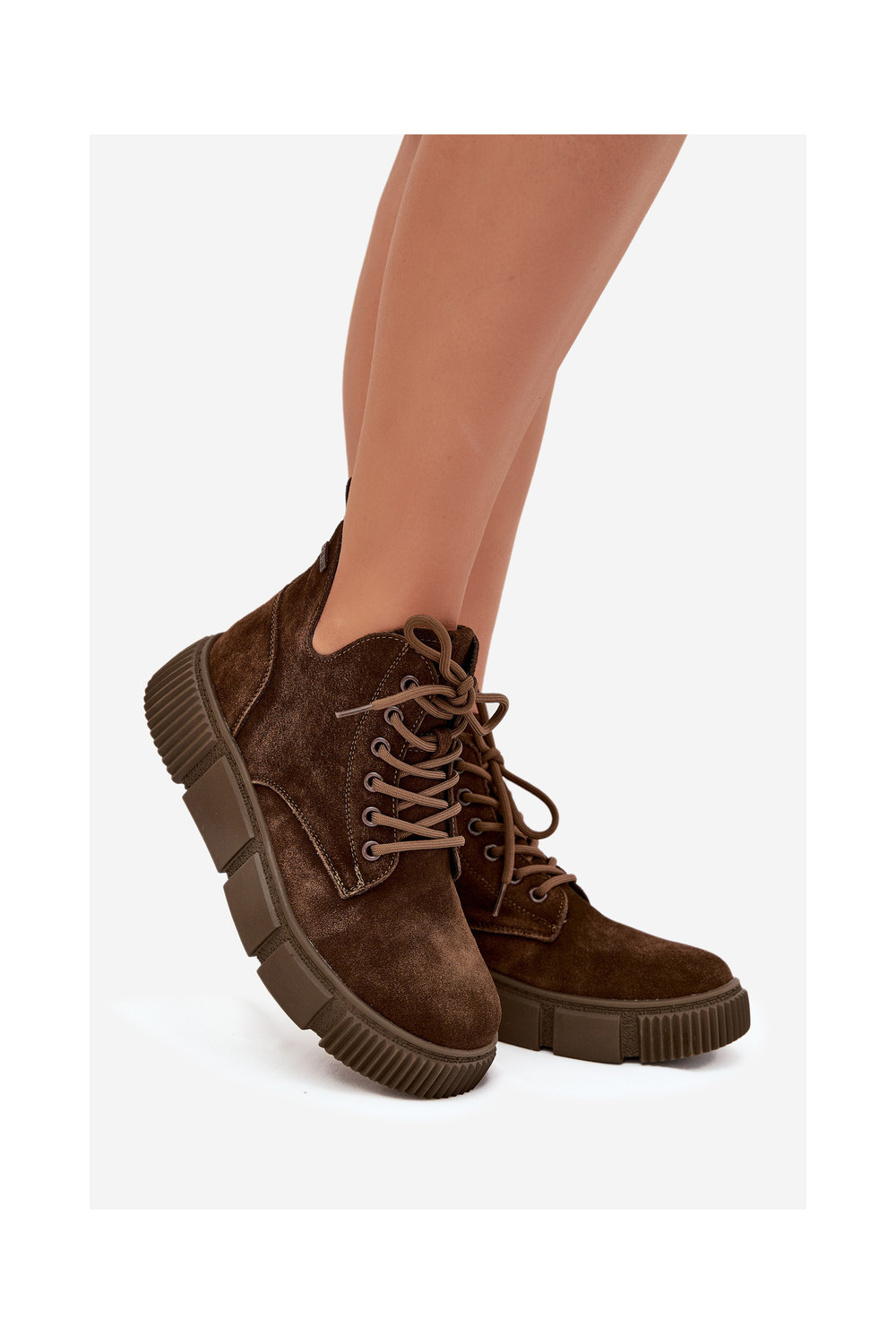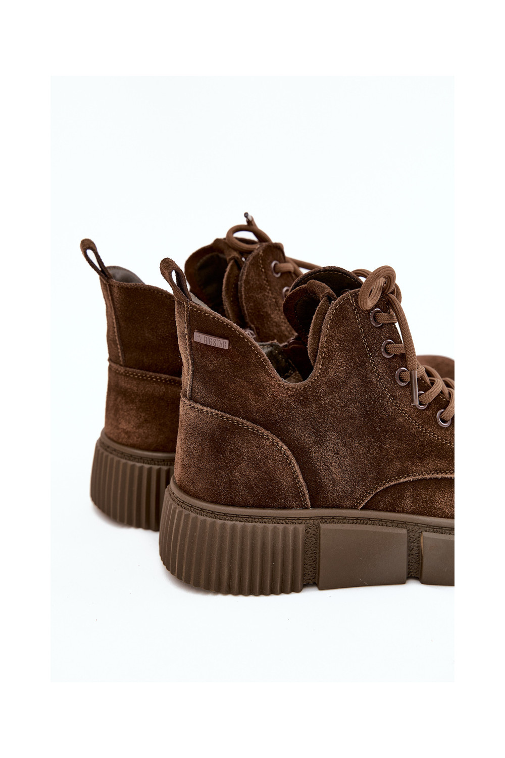 iš zomšos žemakulniai batai moterims su platforma Big Star SS274595 rudos spalvos