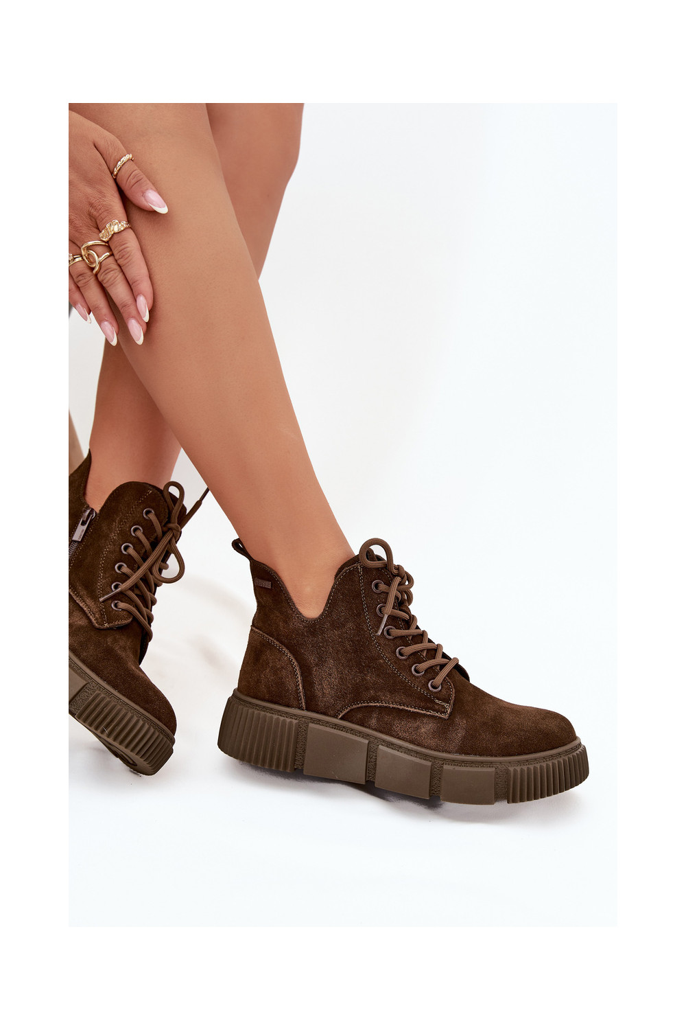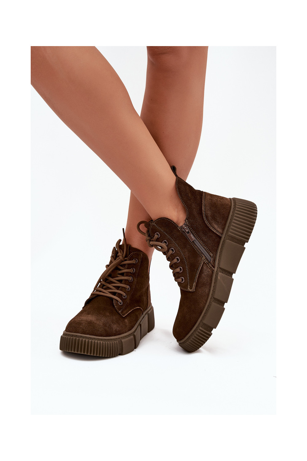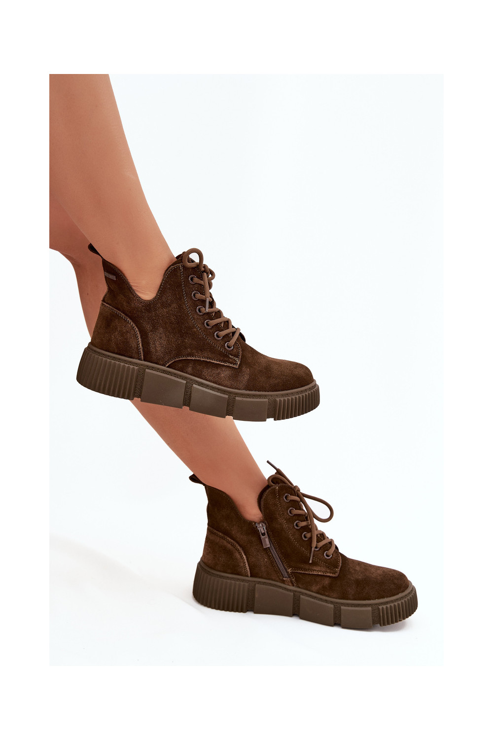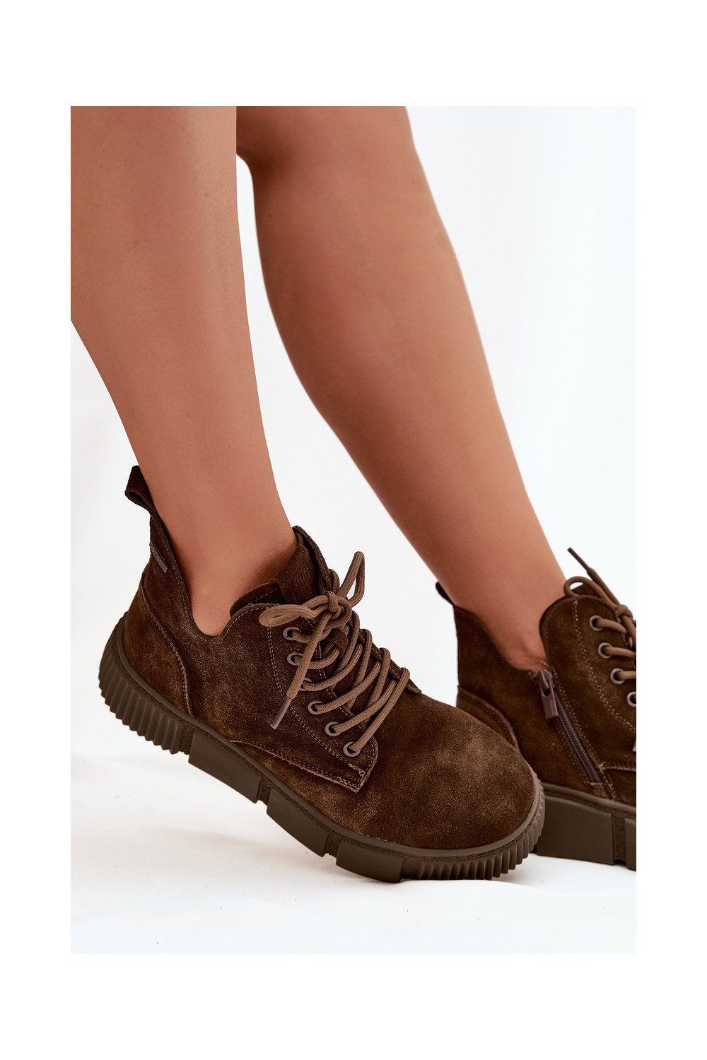 iš zomšos žemakulniai batai moterims su platforma Big Star SS274595 rudos spalvos