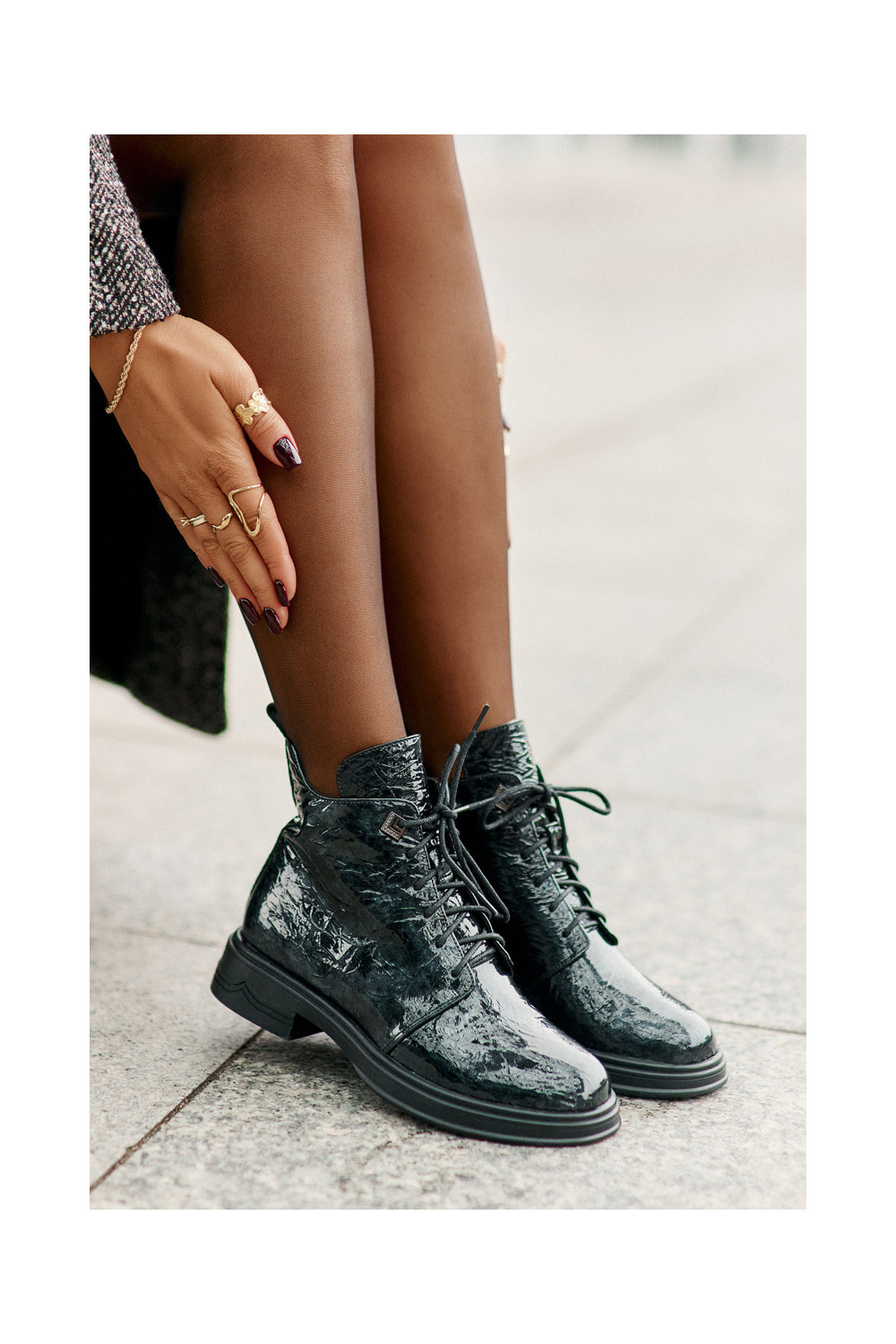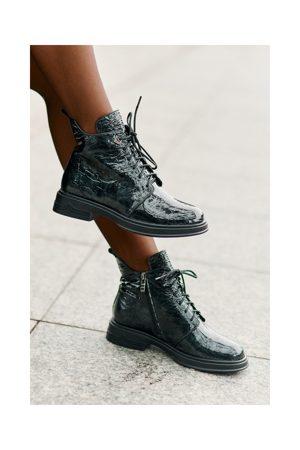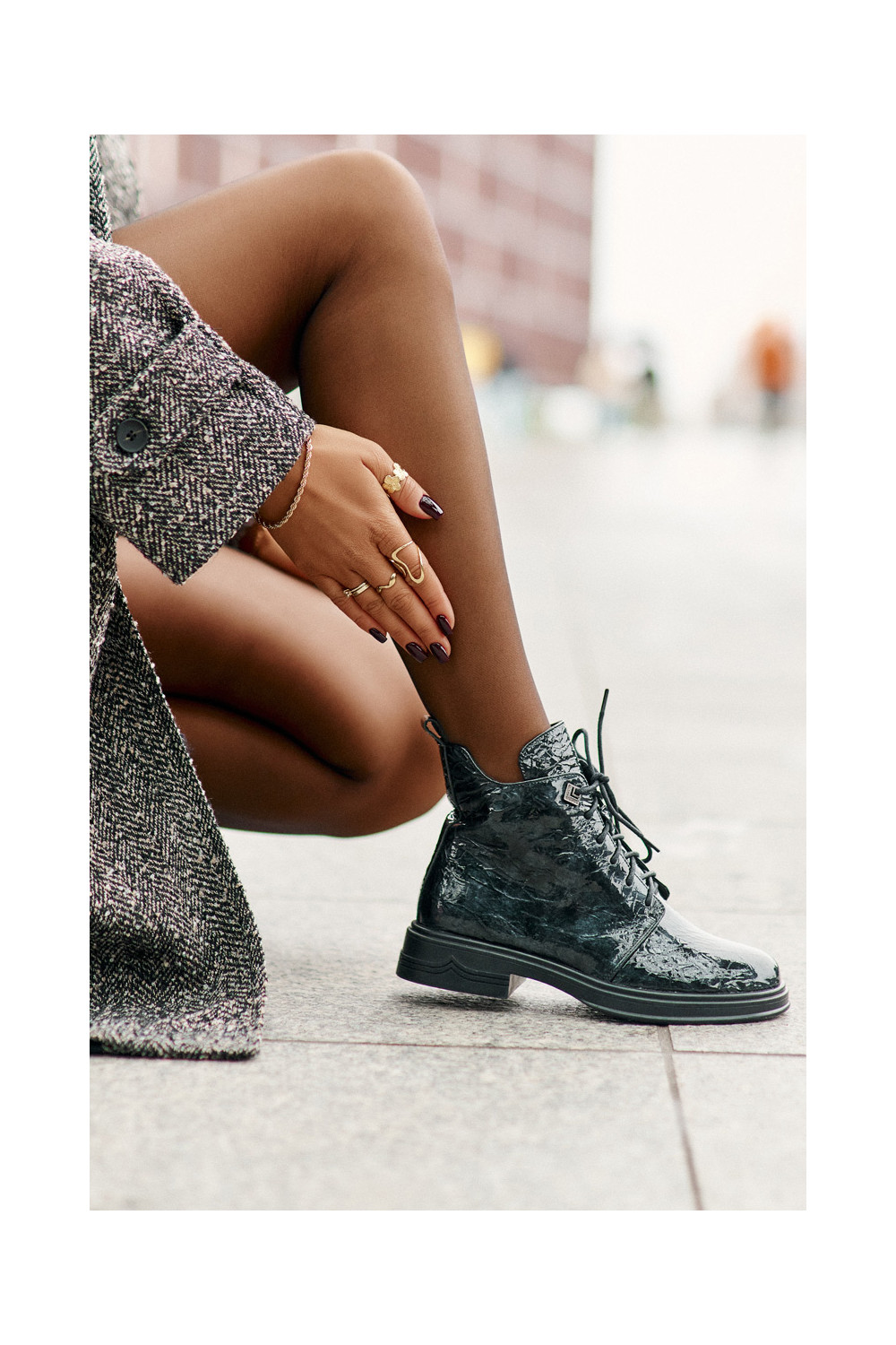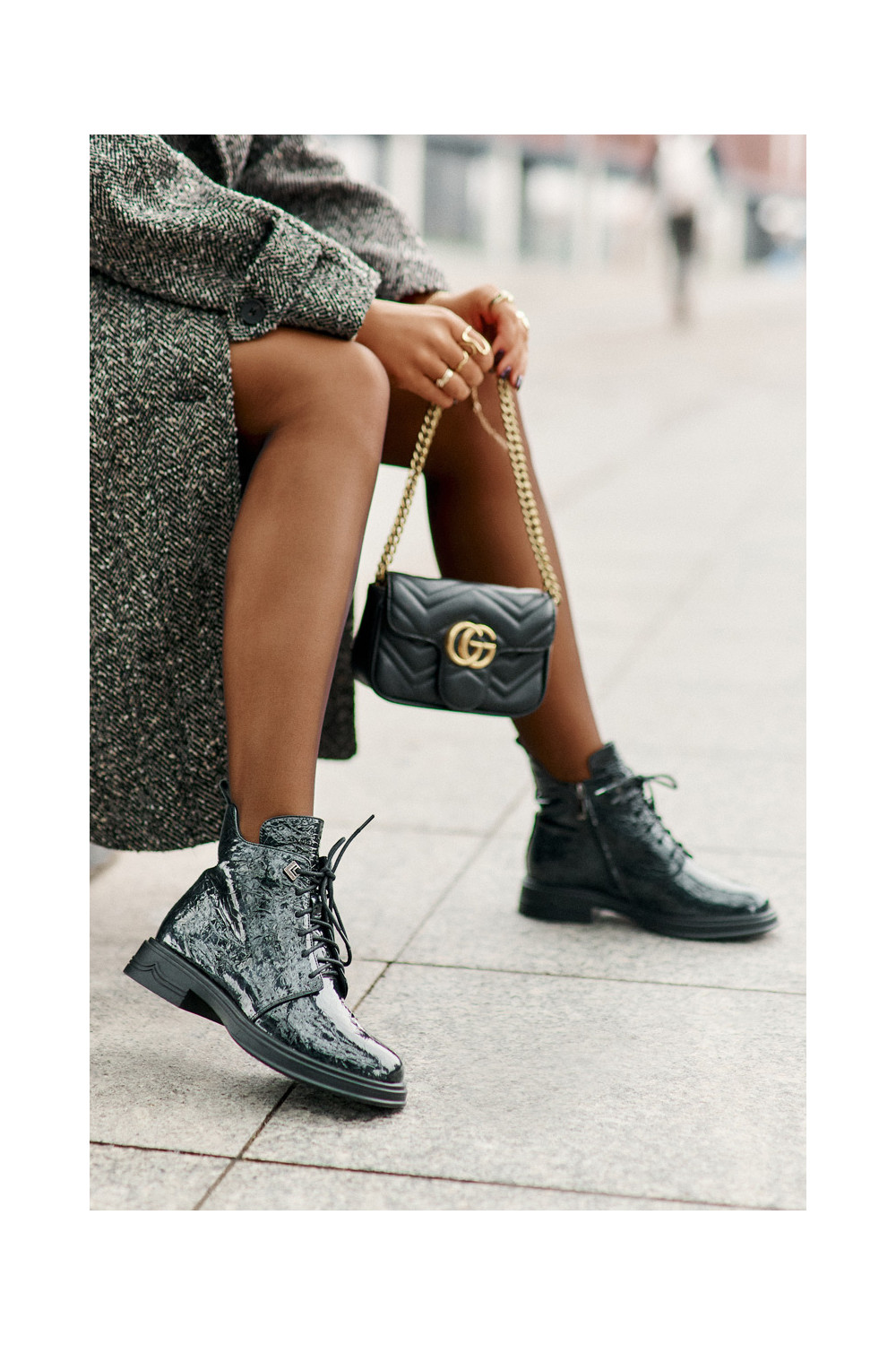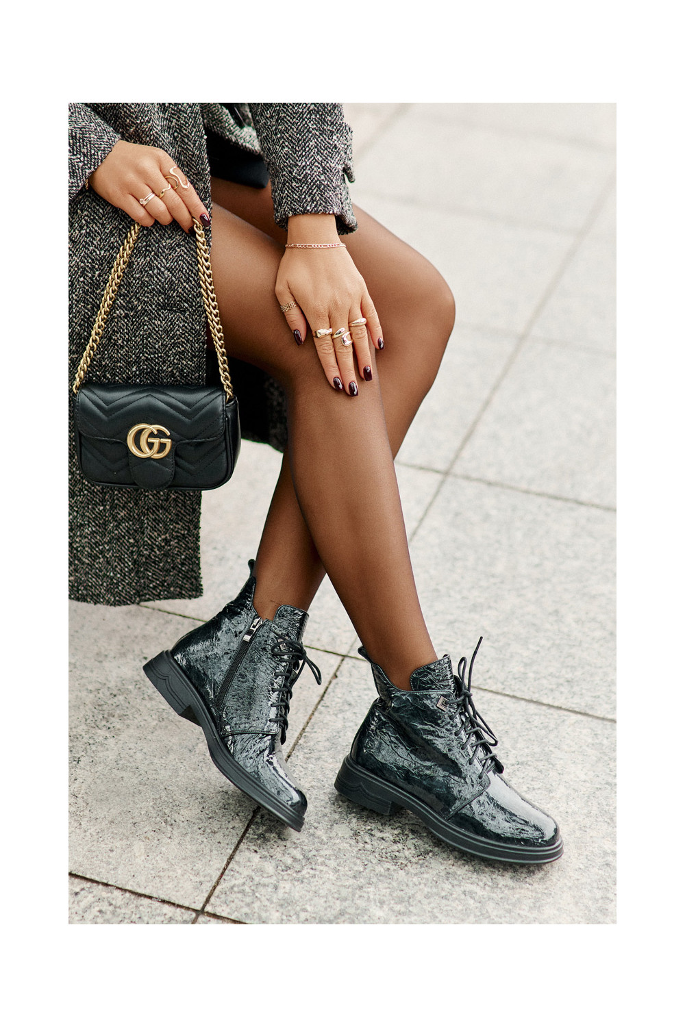 Mėgstami moteriški batai. Nėriniuoti batai iš zomšos imitacijos - idealus šio sezono pasiūlymas! Jie yra ant storo pado. Modelis nėra apšiltintas. Puikiai tinka rudens ir žiemos stilizacijai.