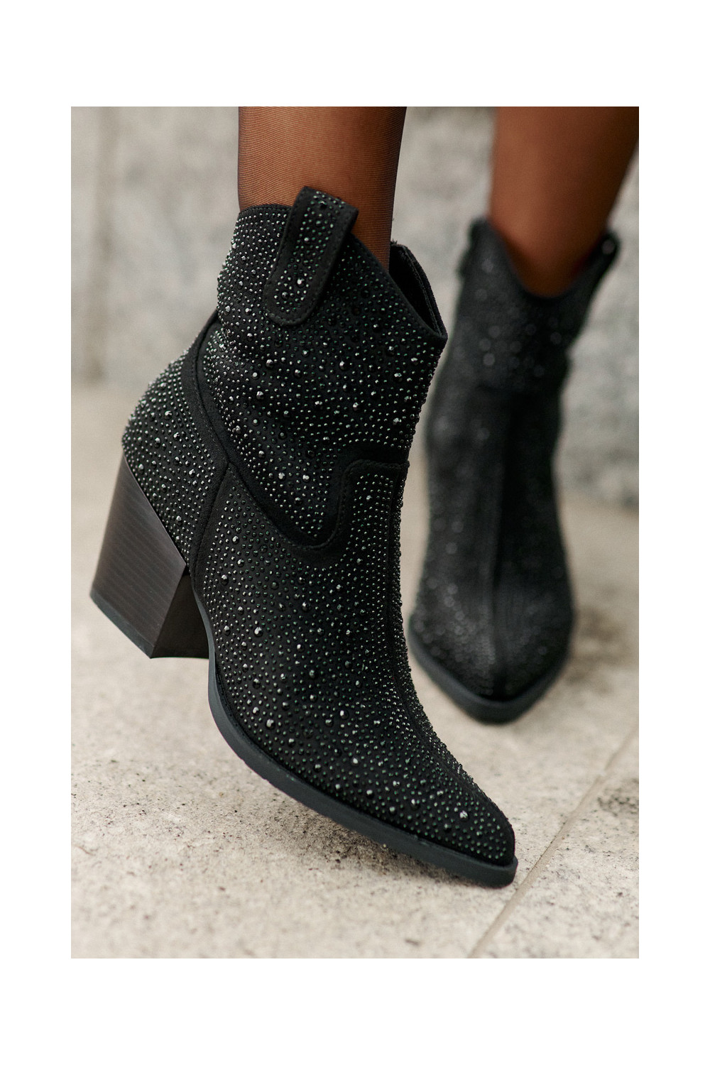 Dekoruotos kaubojiško stiliaus aulinukai su kulniukais Z Noskami smailiomis nosytėmis S.Barski HY42-121 Juodos spalvos