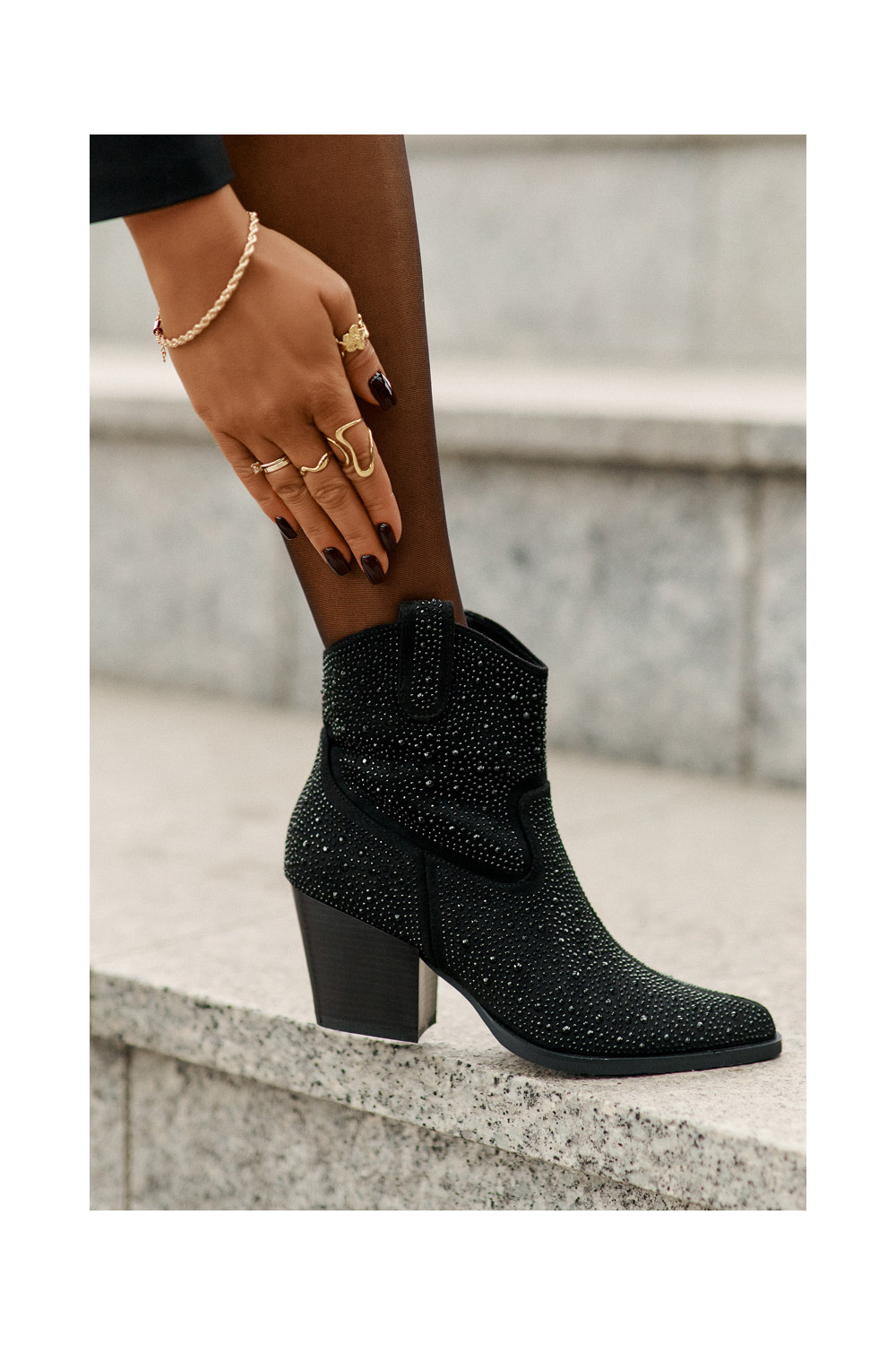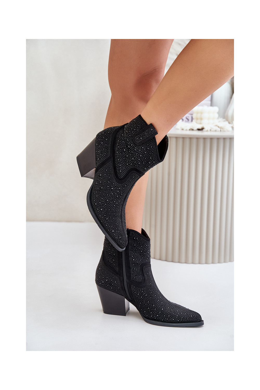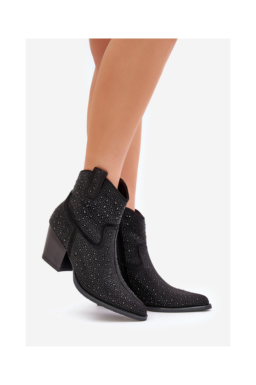Dekoruotos kaubojiško stiliaus aulinukai su kulniukaissuNoskami smailiomis nosytėmis S.Barski HY42-121 juodos spalvos