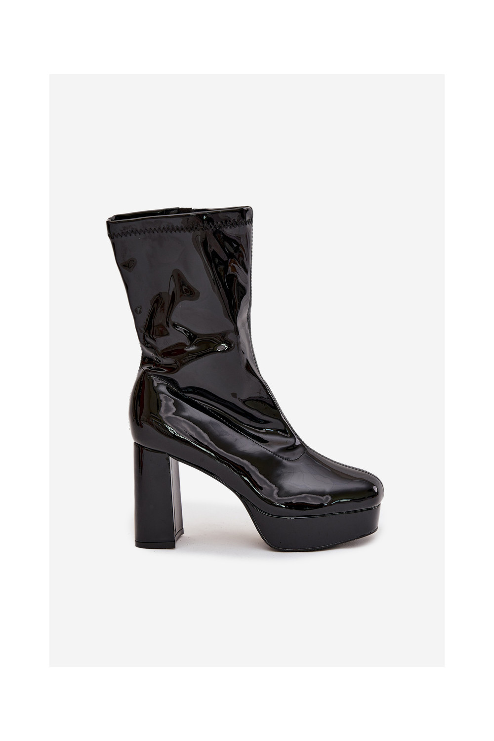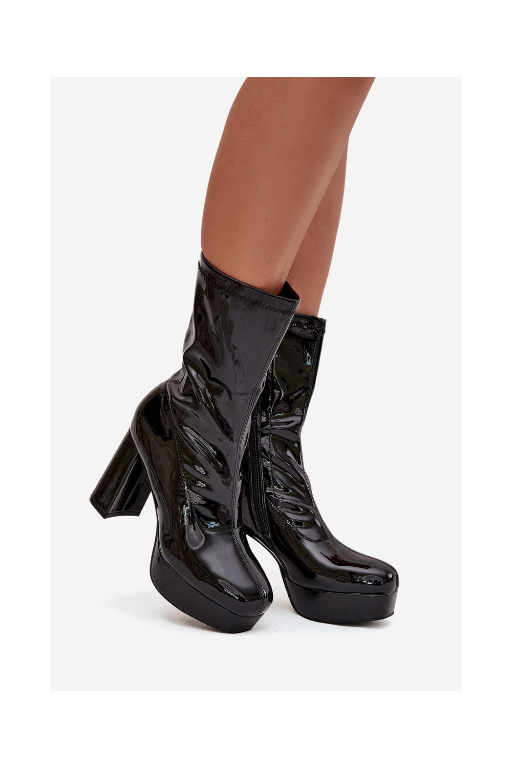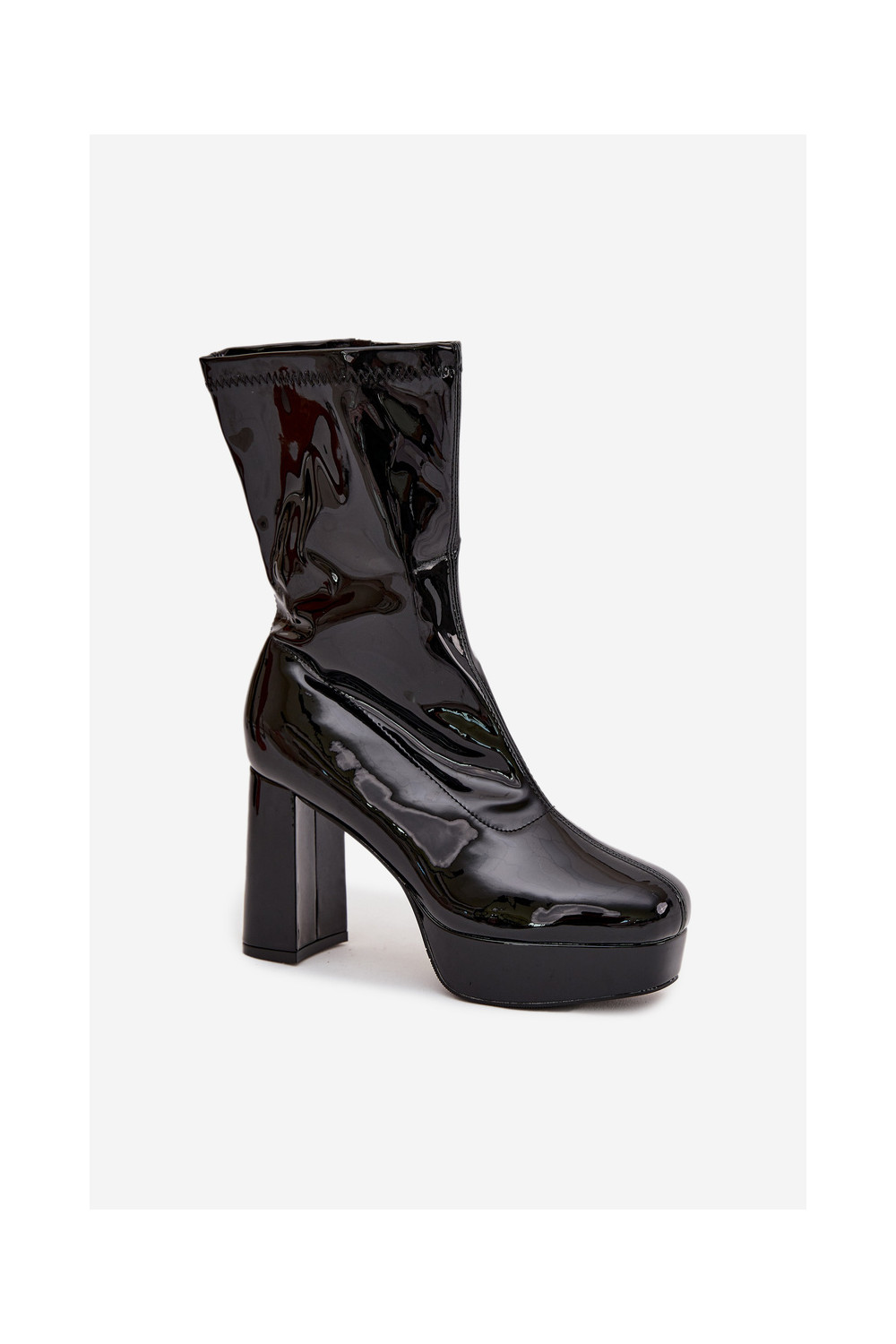 Lakuoti moteriški aulinukai su platforma ir storakulniu juodos spalvos Calvessa