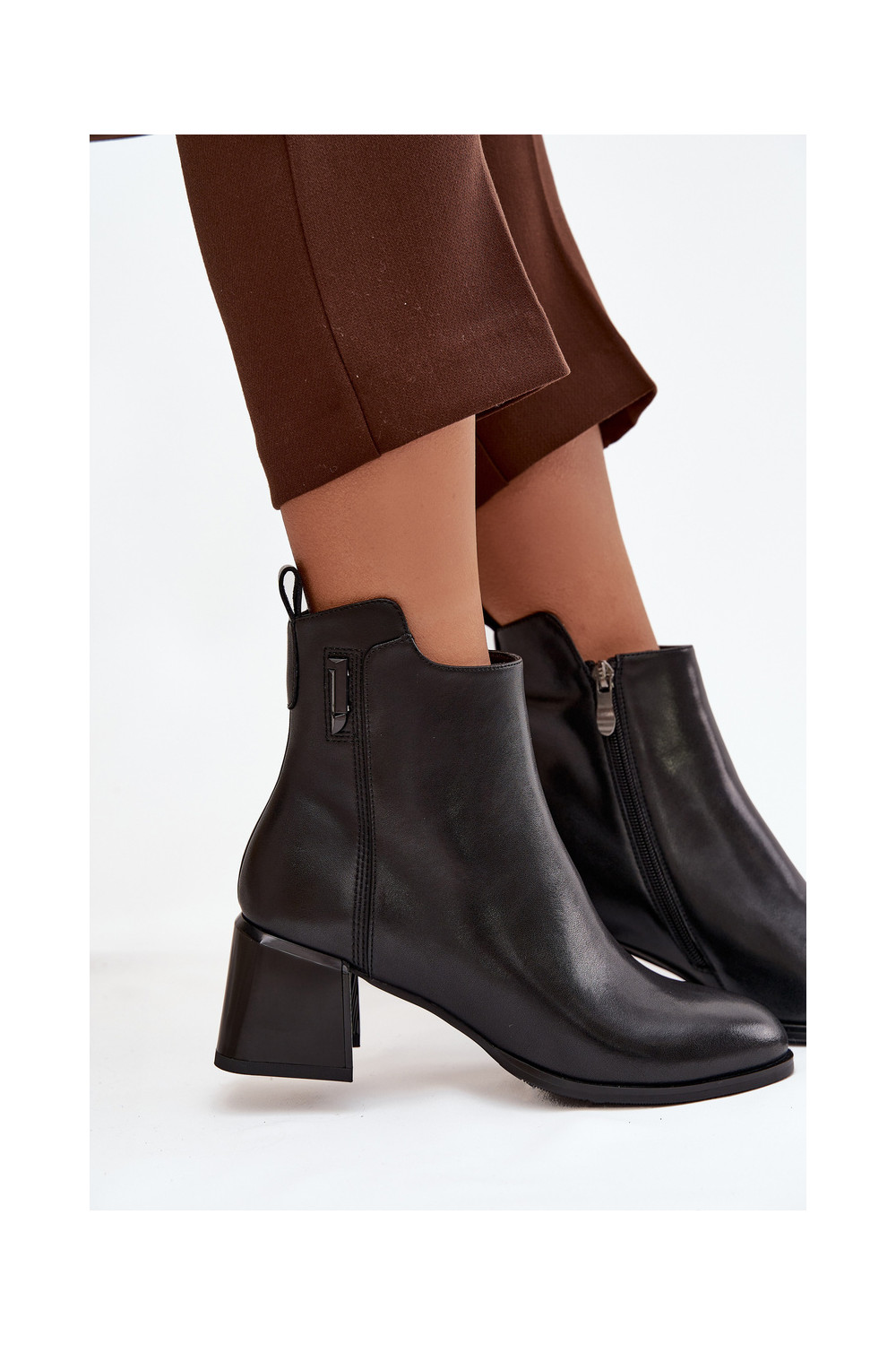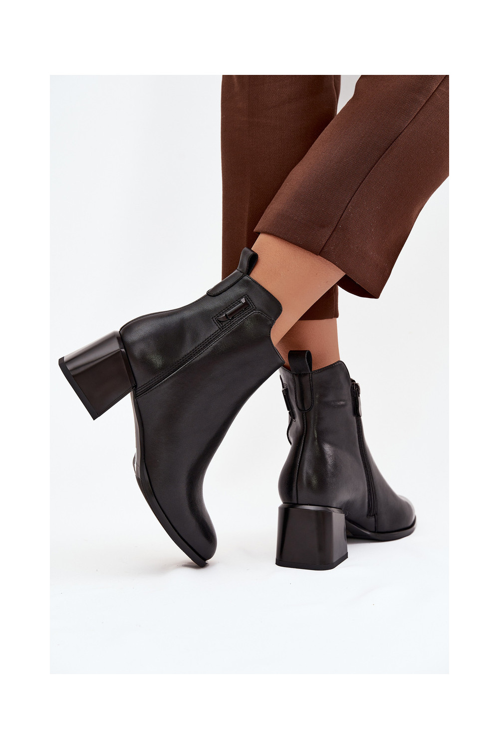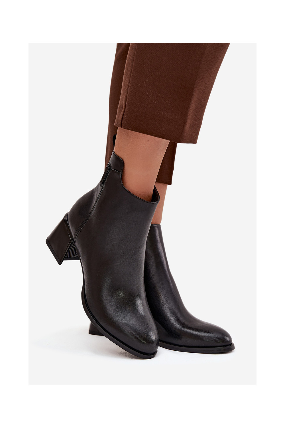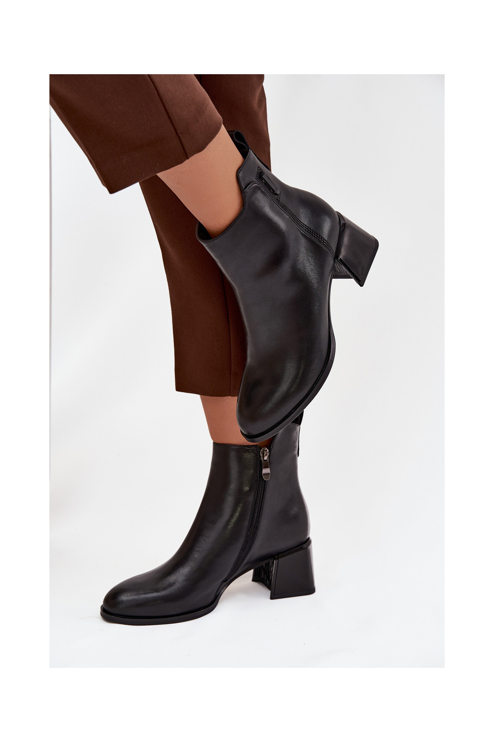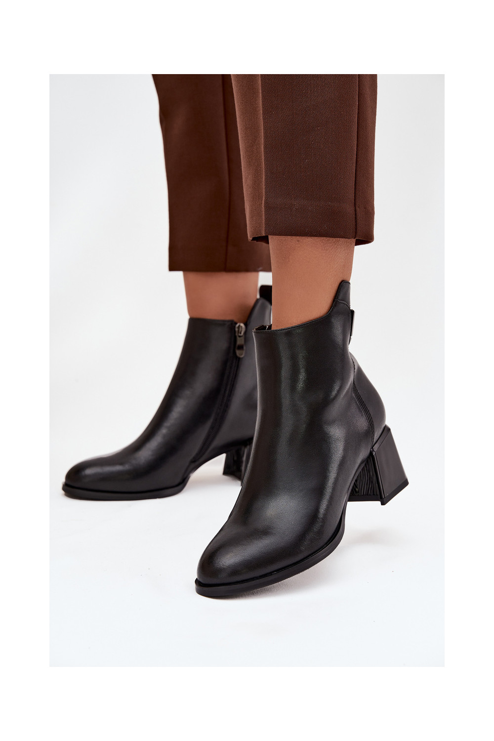 Moteriški natūralios odos aulinukai su kulniukais pašiltinti juodos spalvos Nolivra