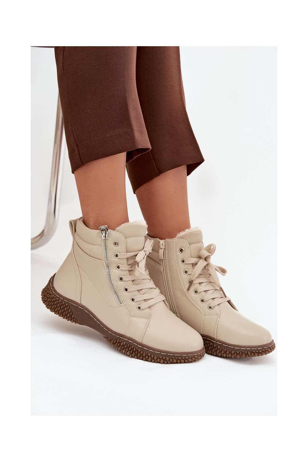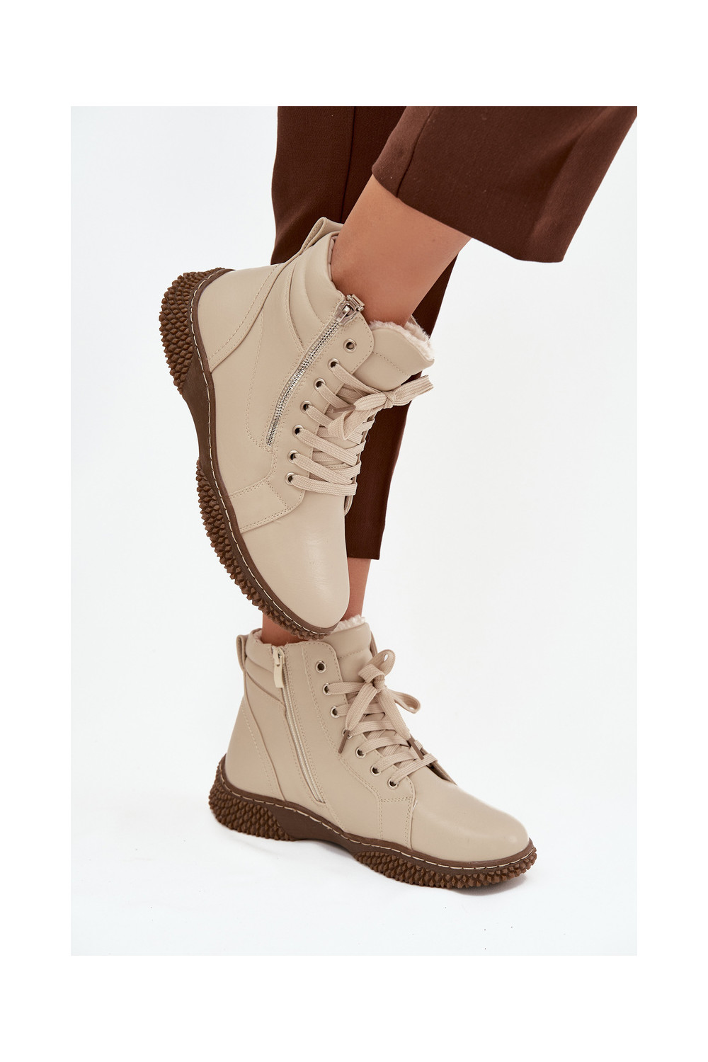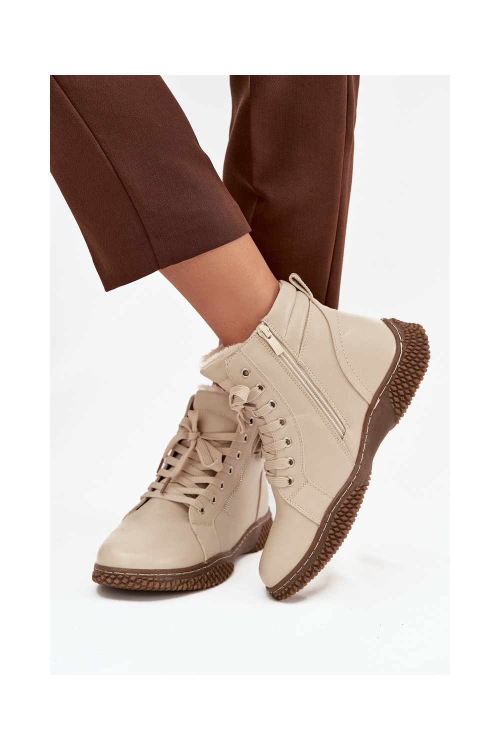 Moteriški aulinukai pašiltinti su kailiuku viduje iš eko odos smėlio spalvos Ulverina