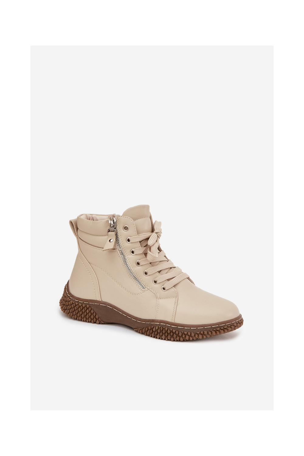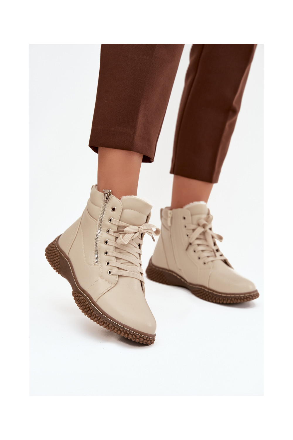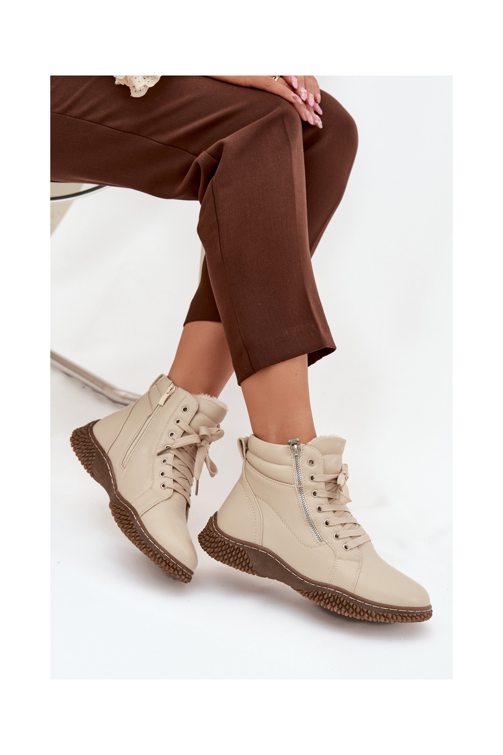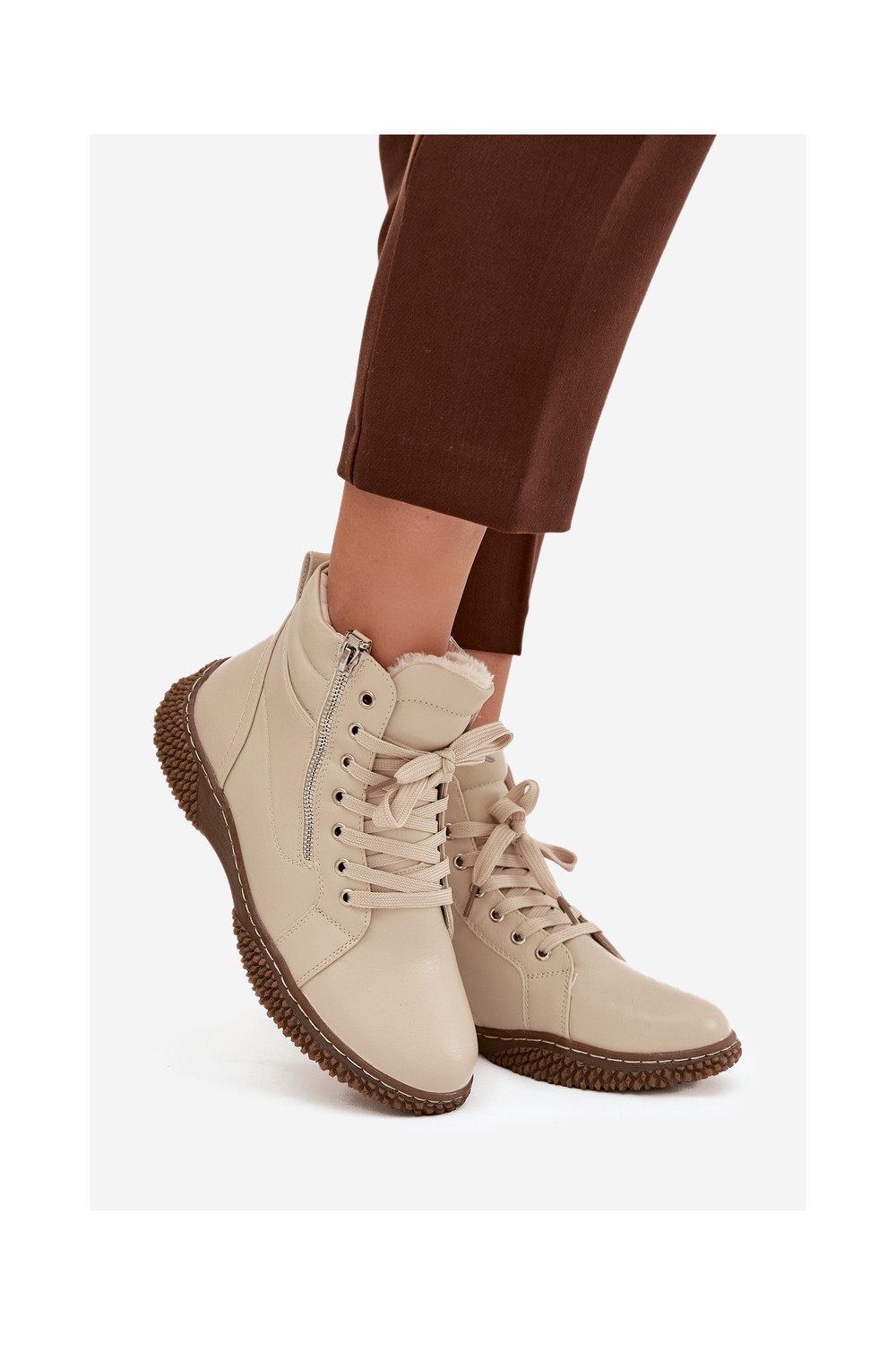 Moteriški aulinukai pašiltinti su kailiuku viduje iš eko odos smėlio spalvos Ulverina