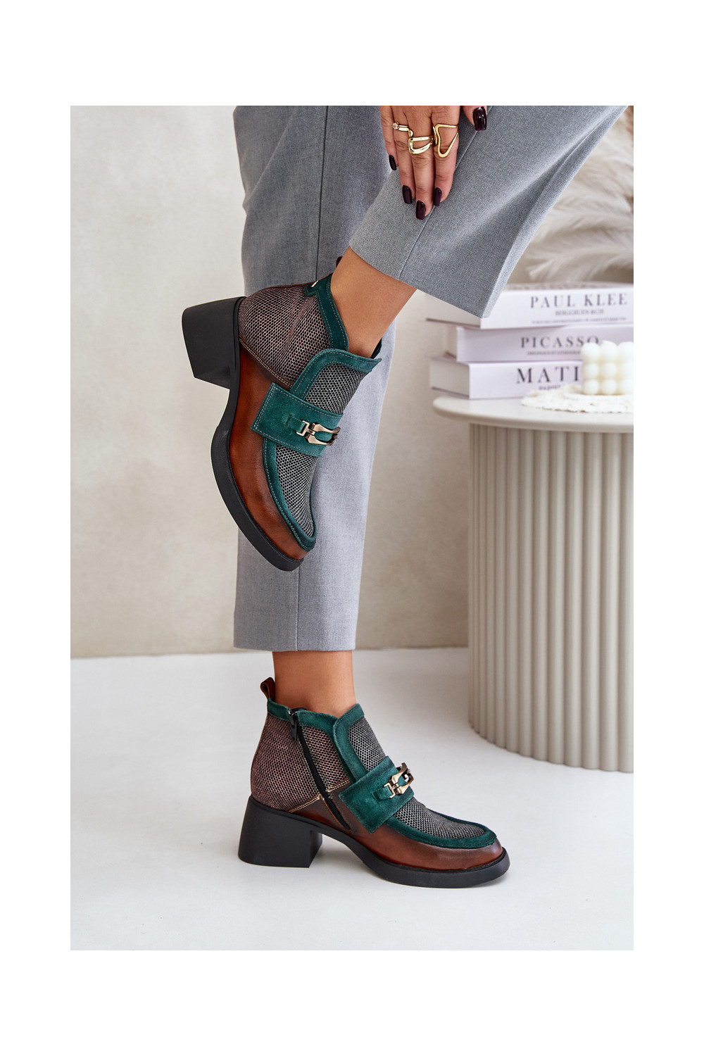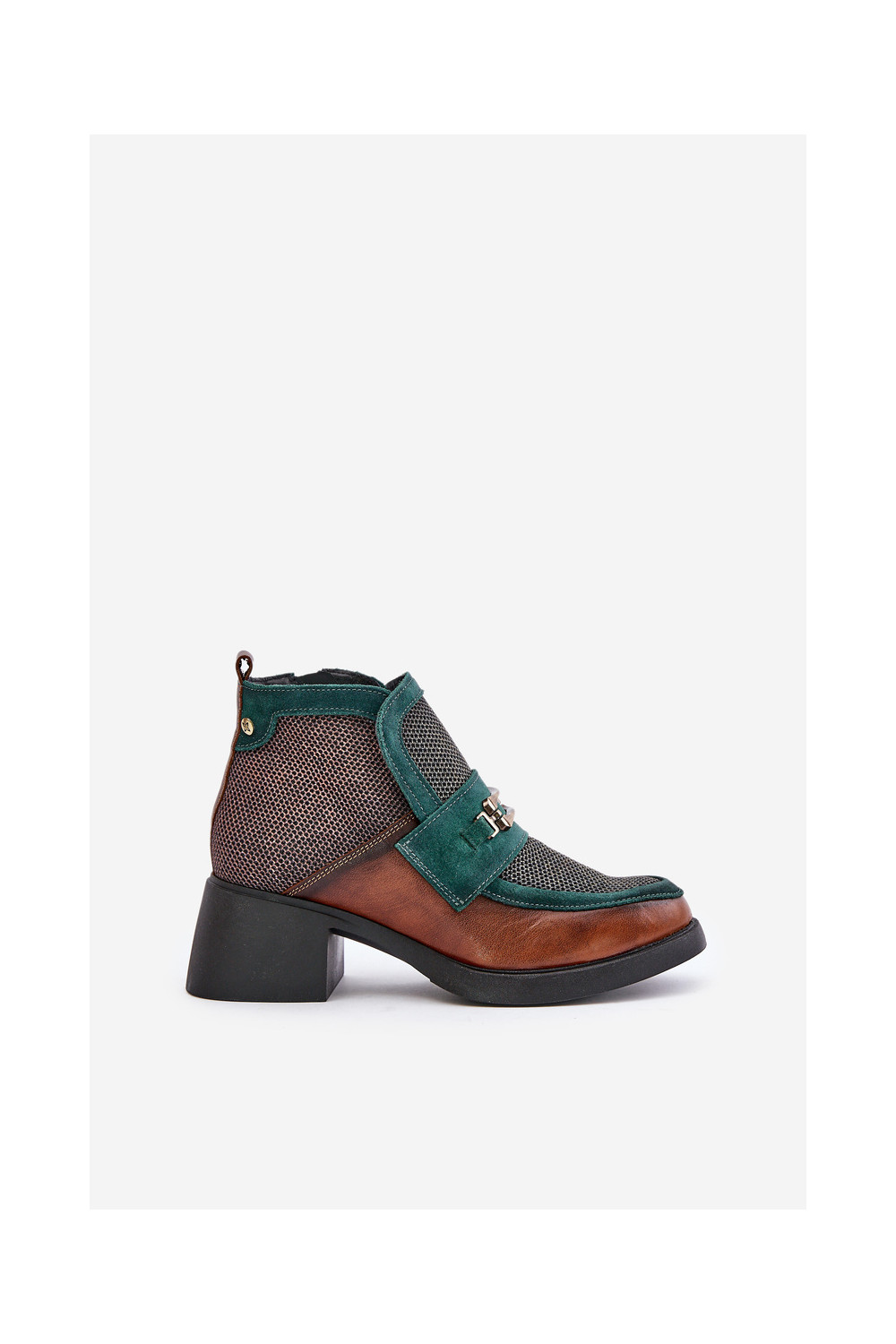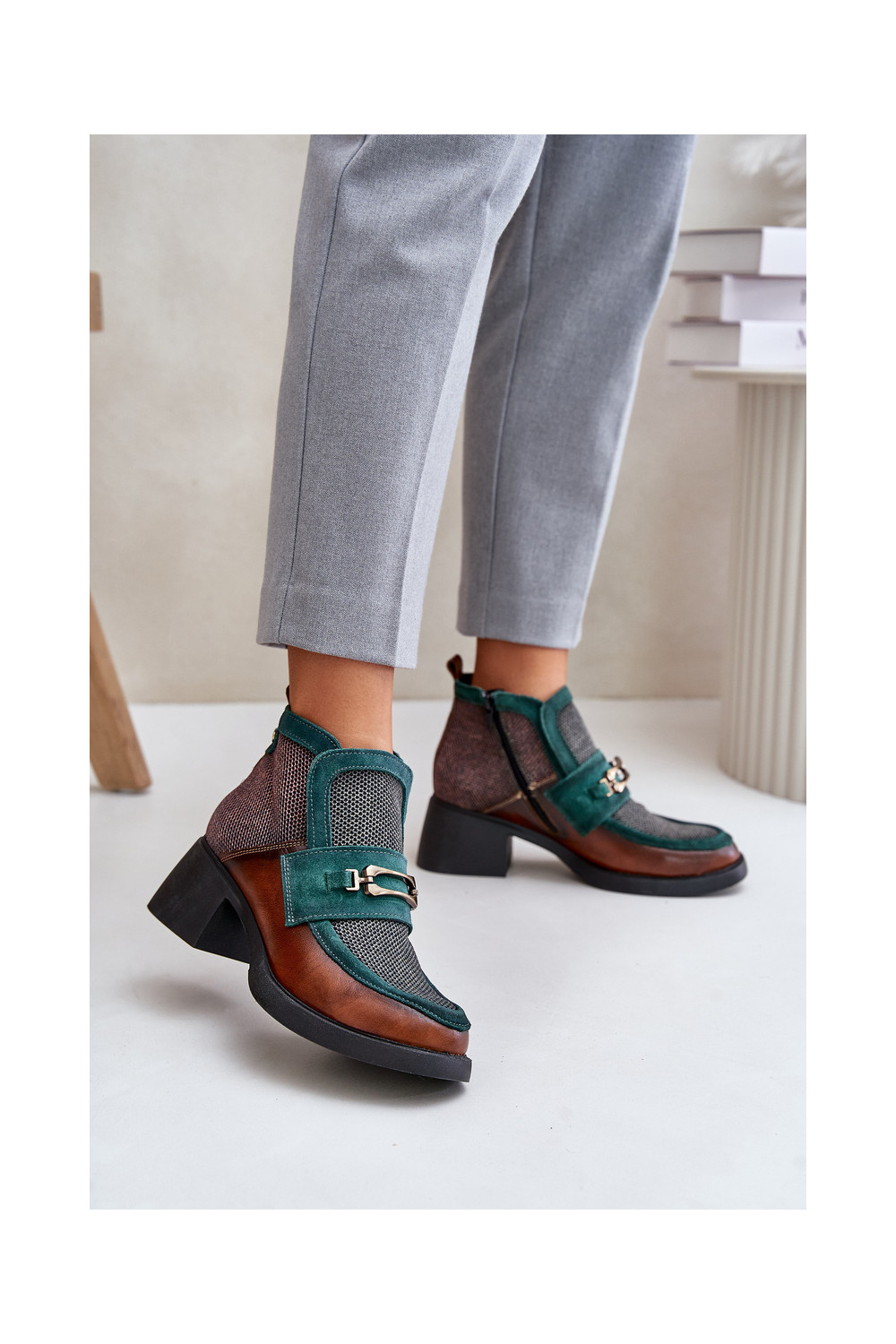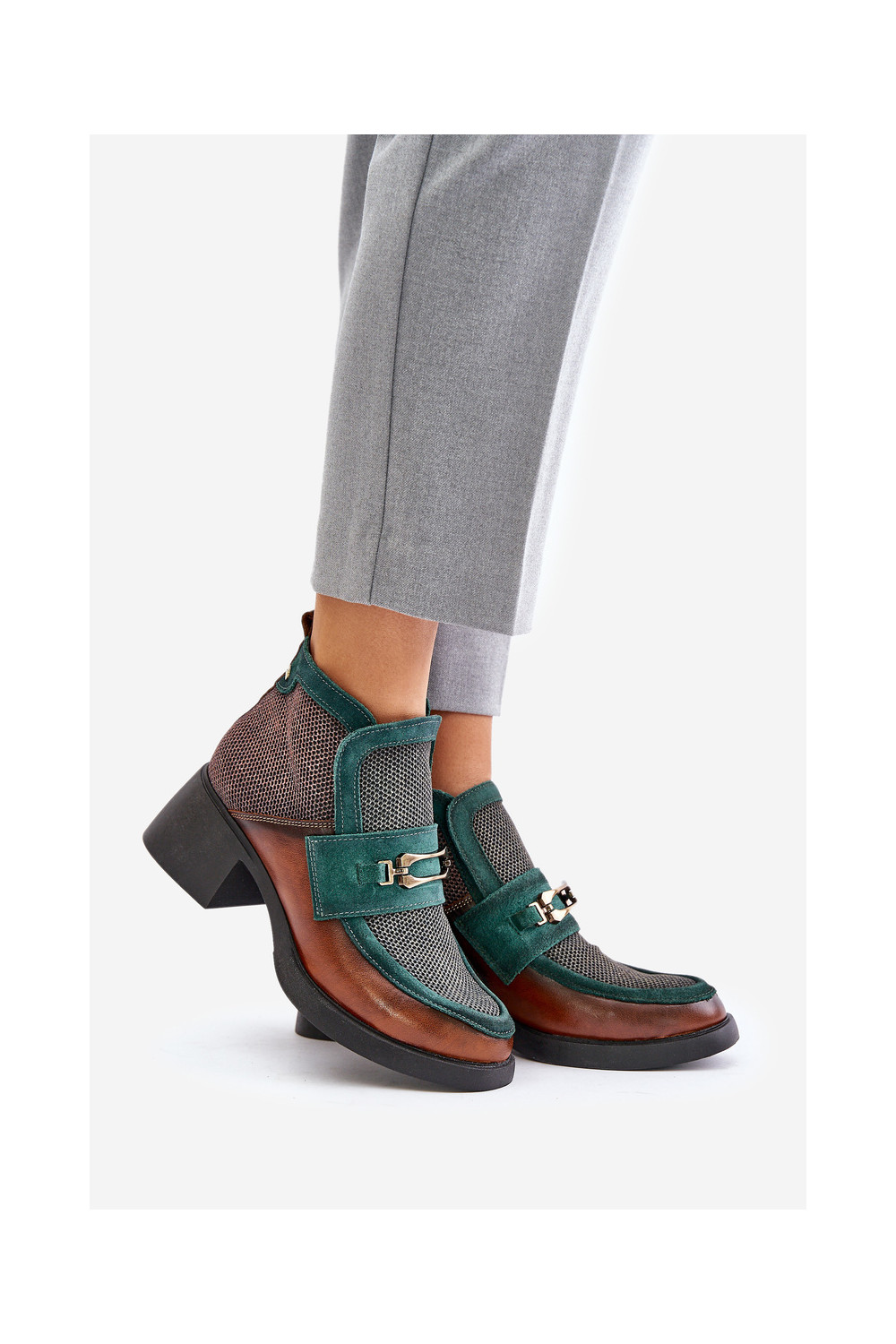 Aulinukai  su plačiu kulnu su ornamentais  A6747-29 rudos-žalios spalvos