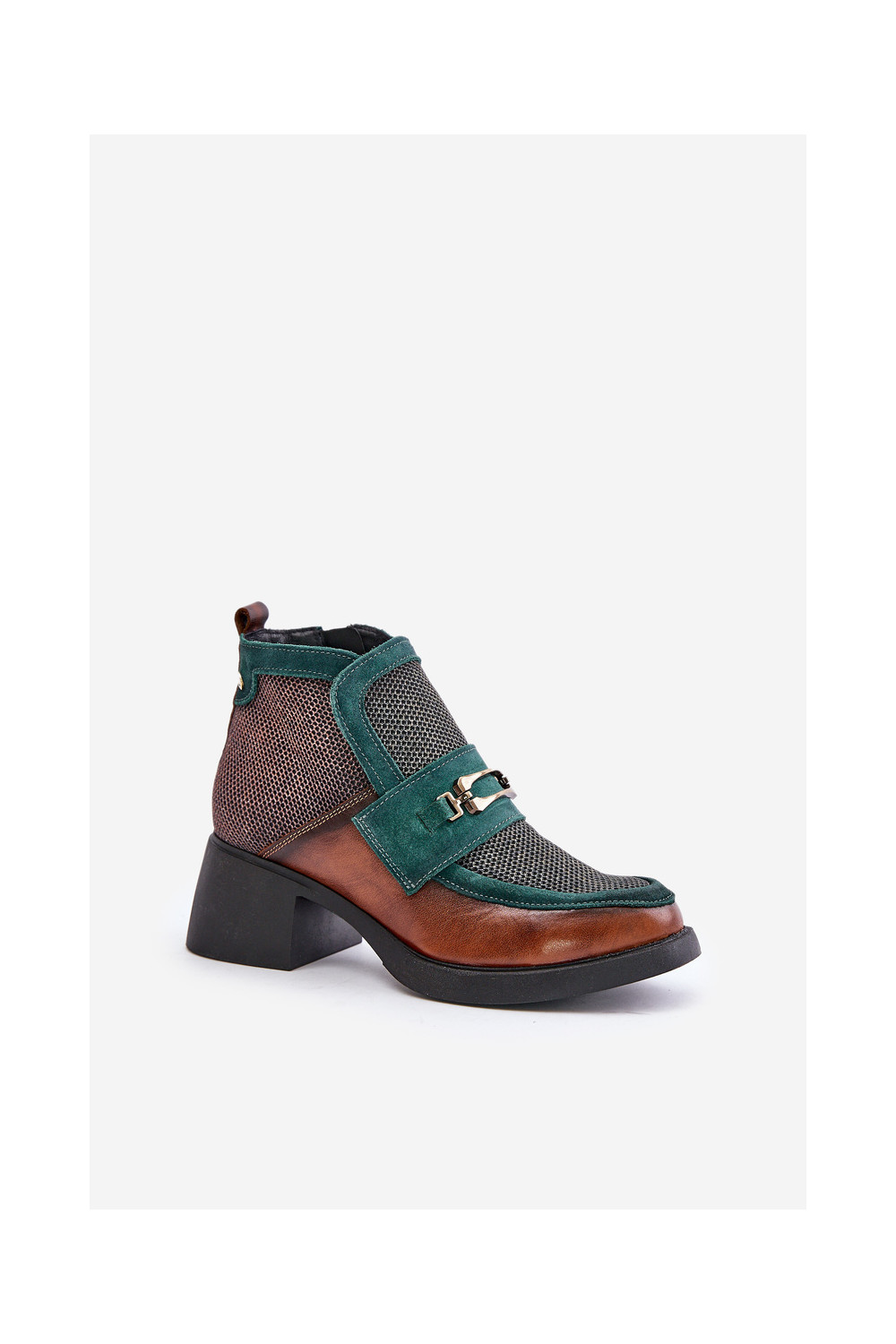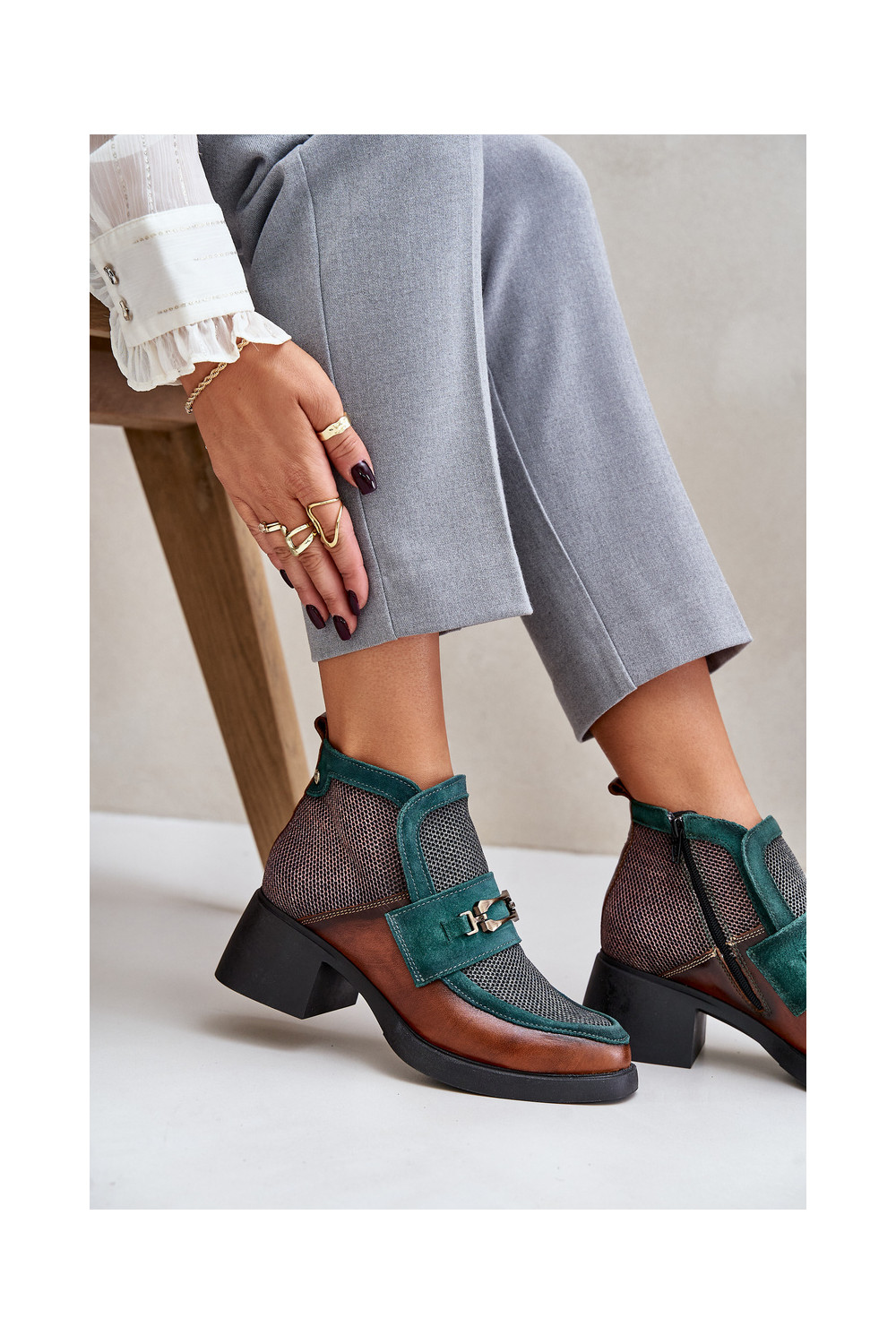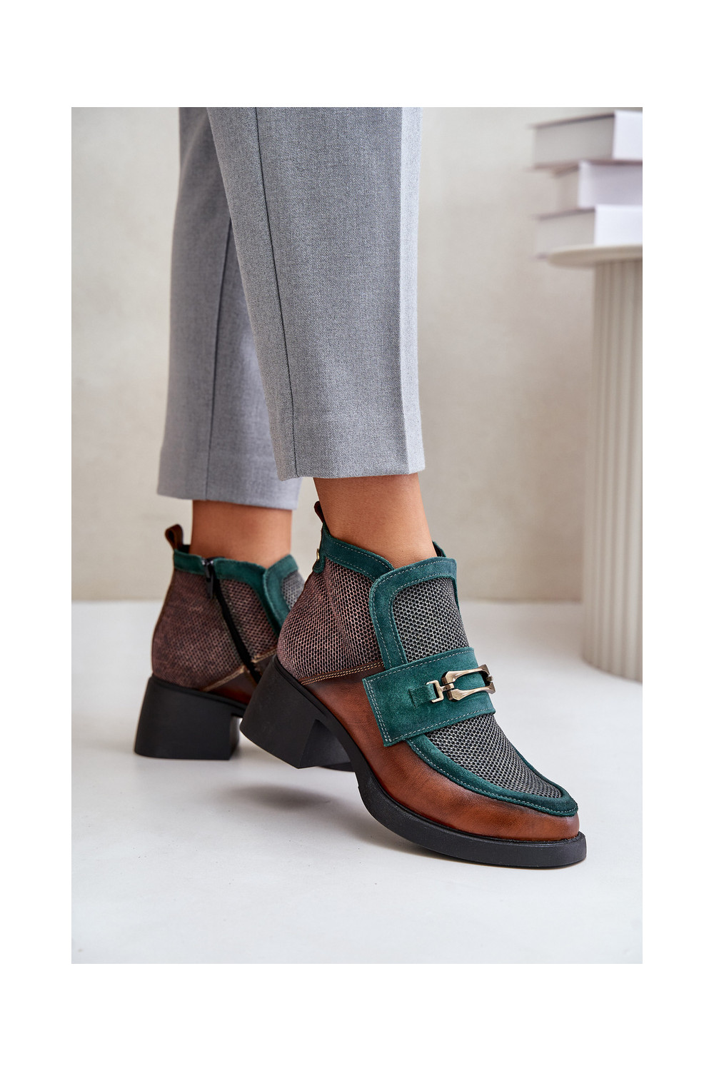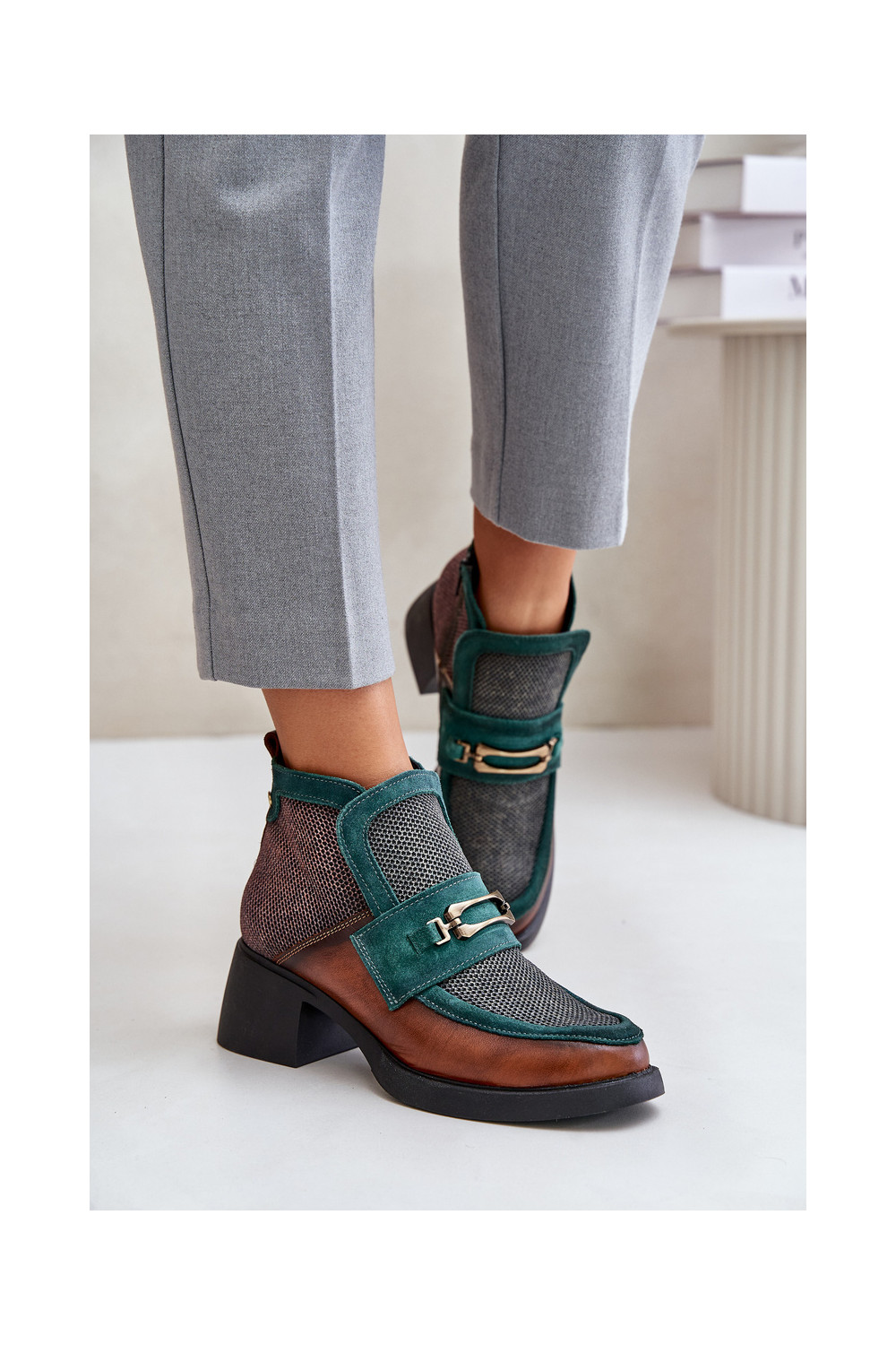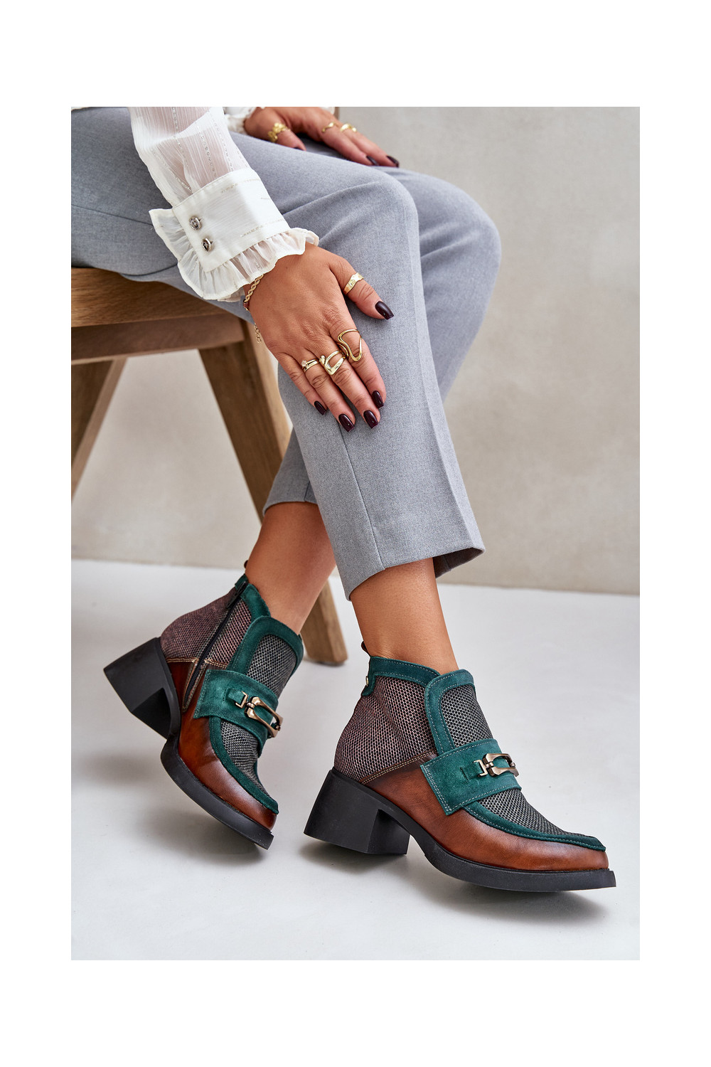 Aulinukai  su plačiu kulnu su ornamentais  A6747-29 rudos-žalios spalvos
