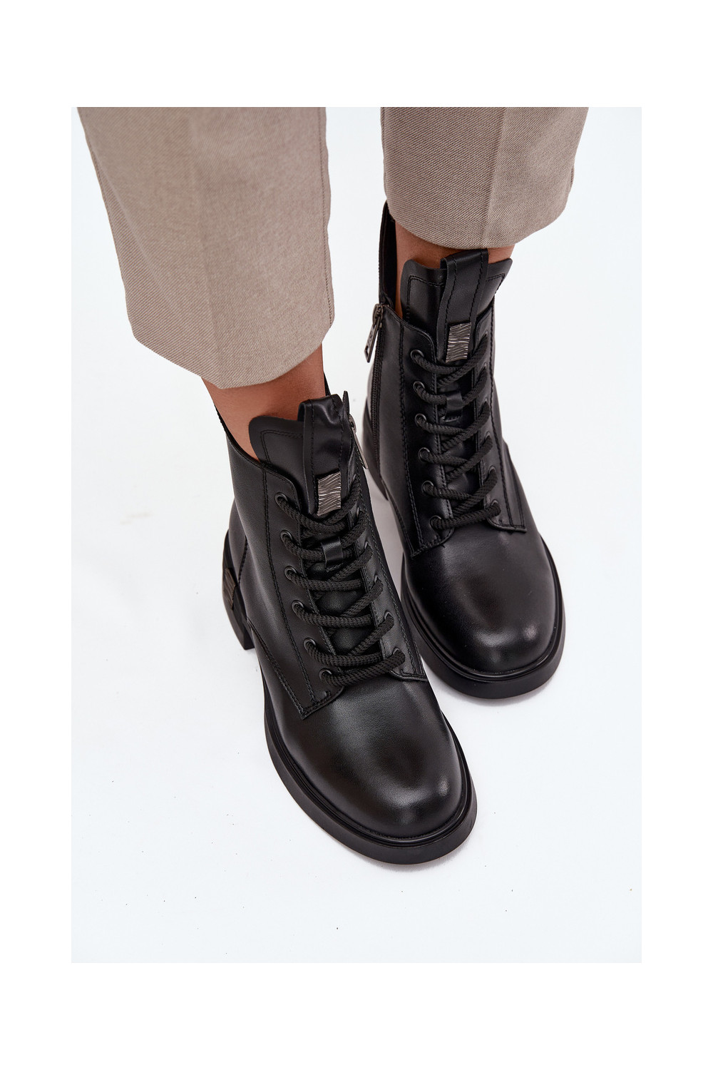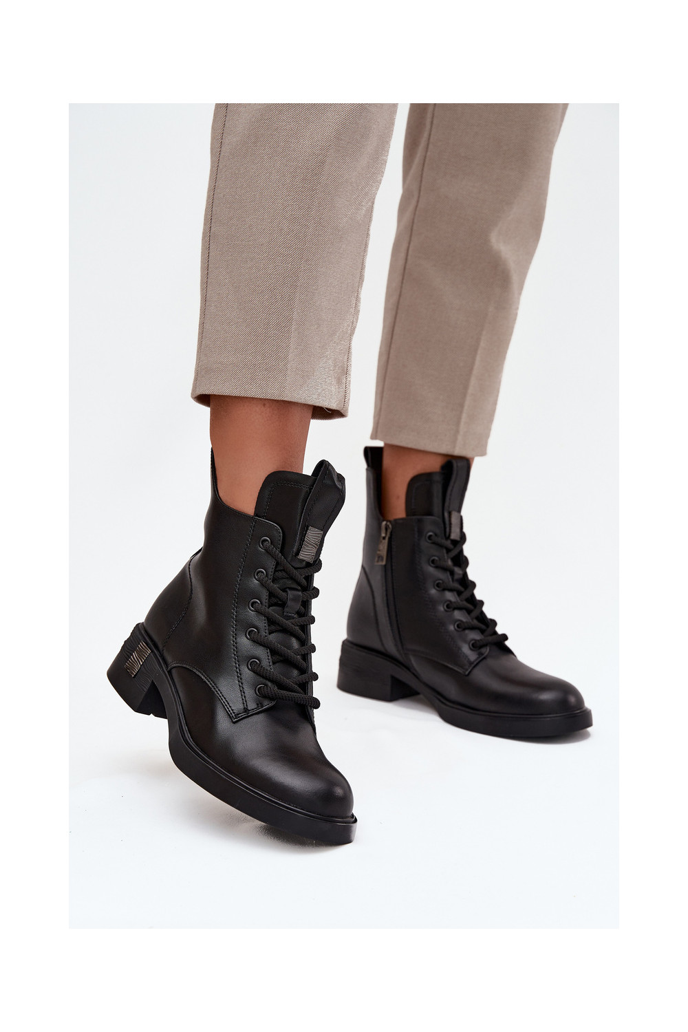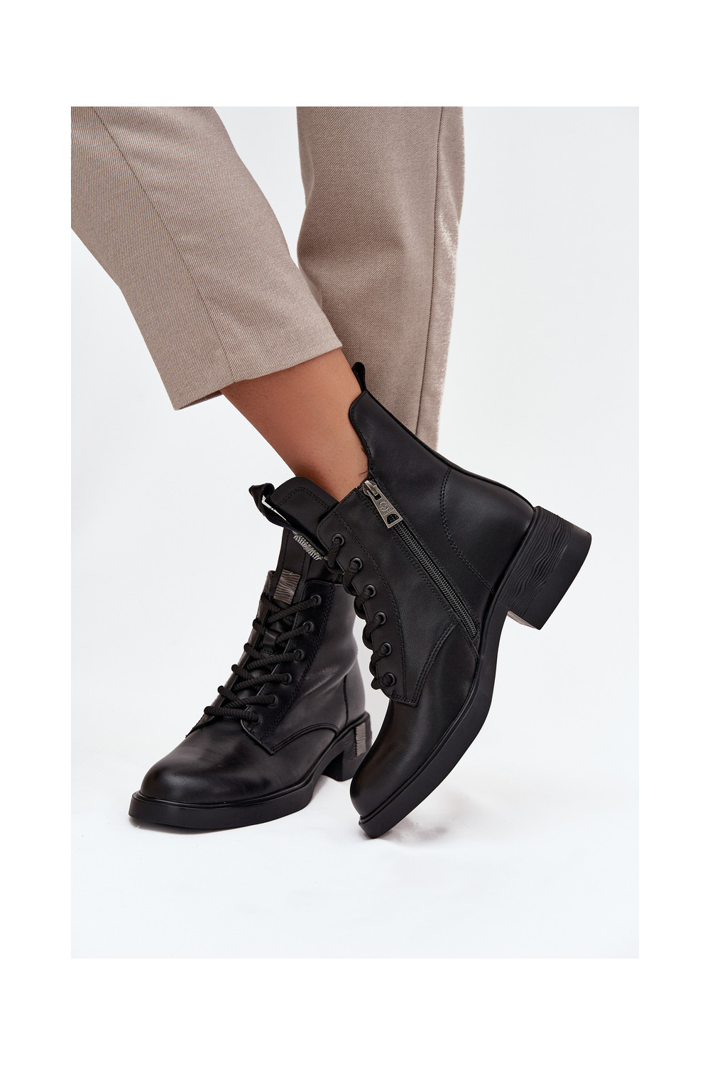 Mėgstami moteriški batai. Nėriniuoti batai iš zomšos imitacijos - idealus šio sezono pasiūlymas! Jie yra ant storo pado. Modelis nėra apšiltintas. Puikiai tinka rudens ir žiemos stilizacijai.