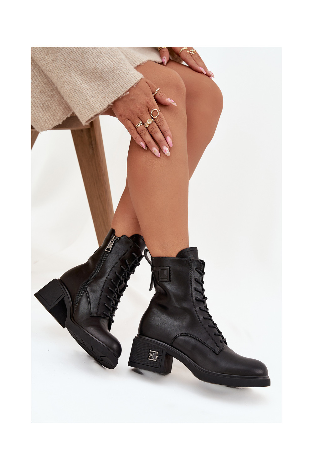Mėgstami moteriški batai. Nėriniuoti batai iš zomšos imitacijos - idealus šio sezono pasiūlymas! Jie yra ant storo pado. Modelis nėra apšiltintas. Puikiai tinka rudens ir žiemos stilizacijai.